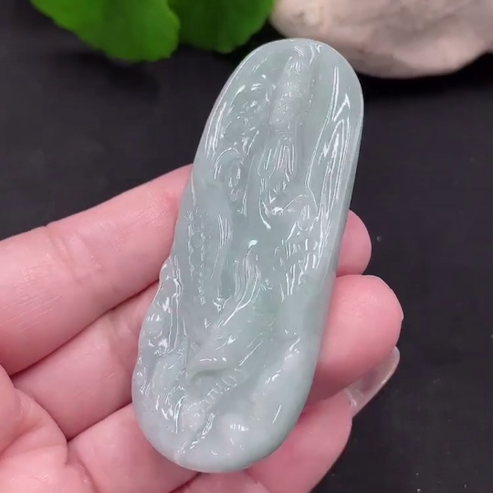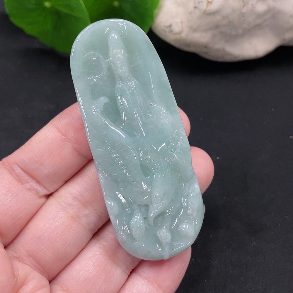 Jadeite Guanyin Pendant Total Weight Approx. 32.4g