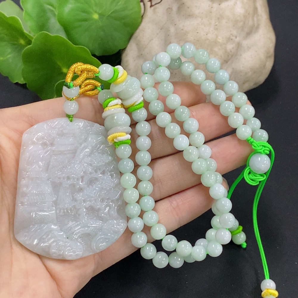 Jadeite Landscape Pendant Total Weight Approx. 54.73g