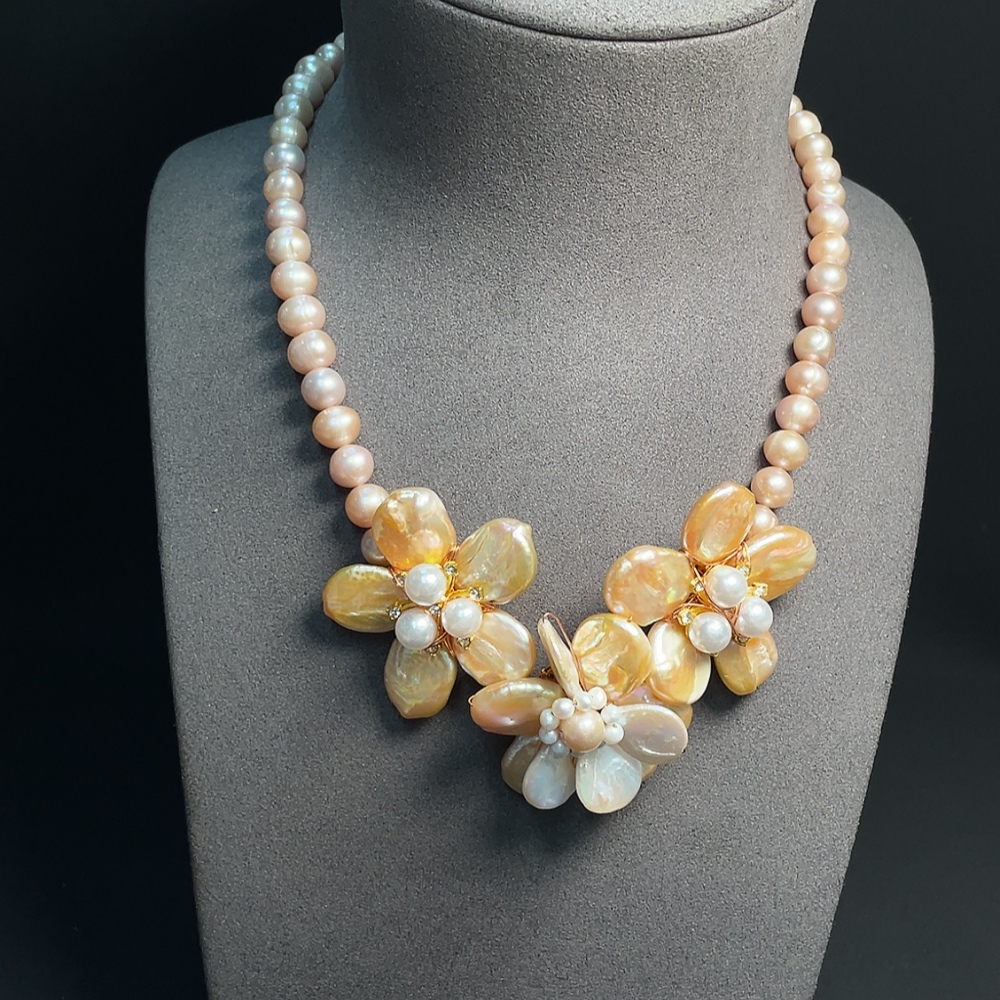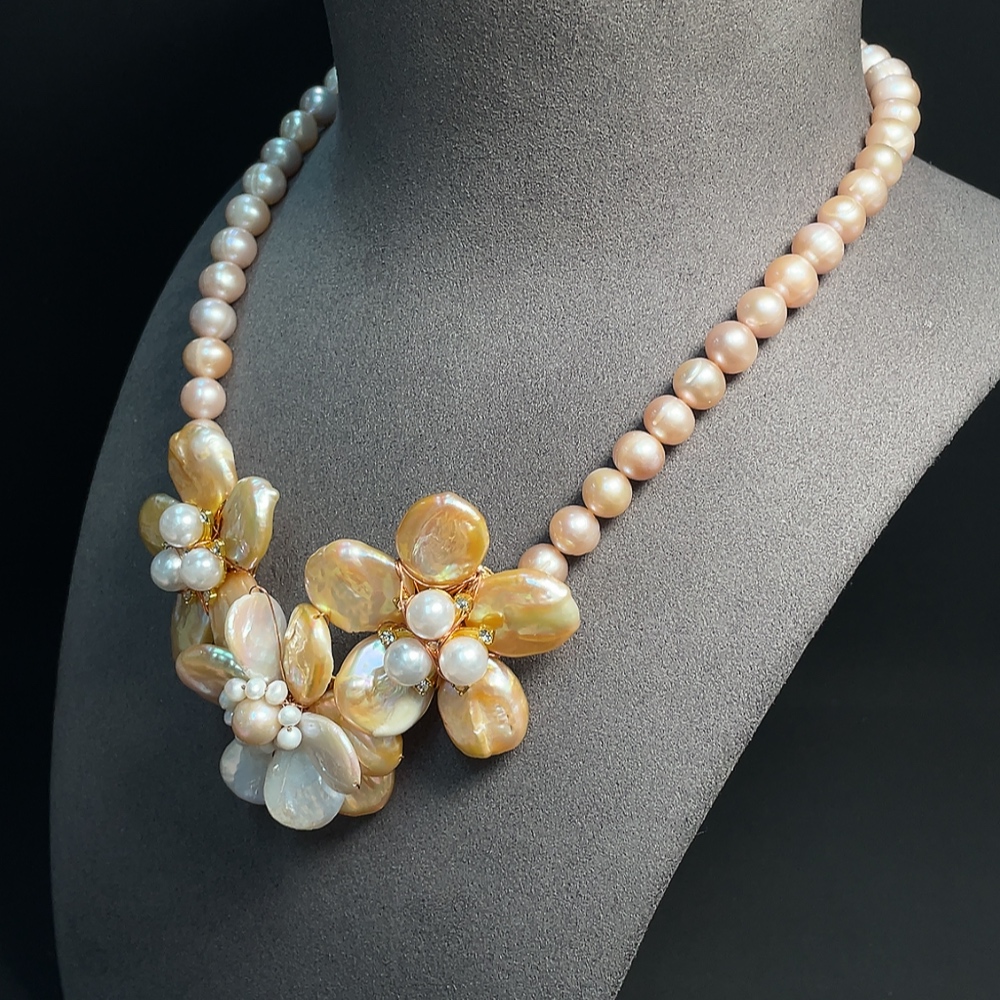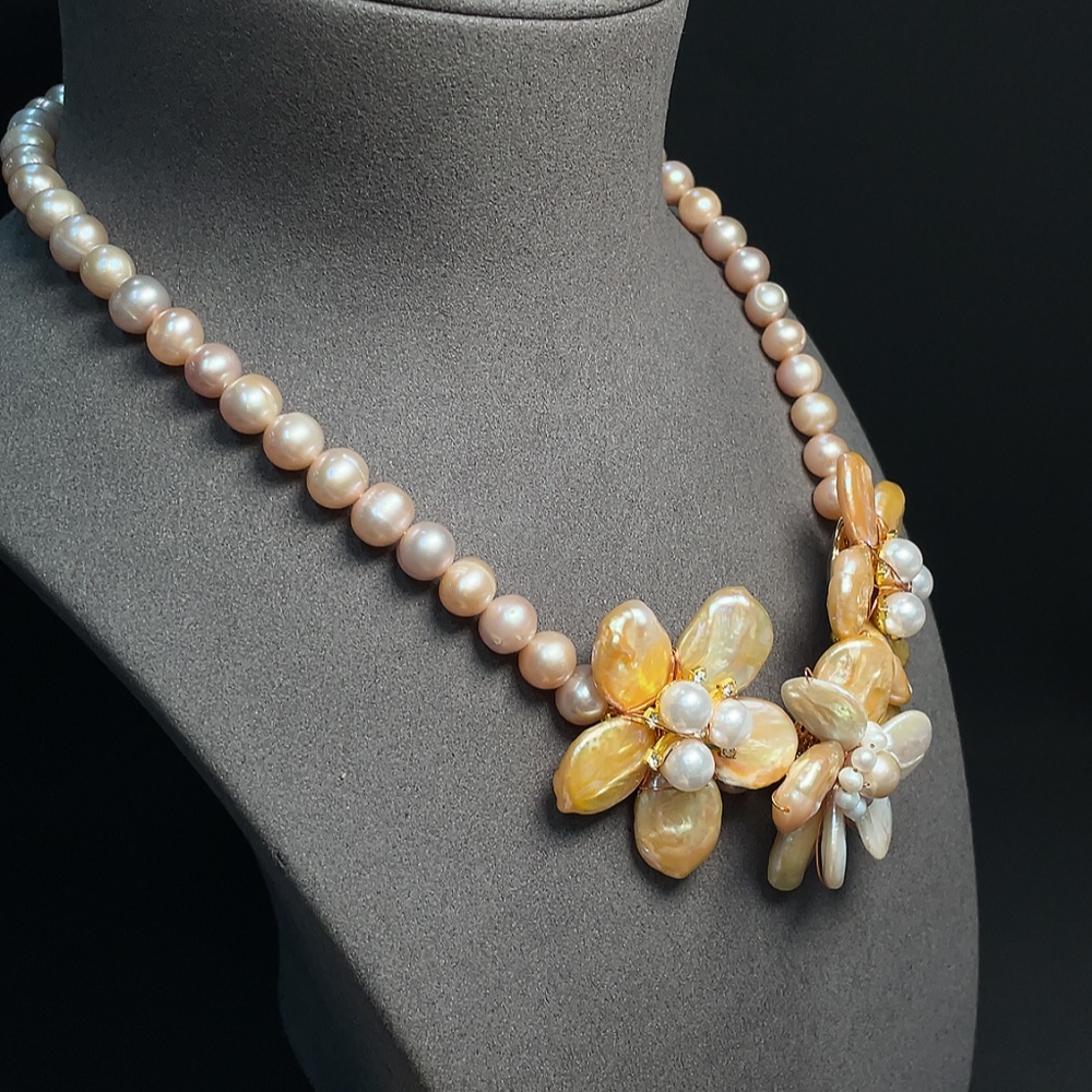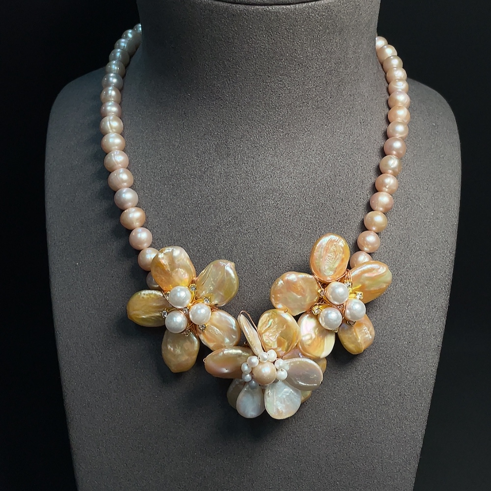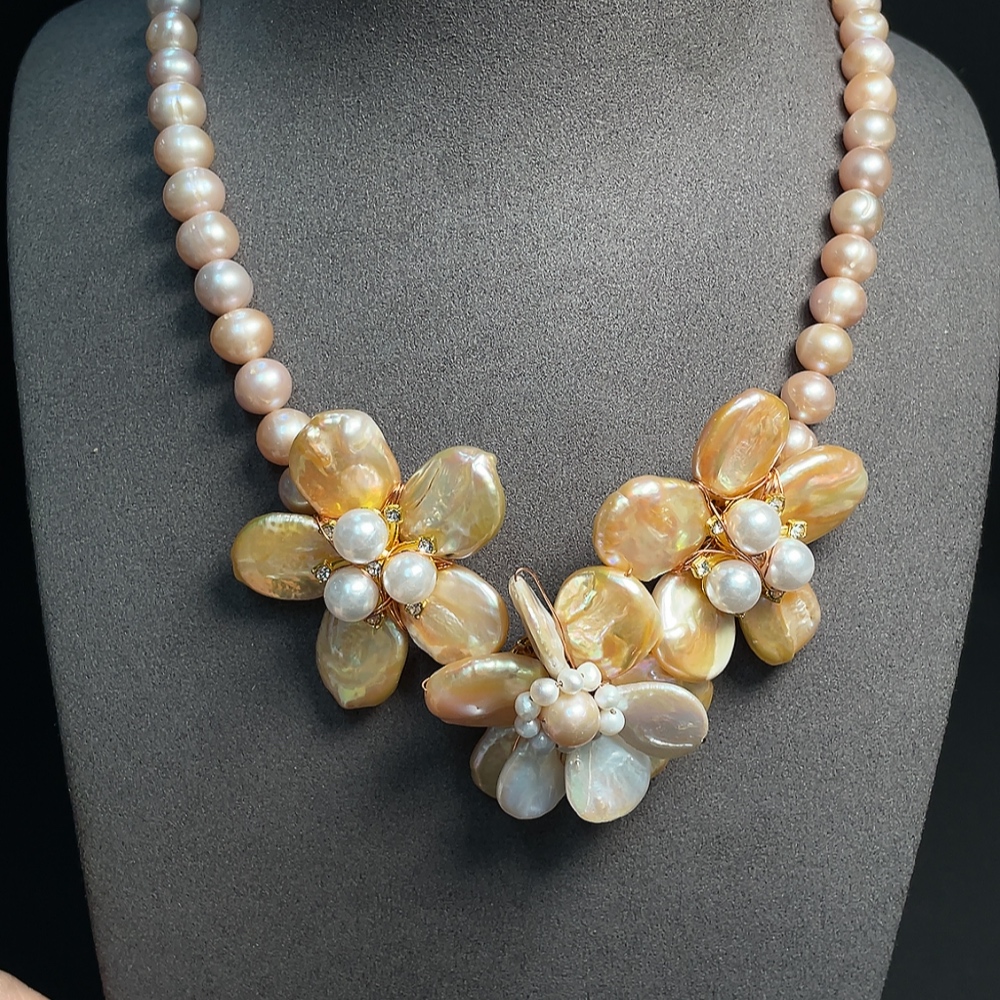Pearl bead necklace non-gold total weight approx. 85.32g with non-natural stones