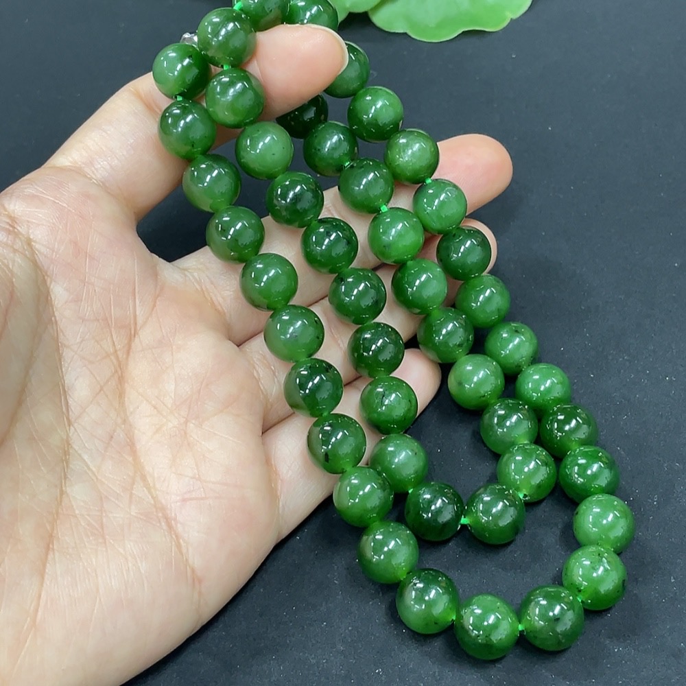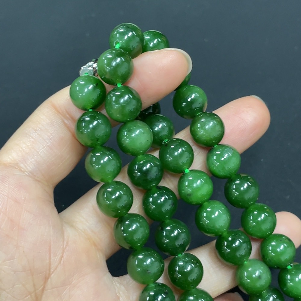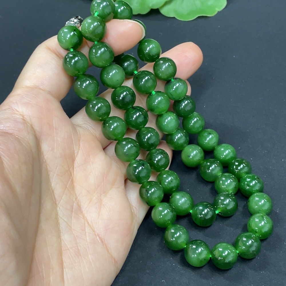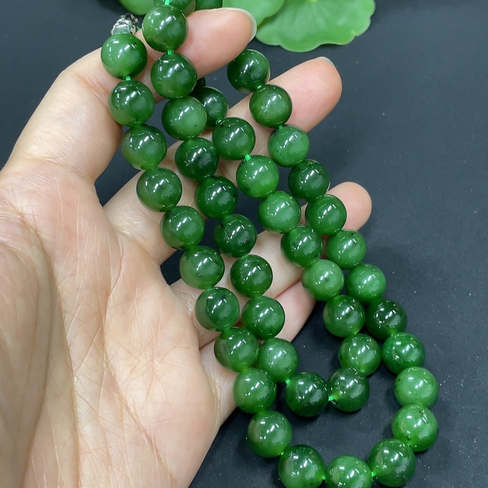 Hetian Jade Jasper Bead Necklace, Non-Gold, Approx. 9.3mm, Total Weight Approx. 65.8g