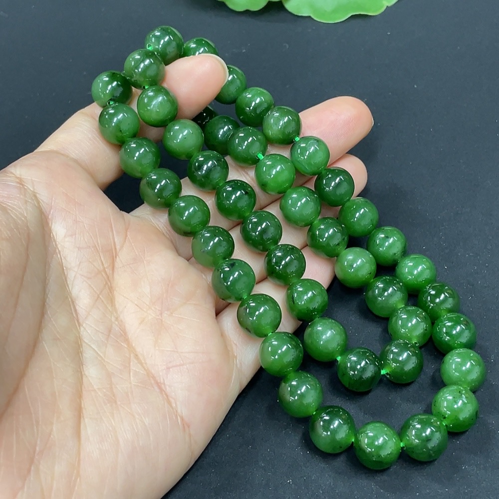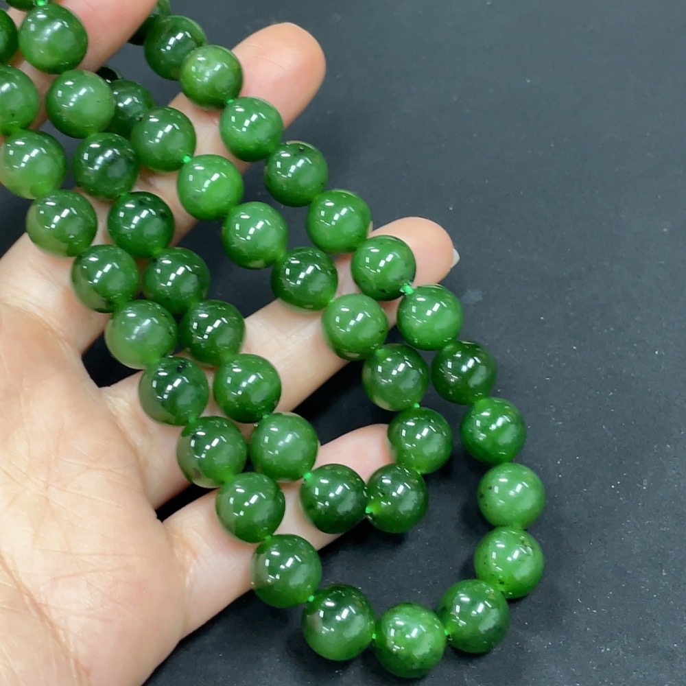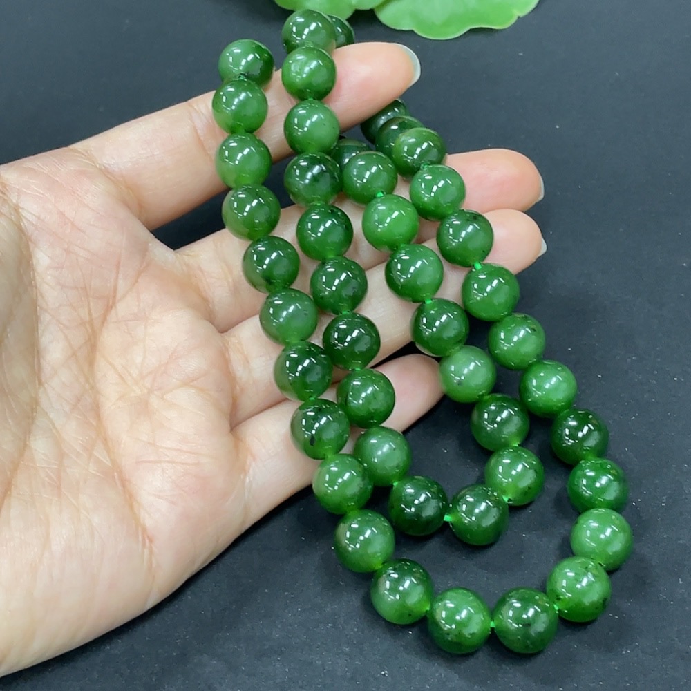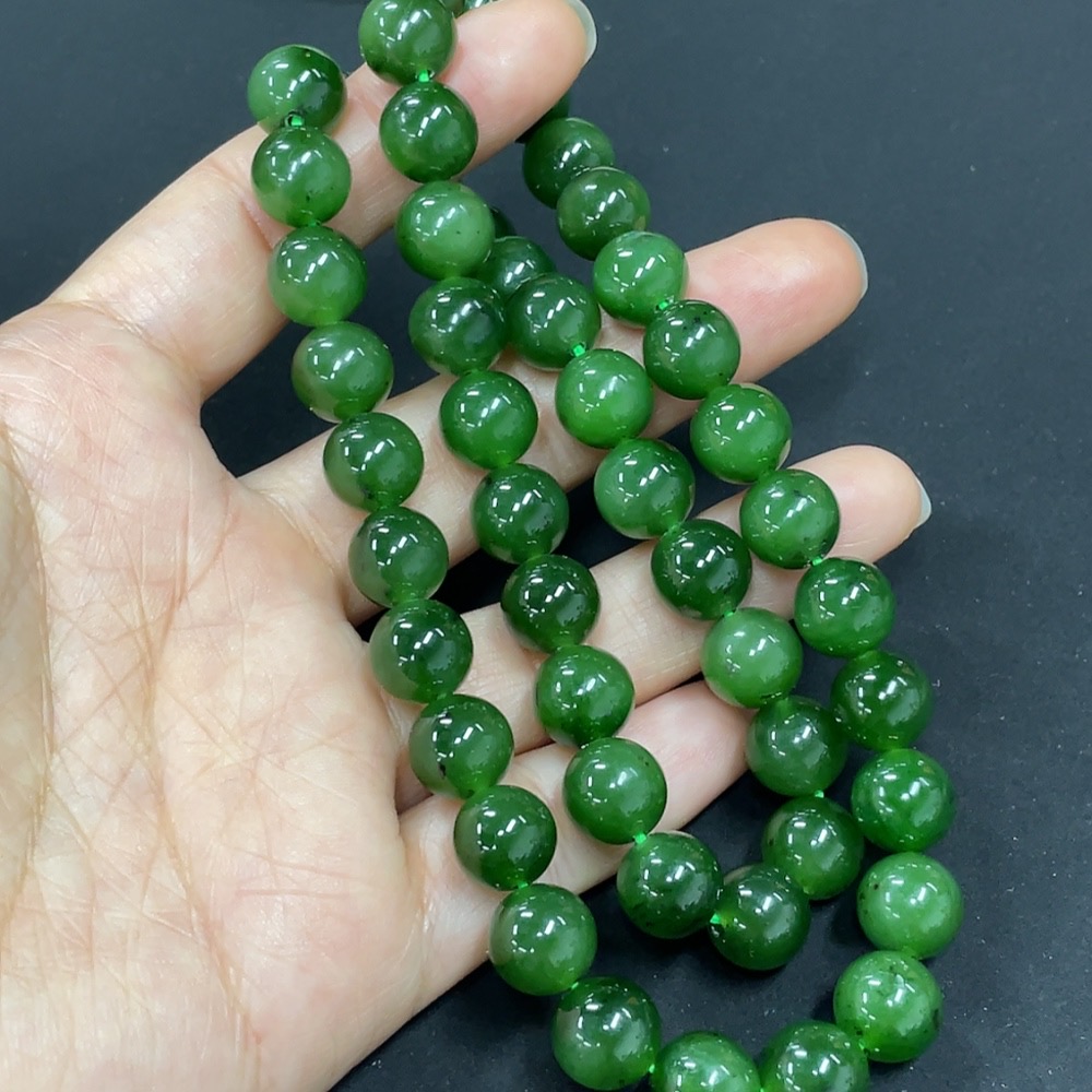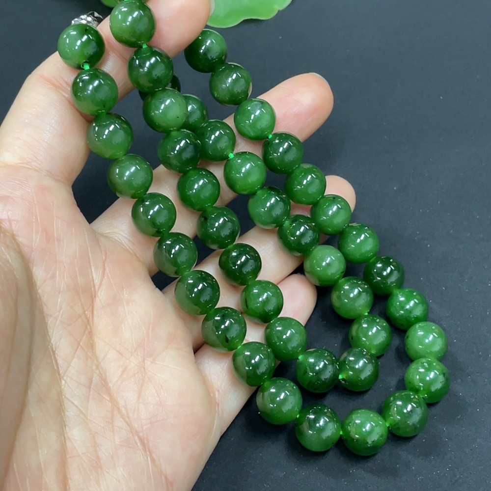 Hetian Jade Jasper Bead Necklace, Non-Gold, Approx. 9.3mm, Total Weight Approx. 65.8g