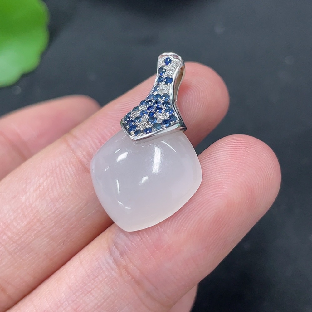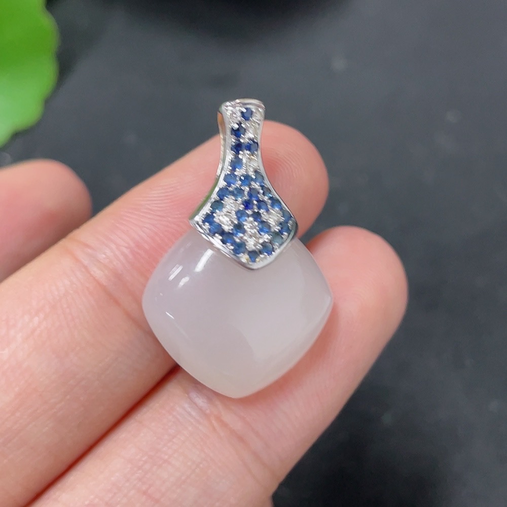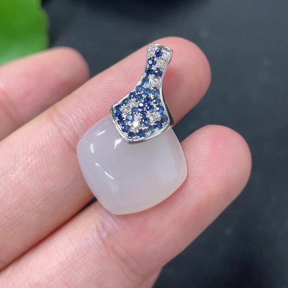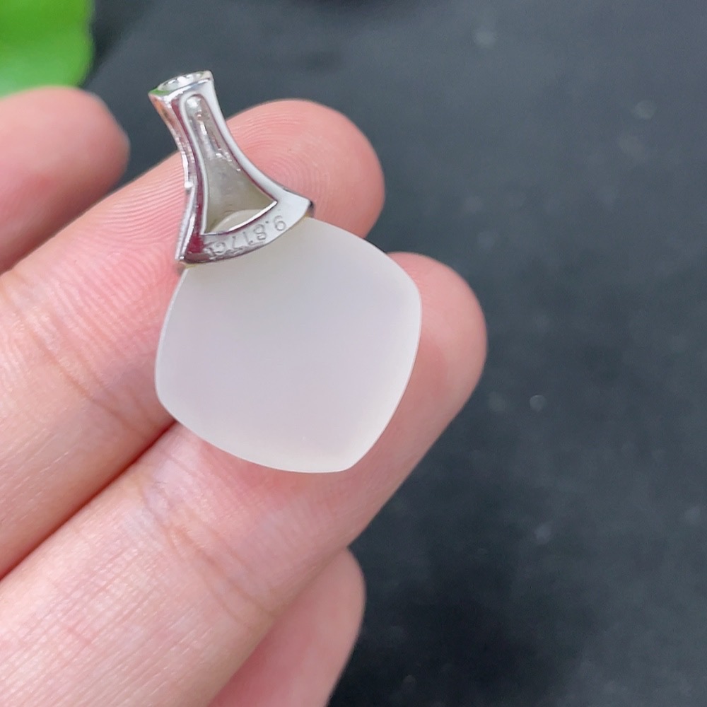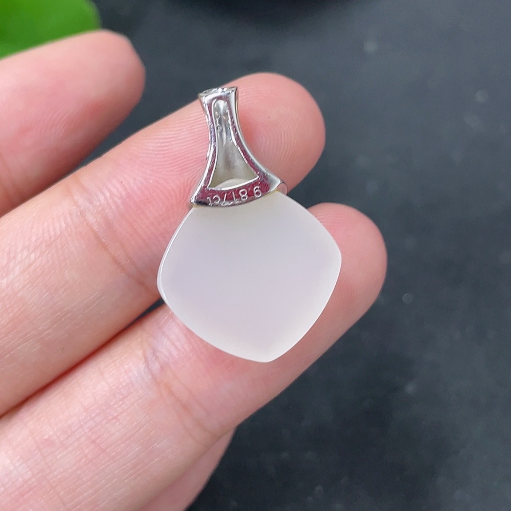 Hetian Jade Inlaid Pendant, 18k Gold, Non-Diamond, Matching Beads Not Hetian Jade, Total Weight Approx. 3.2g