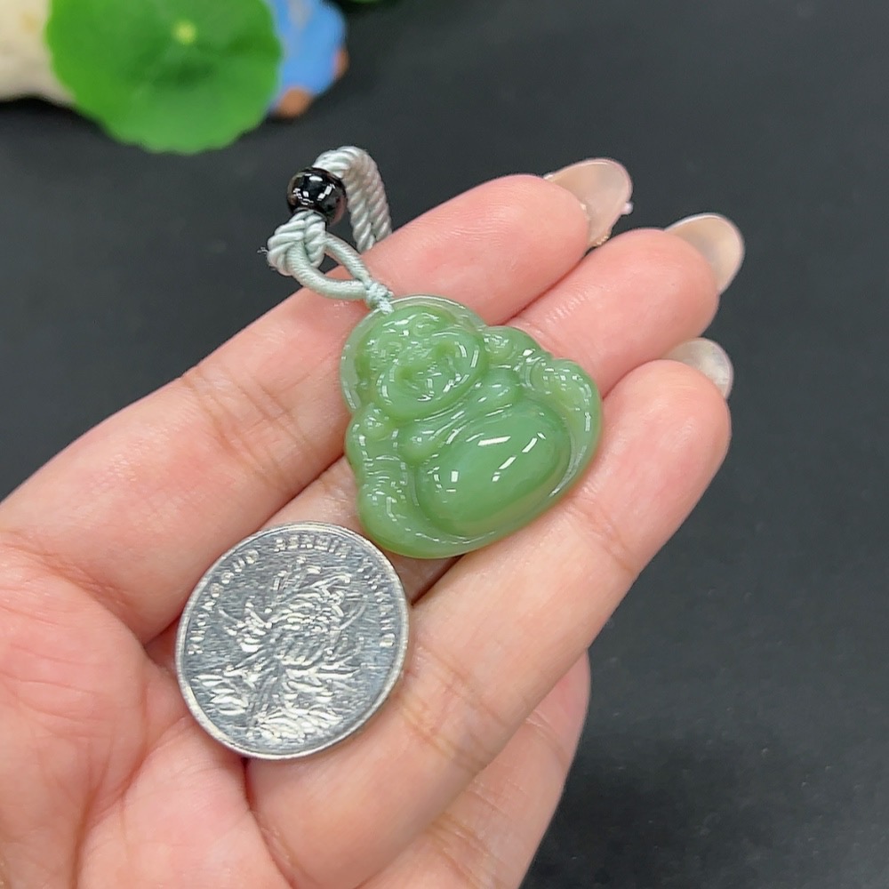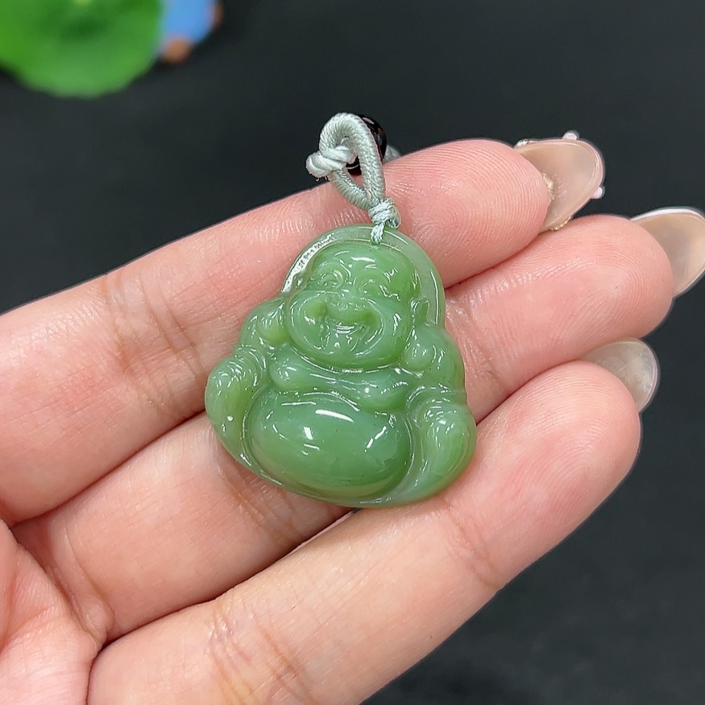 Hetian Jade Pendant - Buddha, Total Weight Approx. [Including Rope] 10.5g, Beads Not Hetian Jade