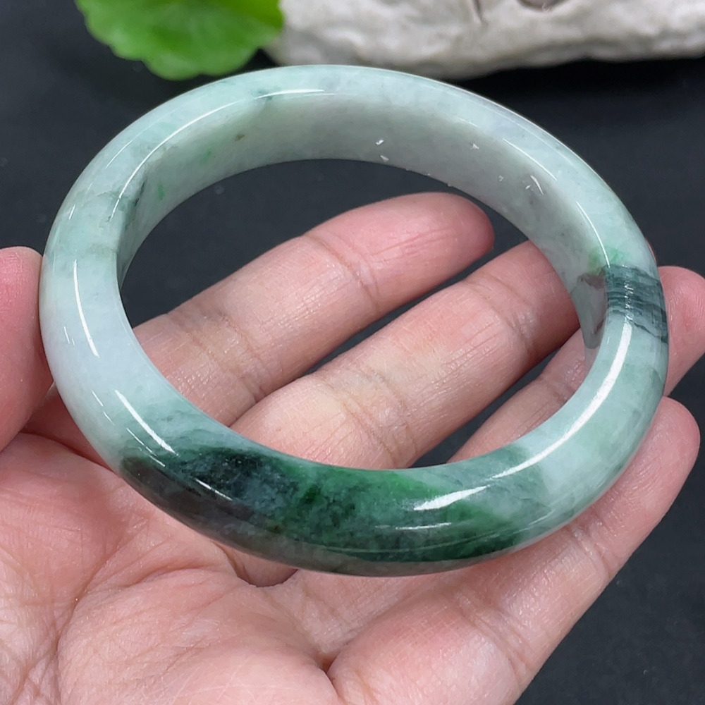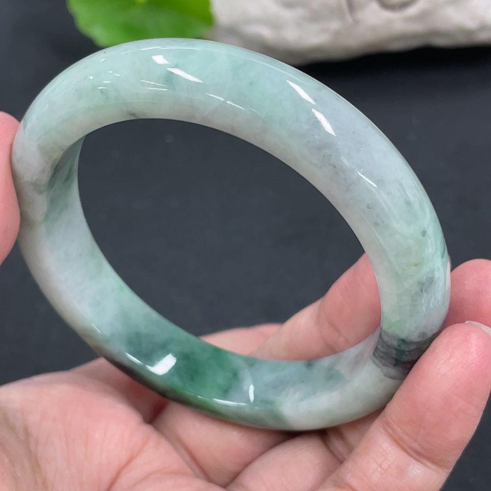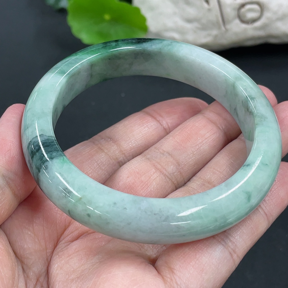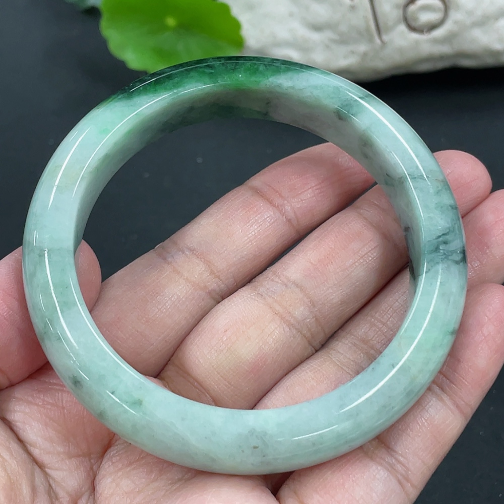 Jadeite Round Bangle, Total Weight Approx. 60.86g, Contains Other Mineral Components, Size 55.8
