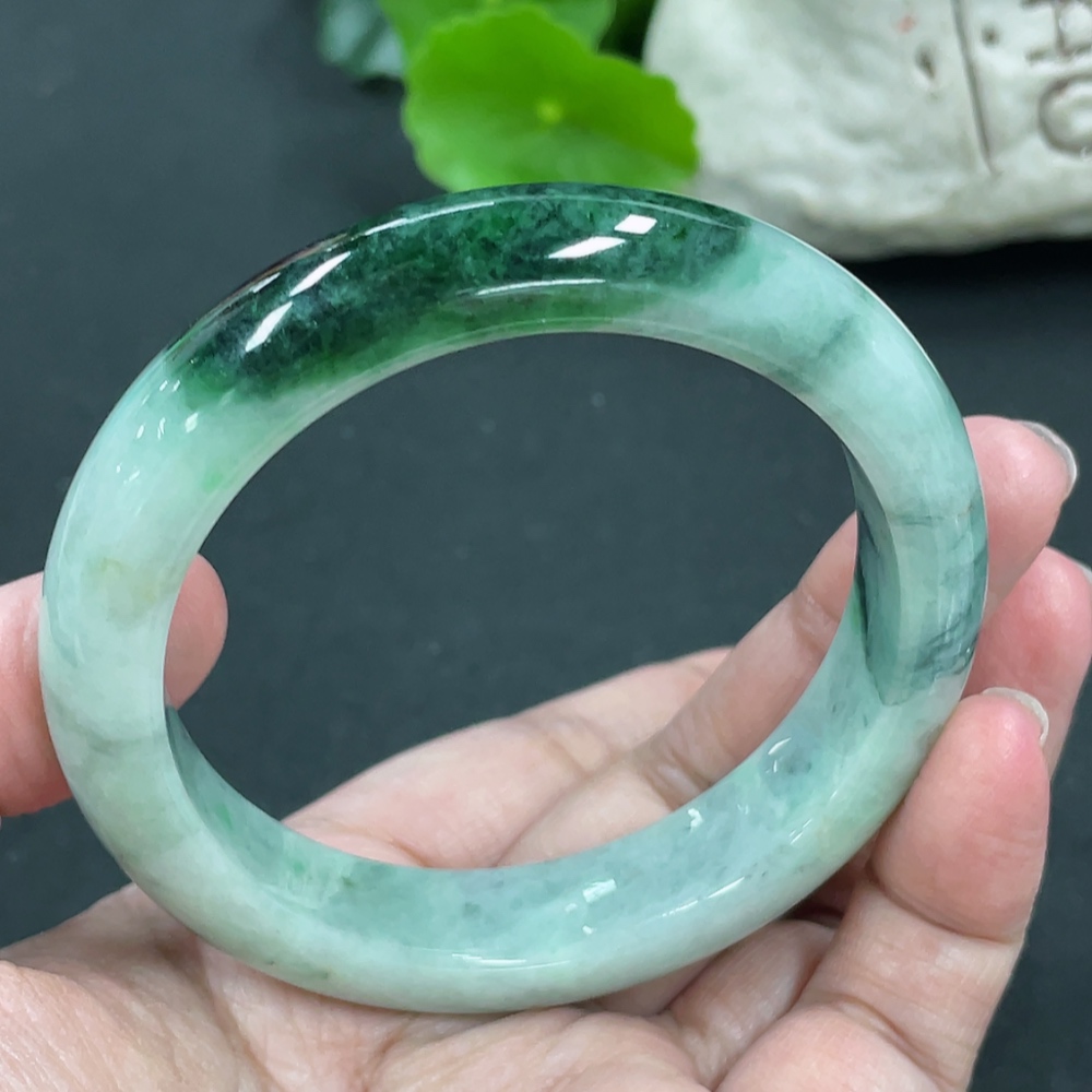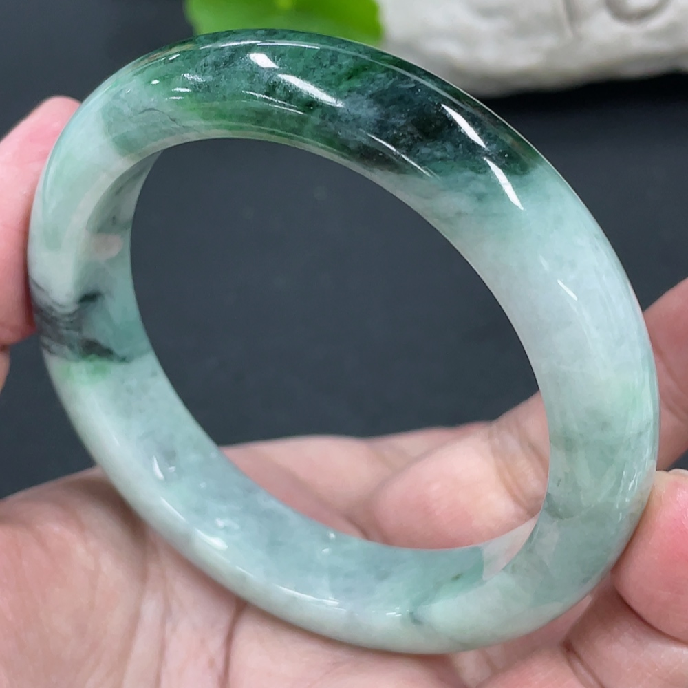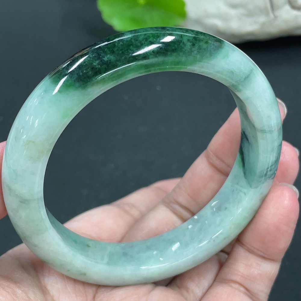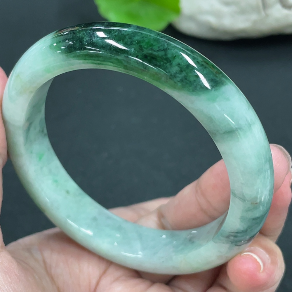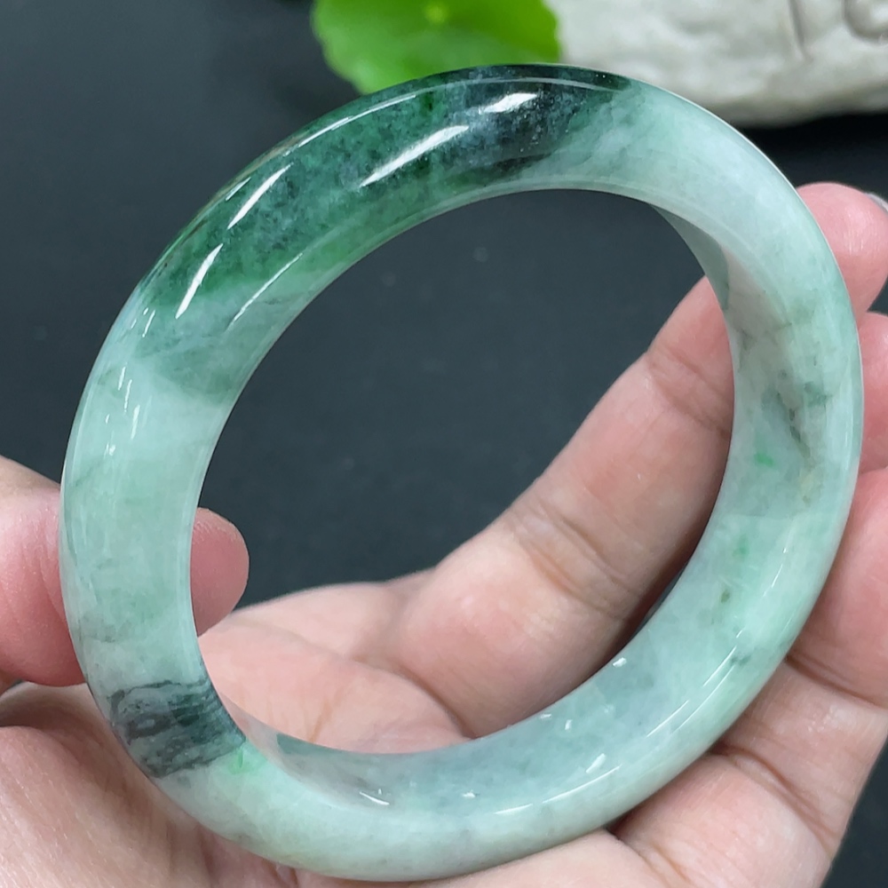 Jadeite Round Bangle, Total Weight Approx. 60.86g, Contains Other Mineral Components, Size 55.8
