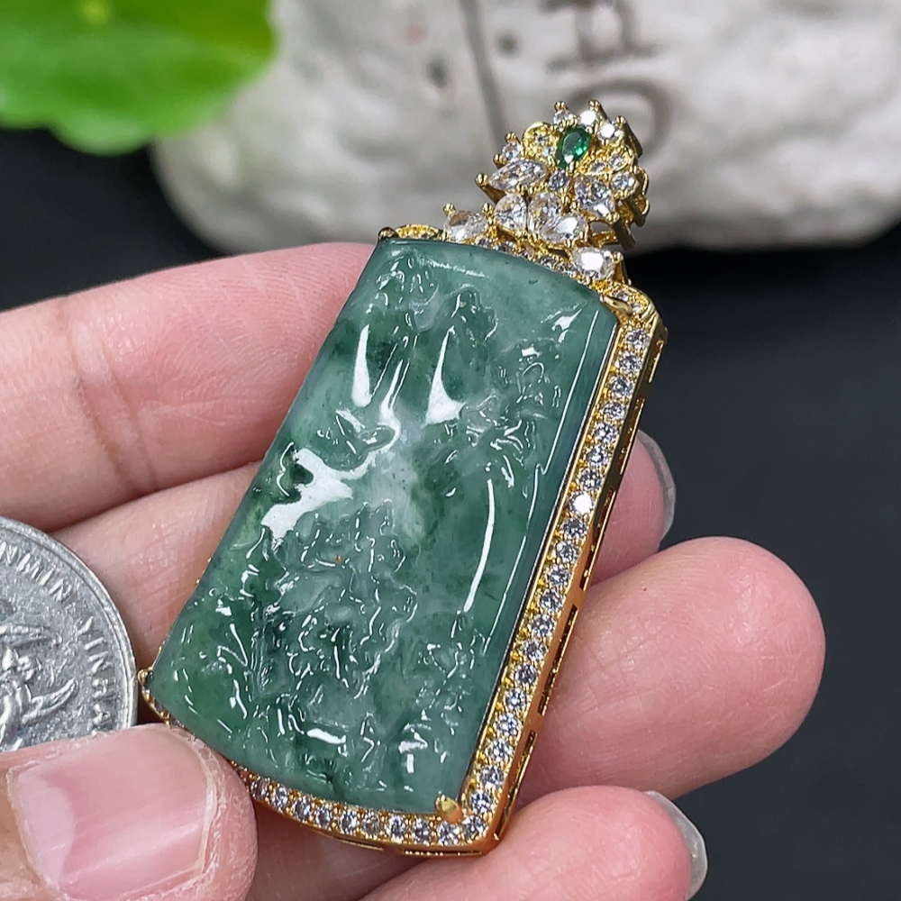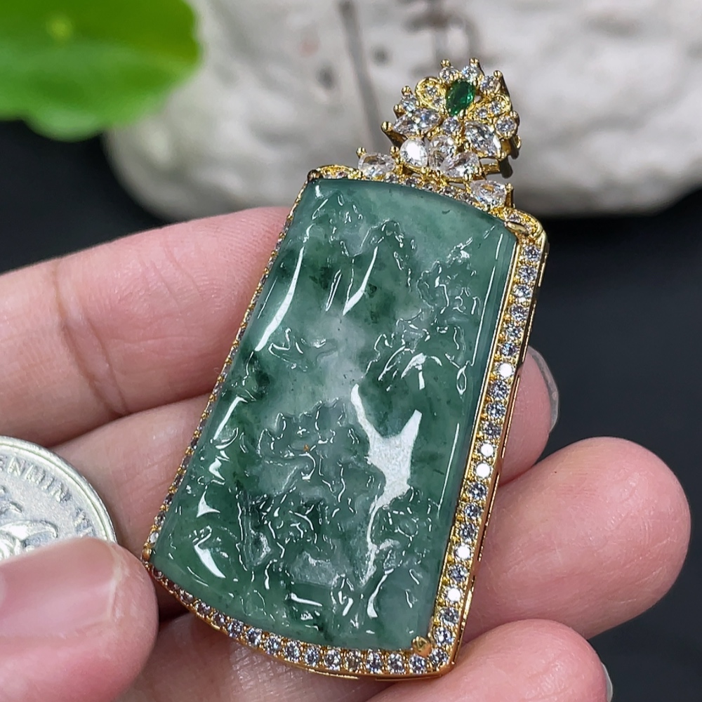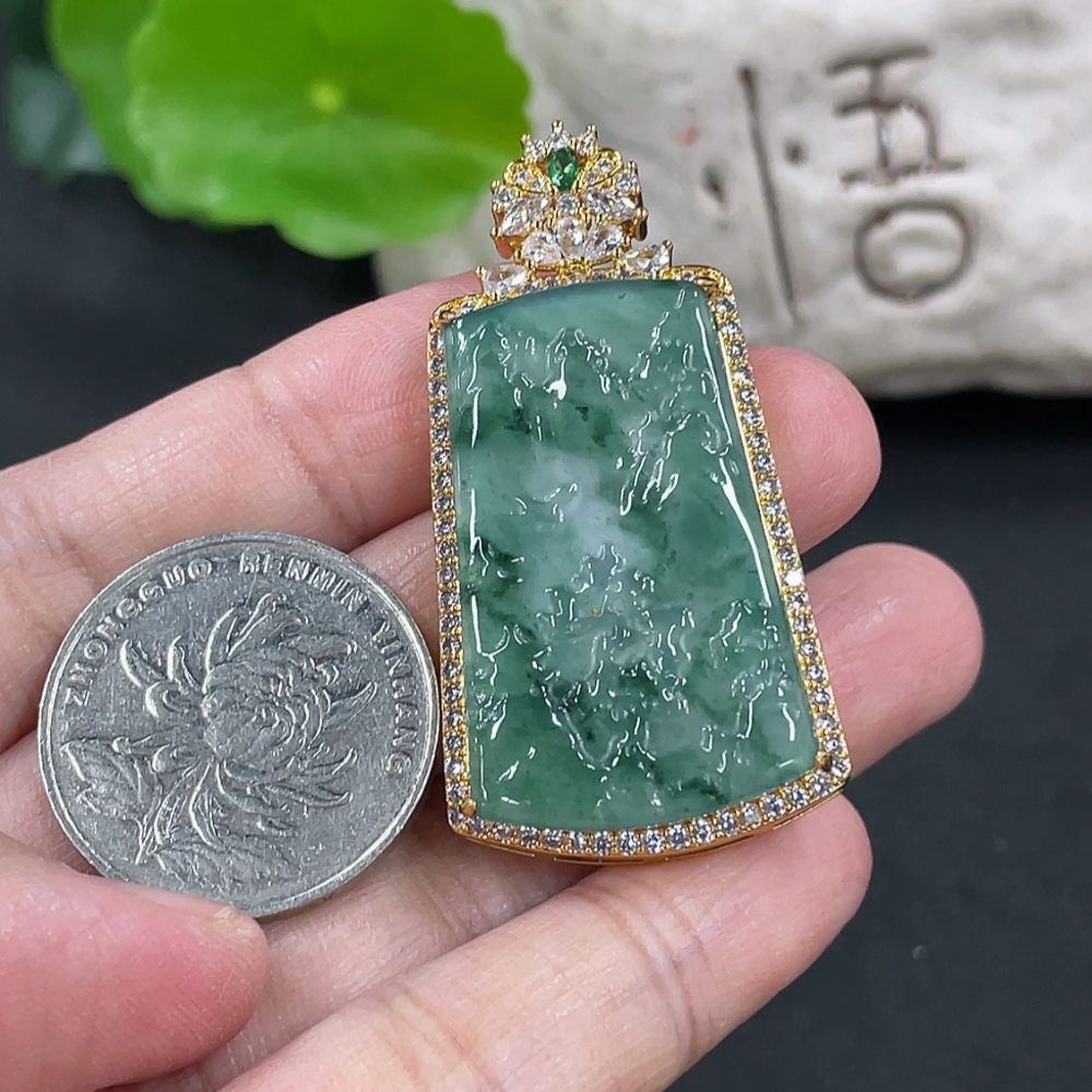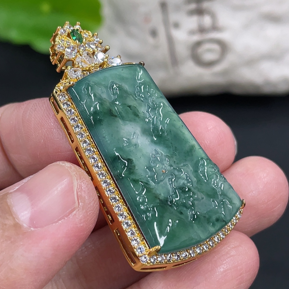 Jadeite Landscape Inlaid Pendant Non-Gold Inlaid Product Weight Without Chain Approx. 8g