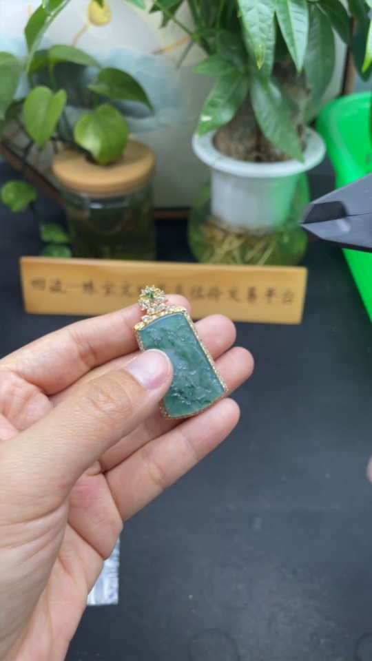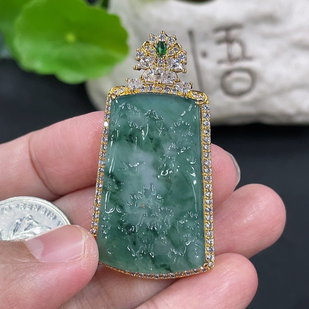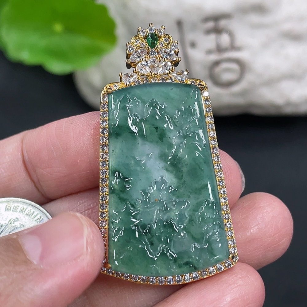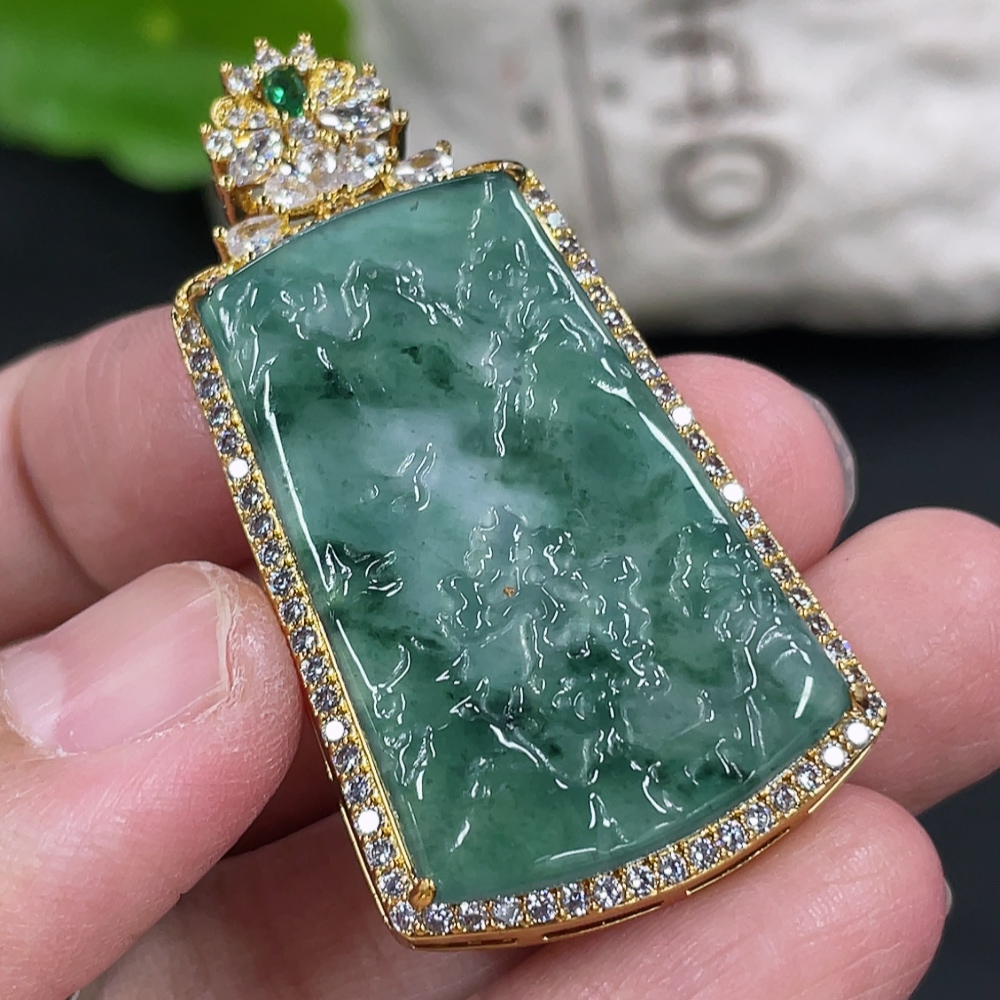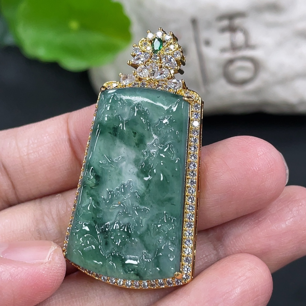 Jadeite Landscape Inlaid Pendant Non-Gold Inlaid Product Weight Without Chain Approx. 8g