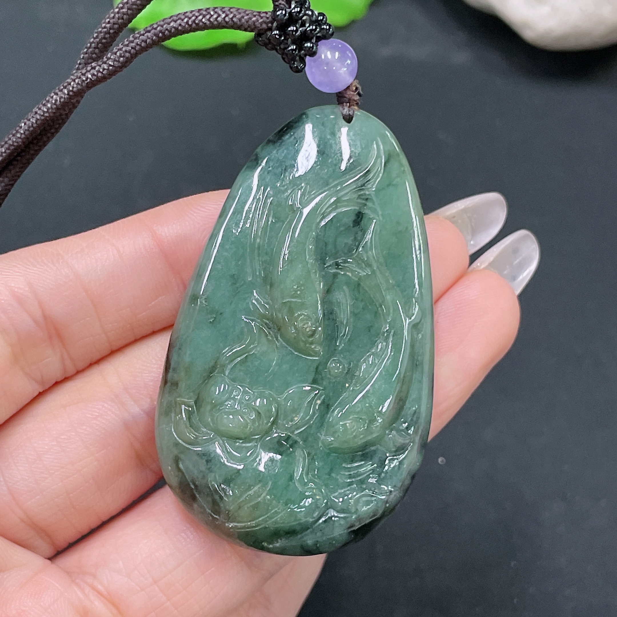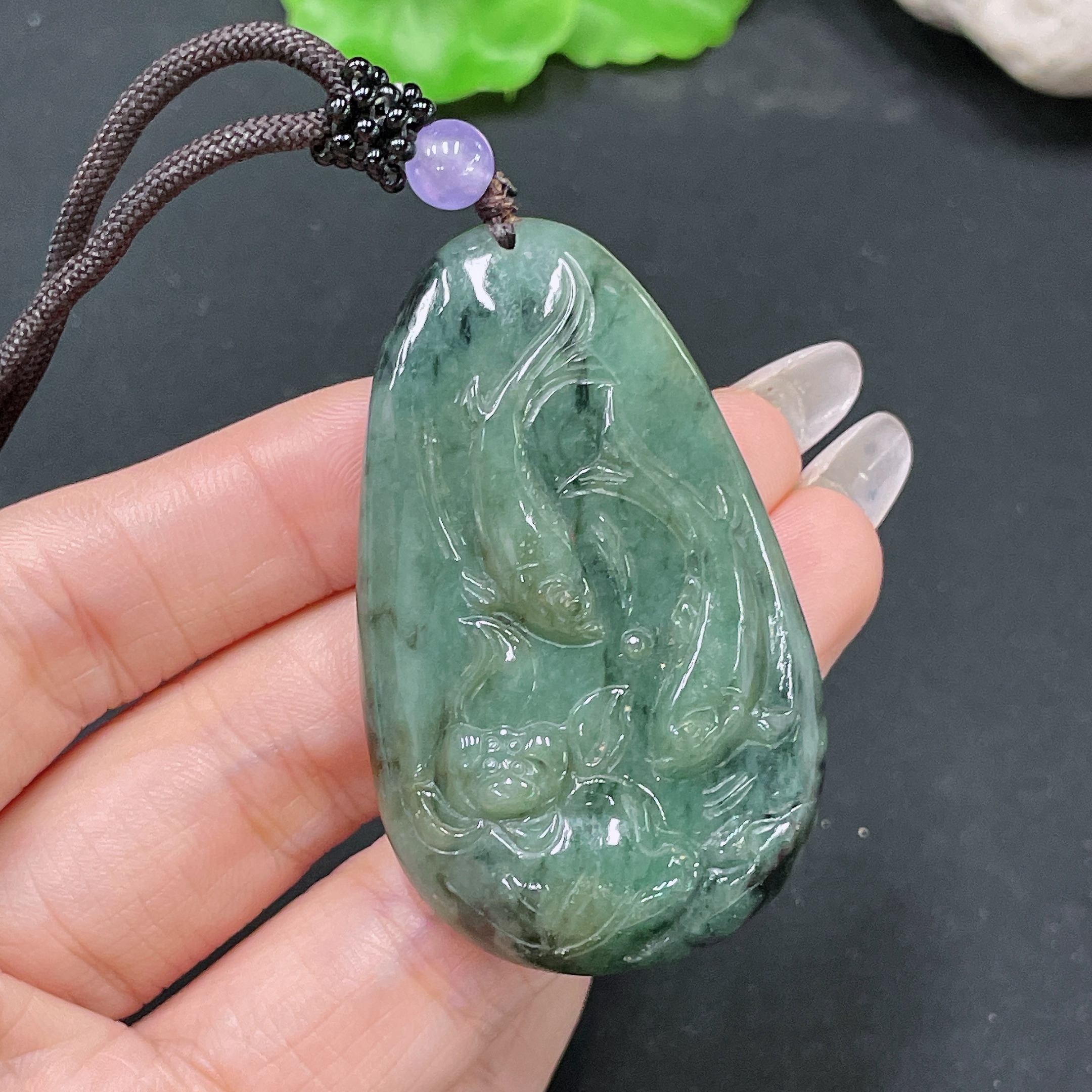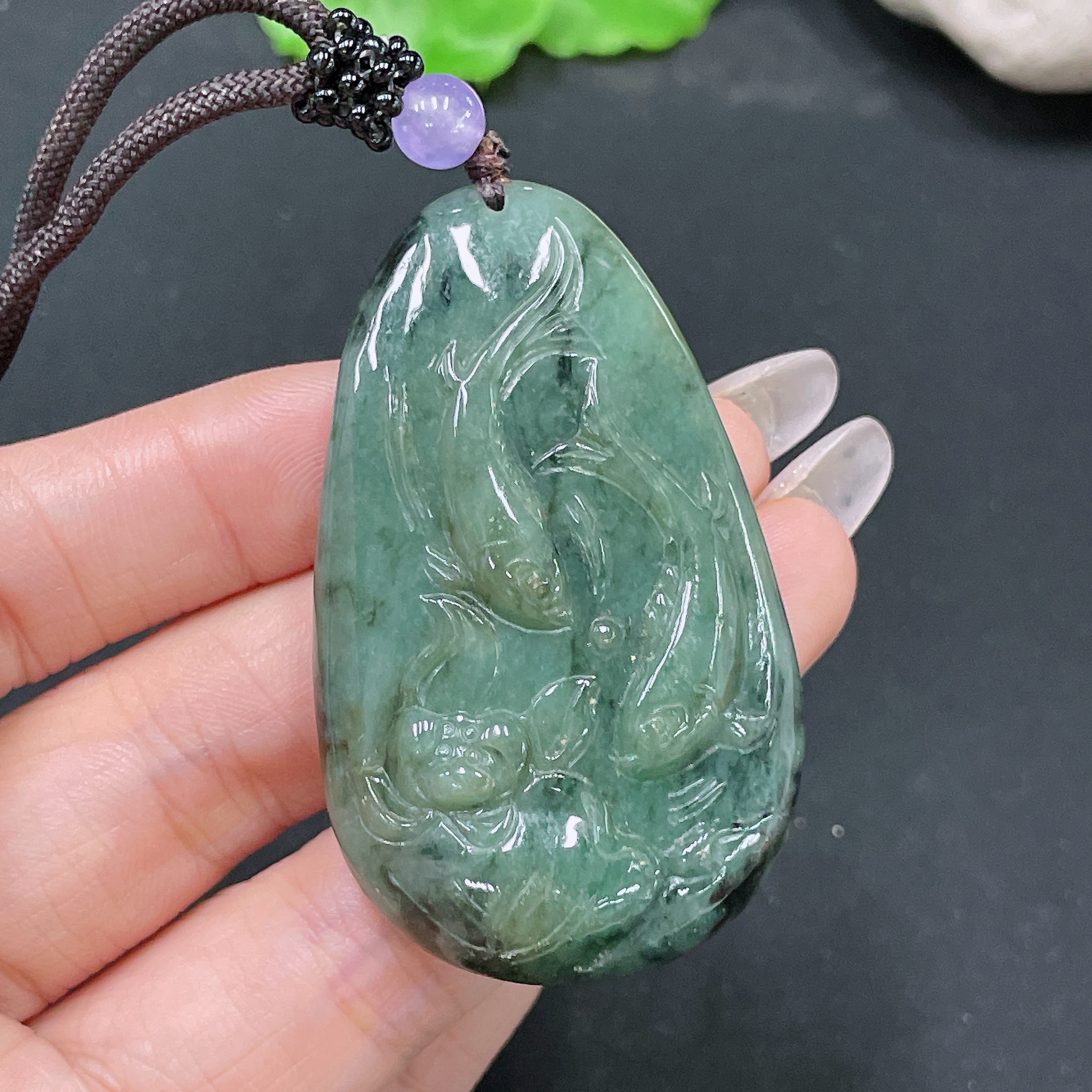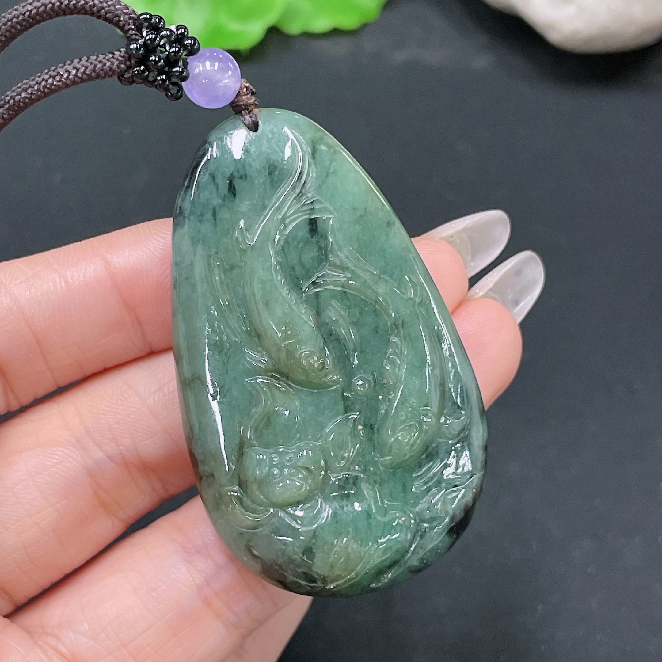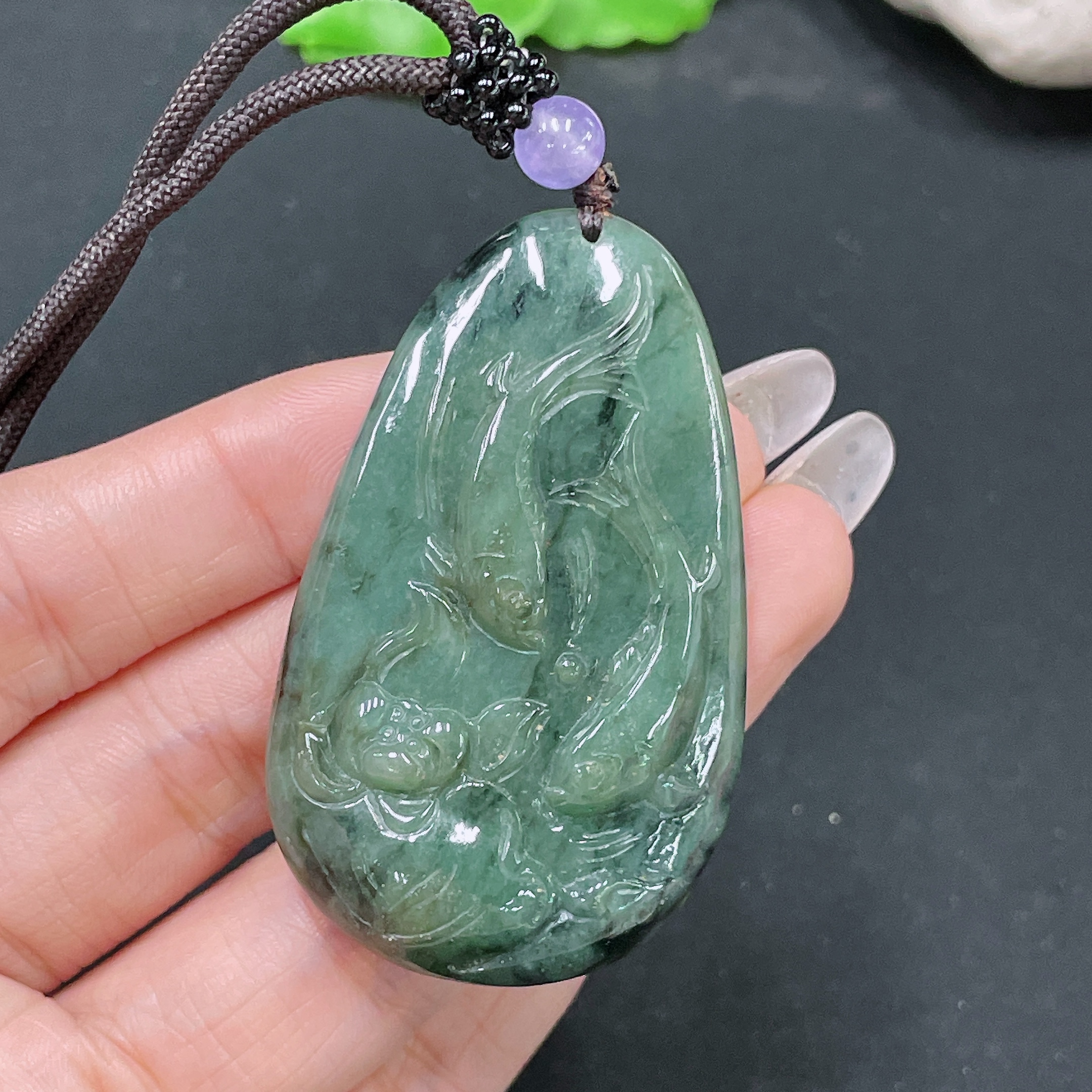 Jadeite Pendant with Non-Type A Beads Containing Other Mineral Components, Total Weight Approximately 43.13g