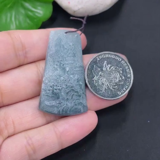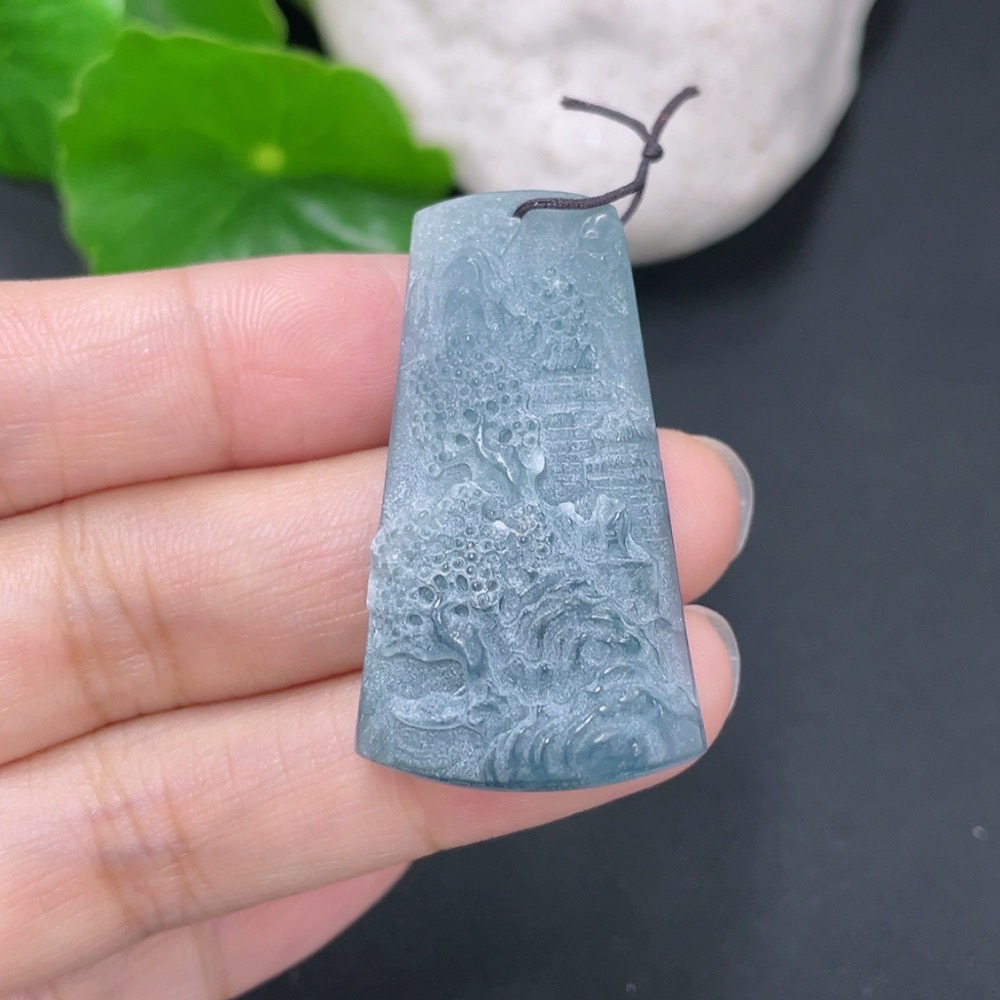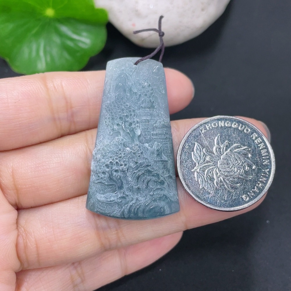 Jadeite Rough Landscape Pendant Total Weight Approx. 8.2g