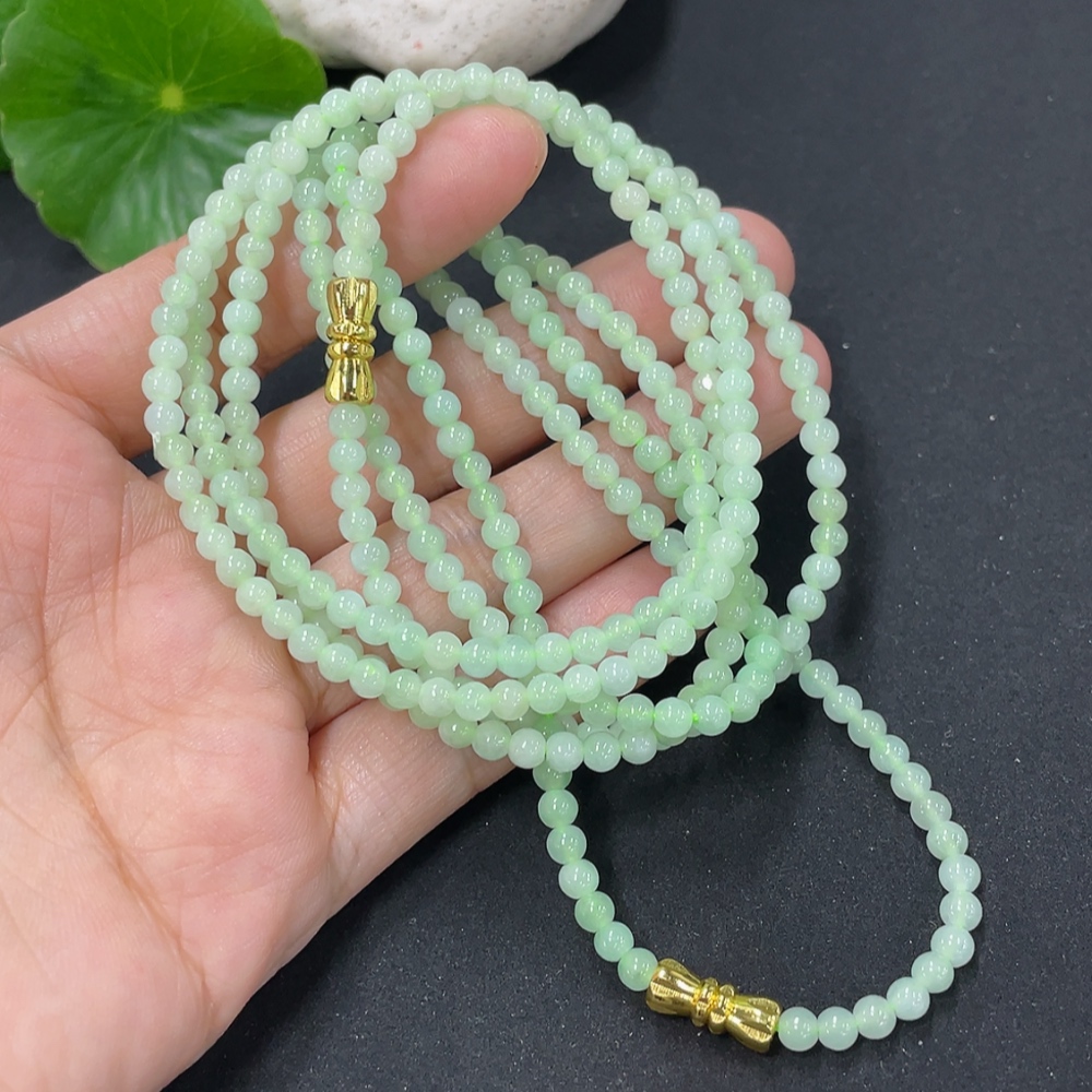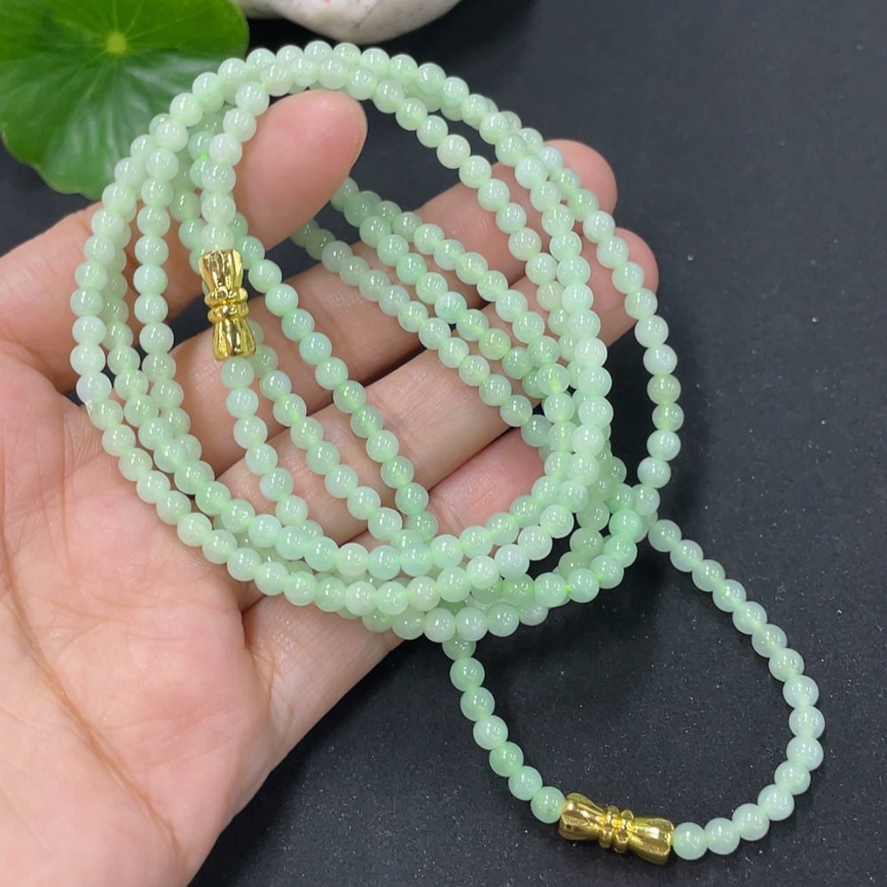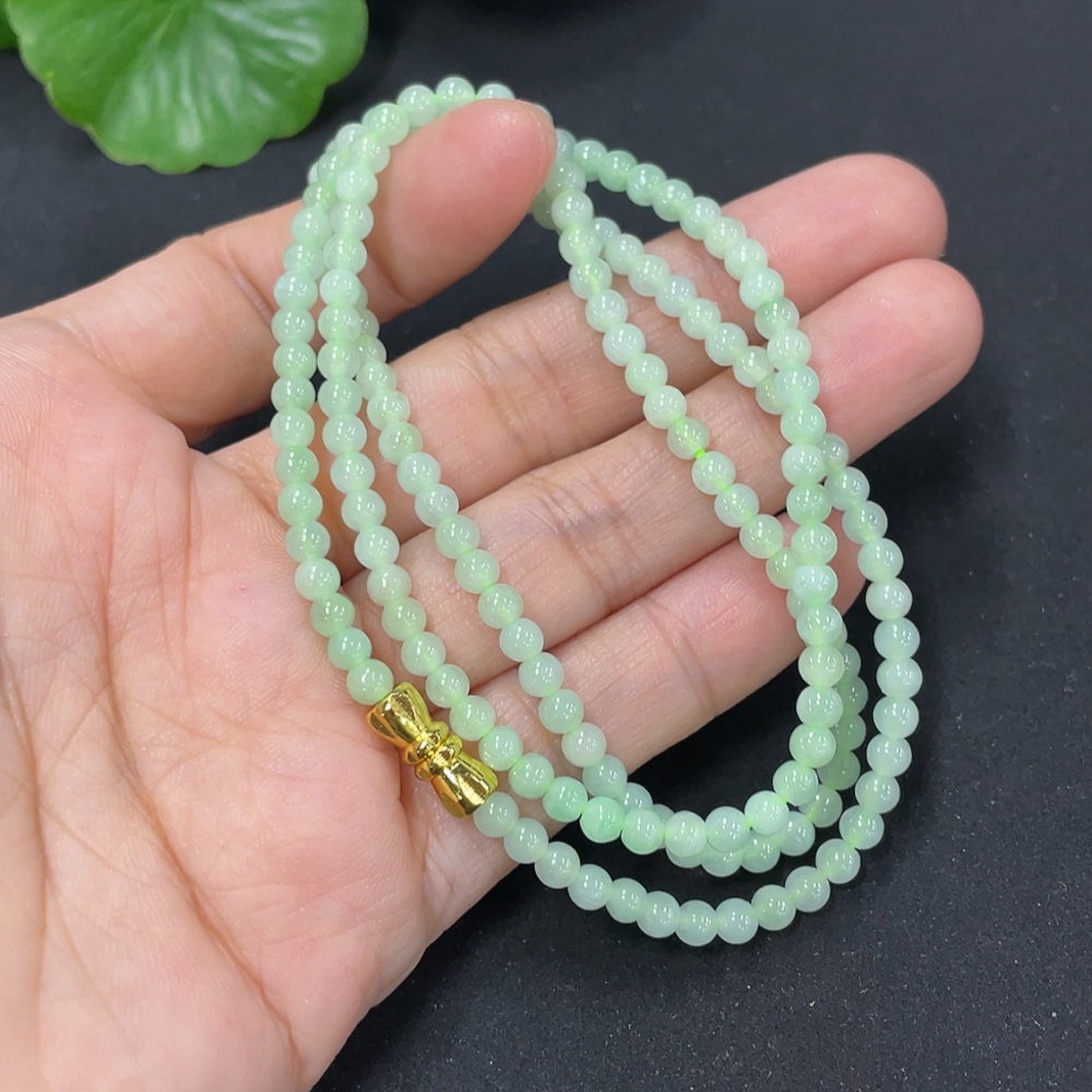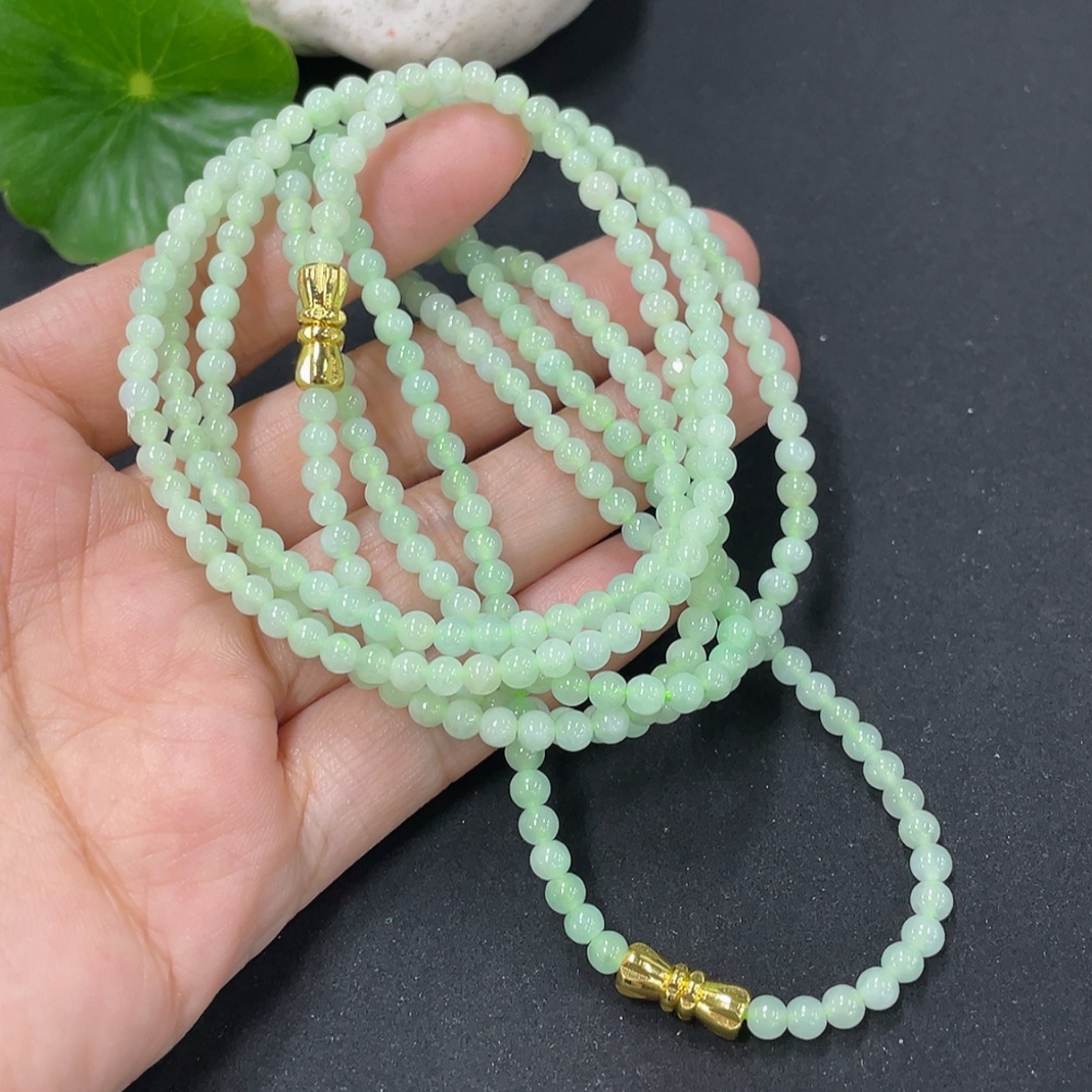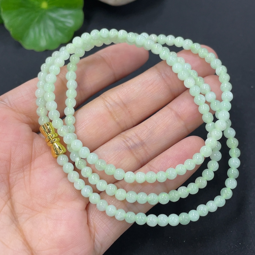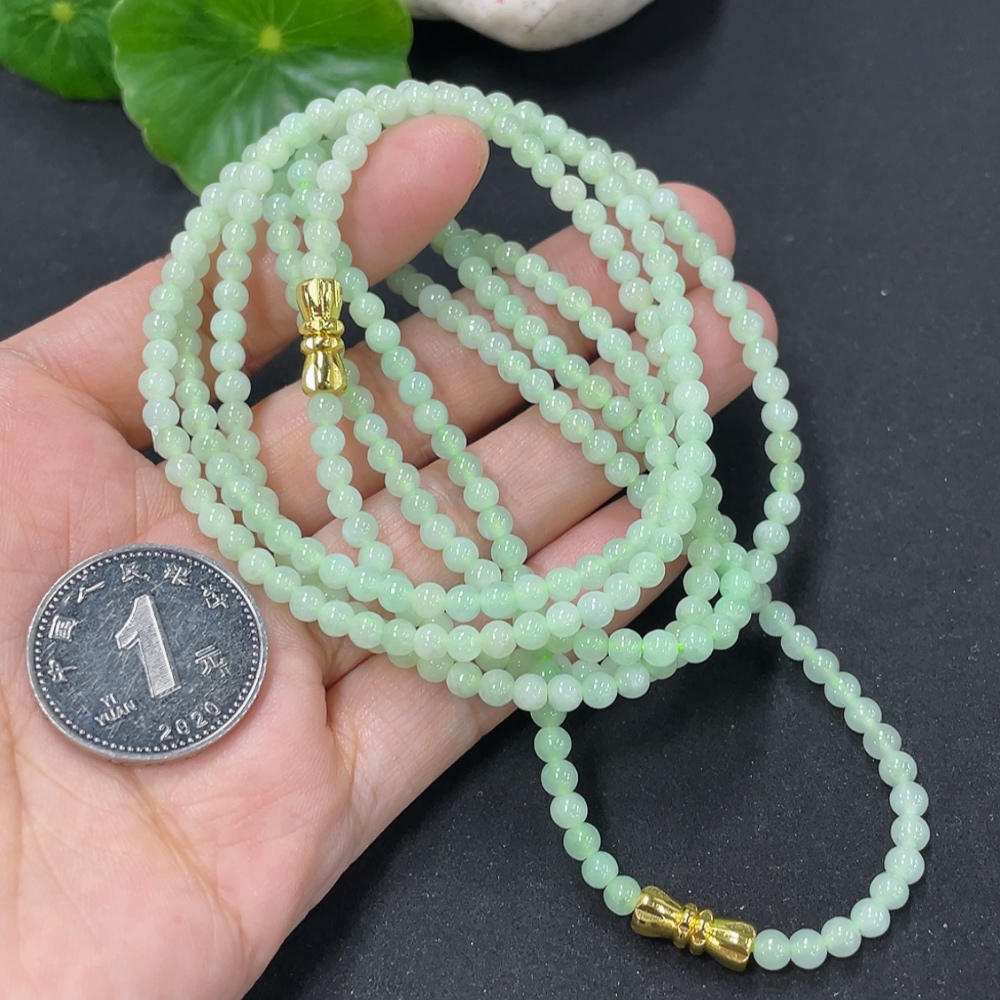 Jadeite Beaded Necklace Approx. 3.5mm Total Weight 26g Non-Gold Clasp