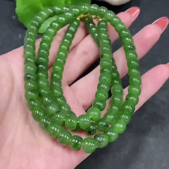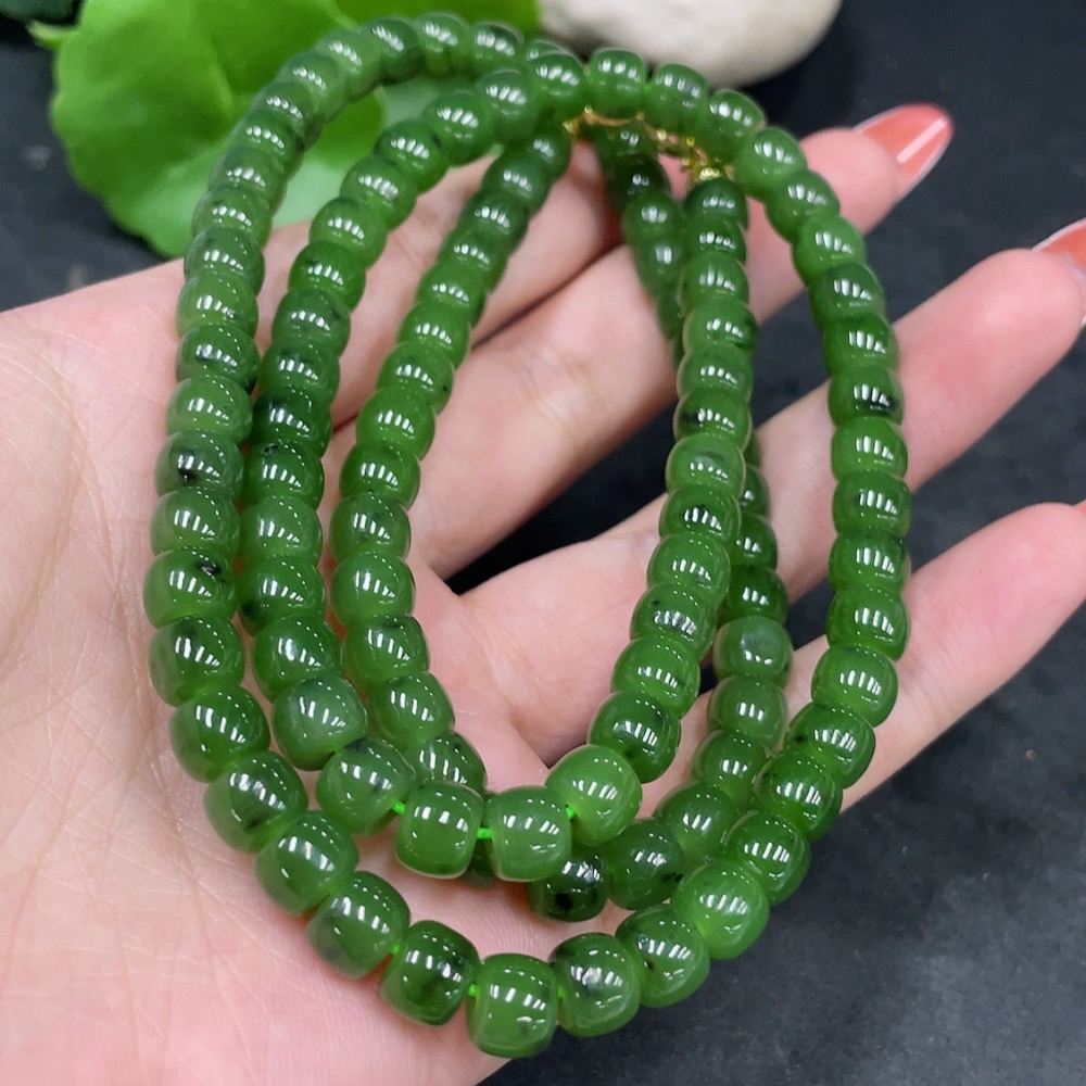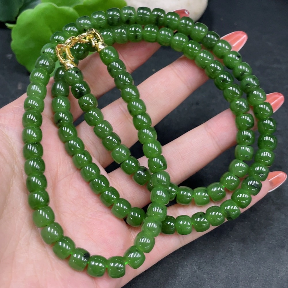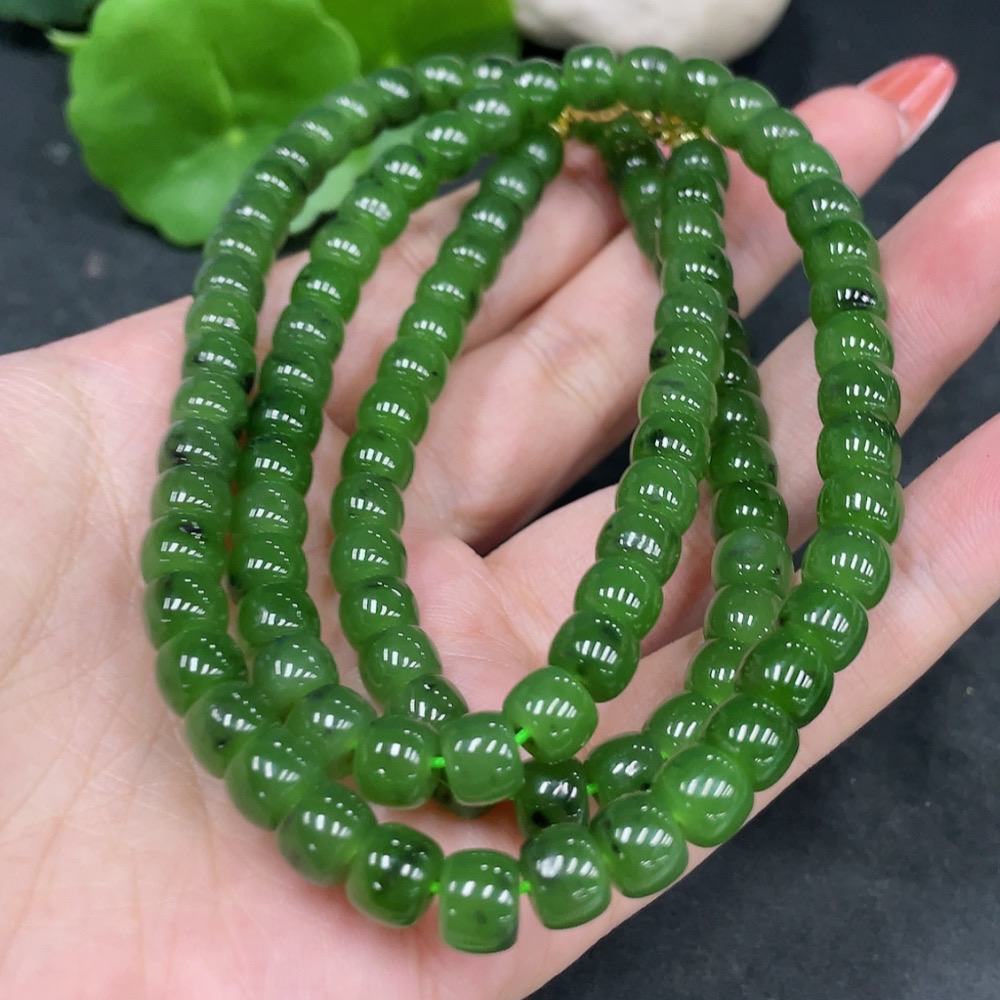 Hetian Jade Jasper Bead Necklace, Approx. 6.8 mm, Total Weight Approx. 59.8g, Non-Gold