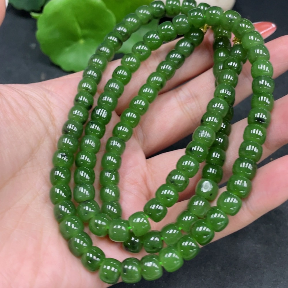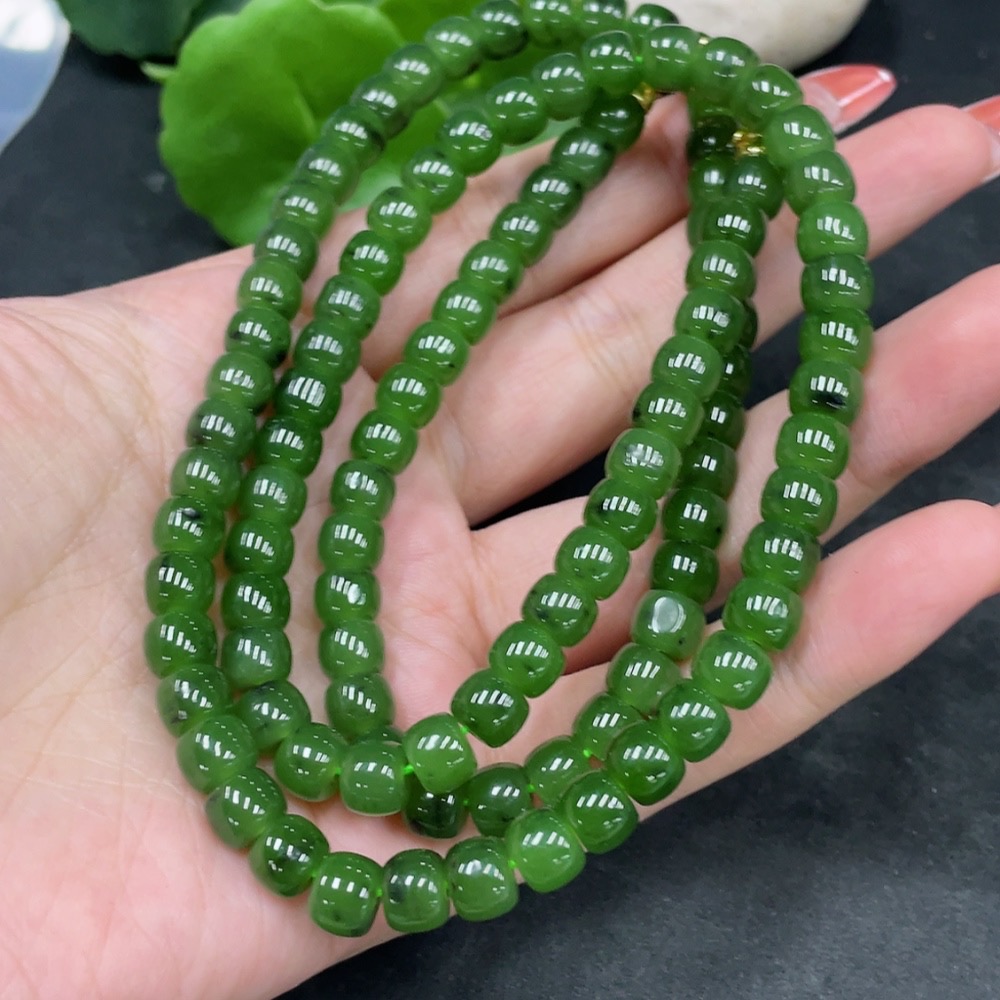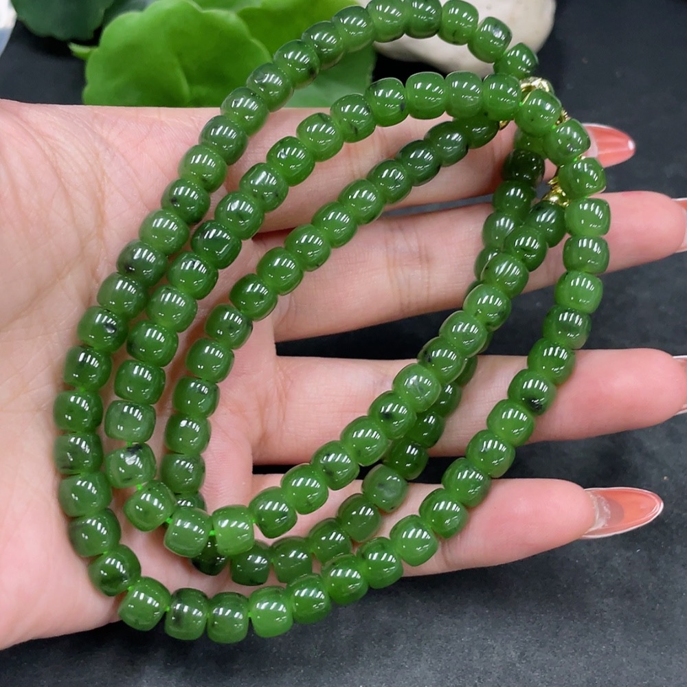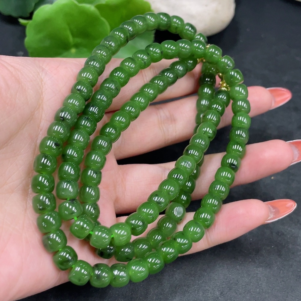 Hetian Jade Jasper Bead Necklace, Approx. 6.8 mm, Total Weight Approx. 59.8g, Non-Gold