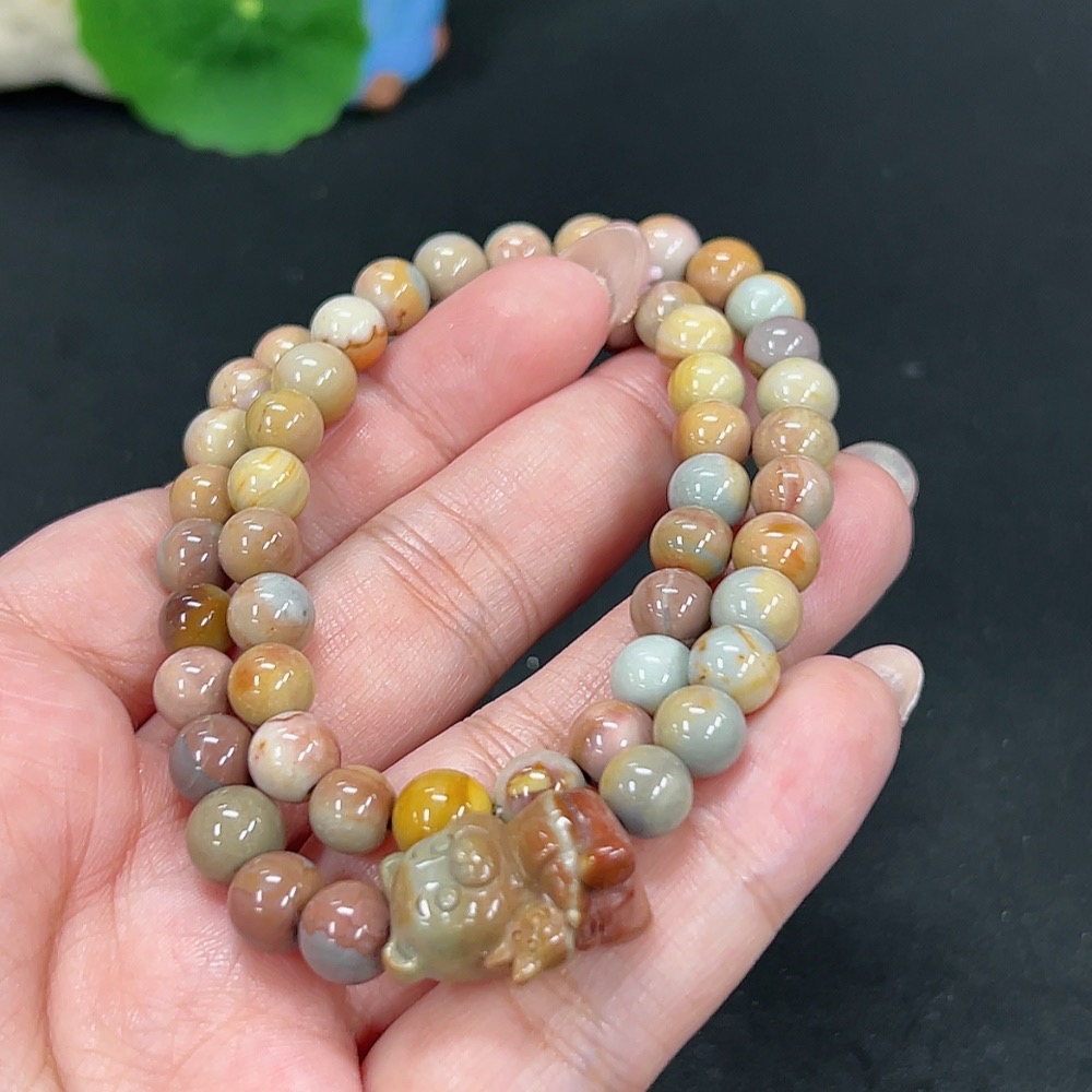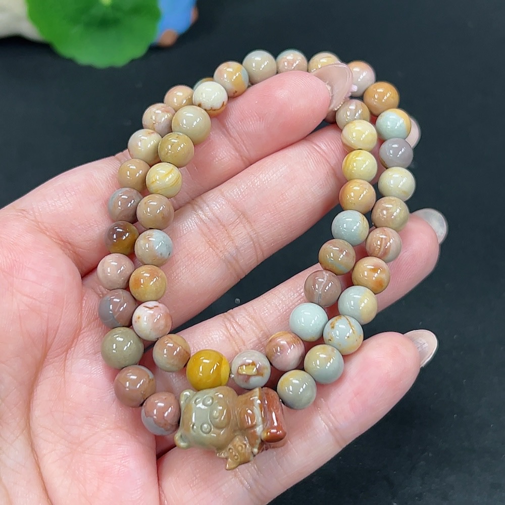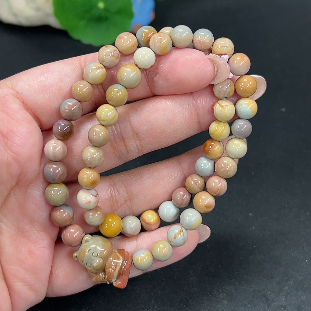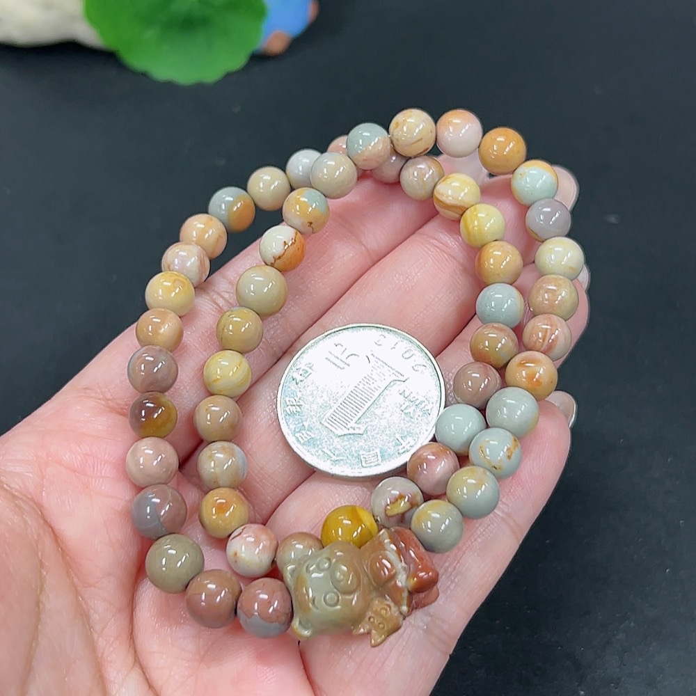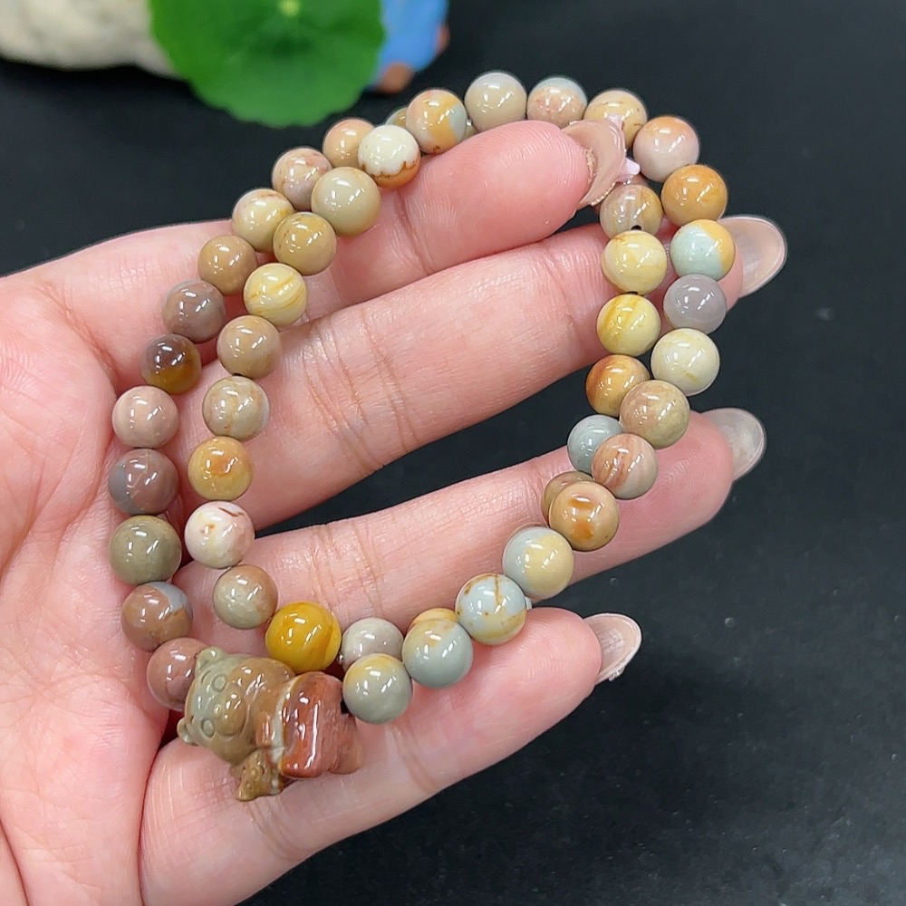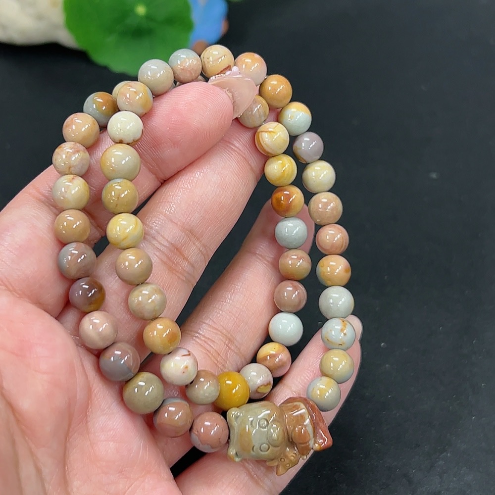 Alashan Agate Bead Necklace, approx. 7.8mm, containing other mineral components, total weight approx. 30.8g
