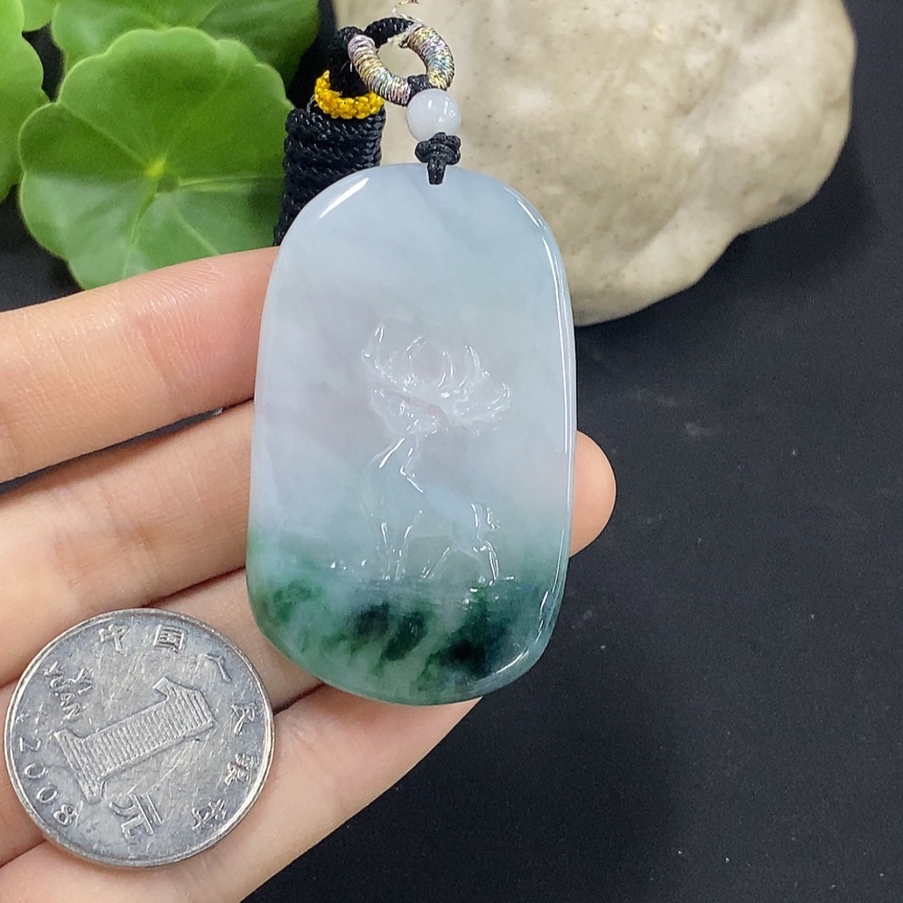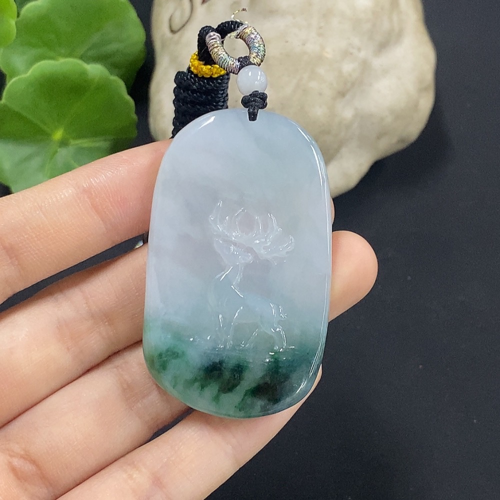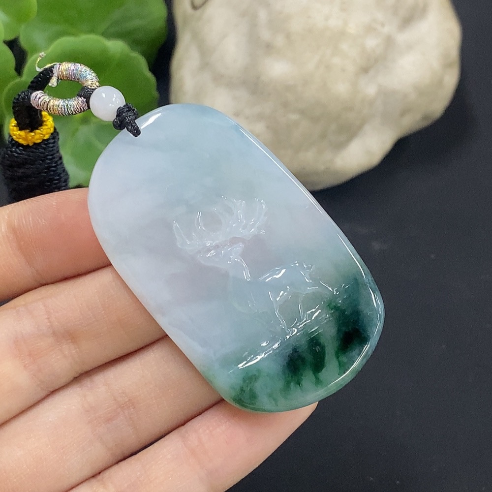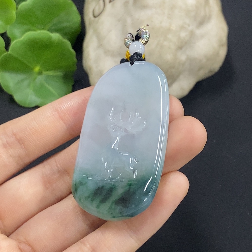 Jadeite Deer Pendant with Non-A Grade Beads, Total Weight Approx. 22.02g