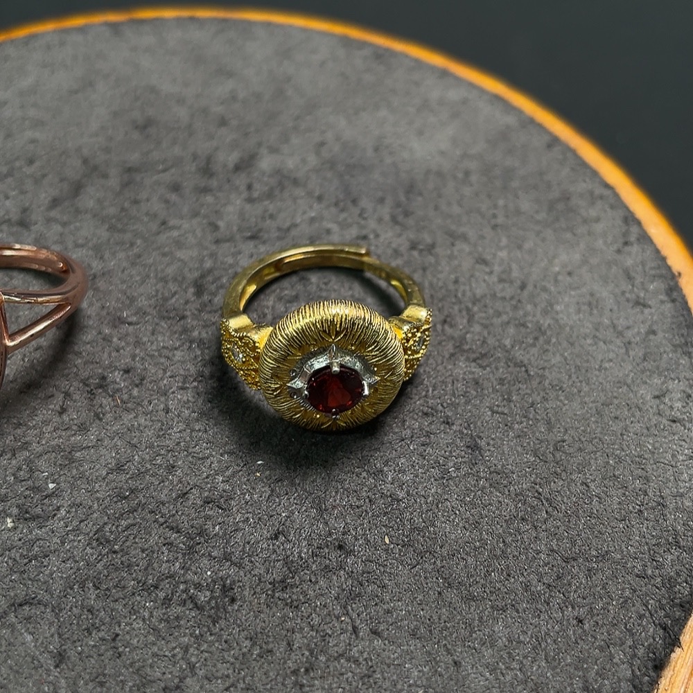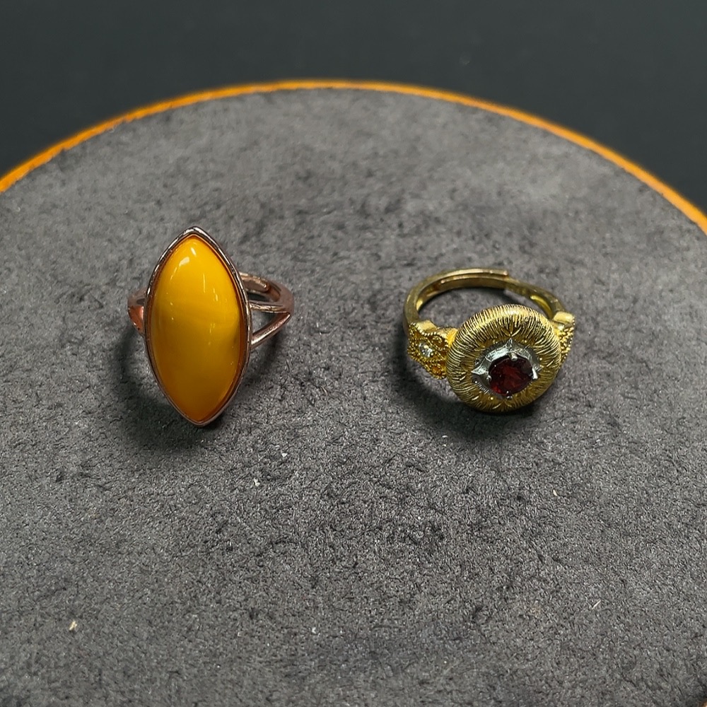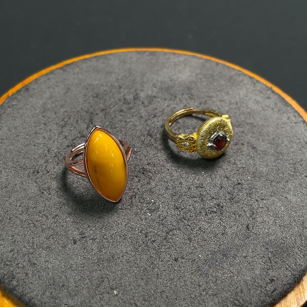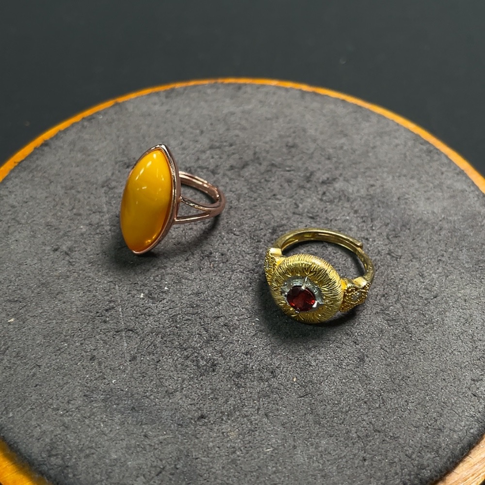 Garnet + Amber Ring Non-Gold Adjustable Total Weight Approx. 6.7g Sell as a Lot