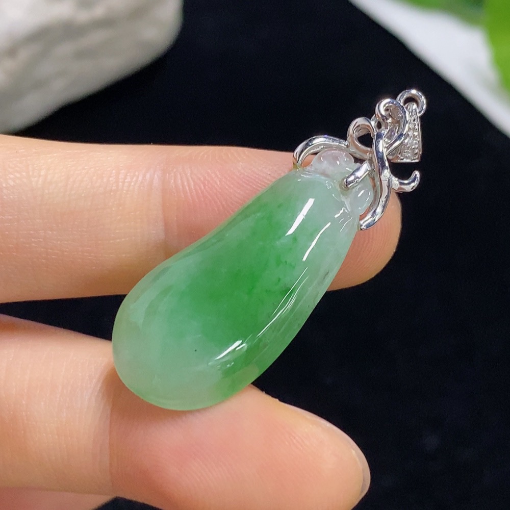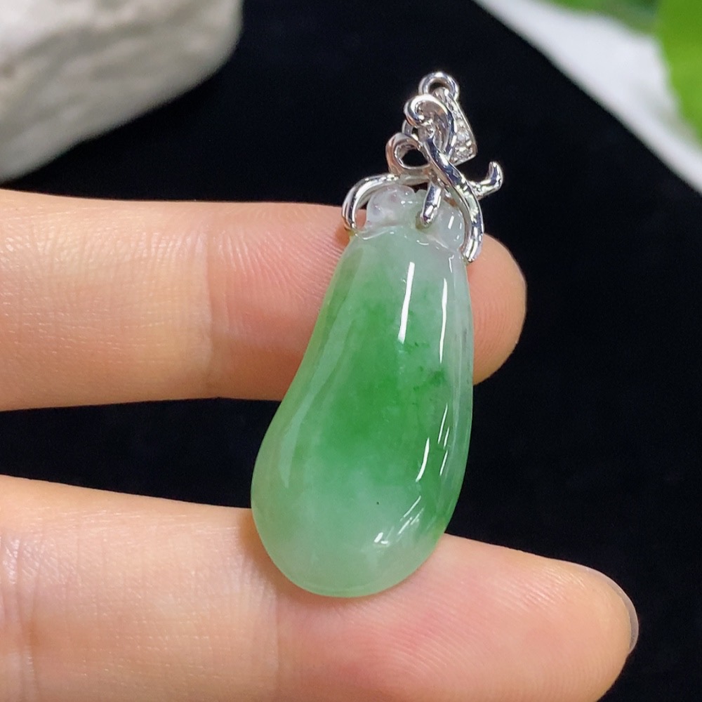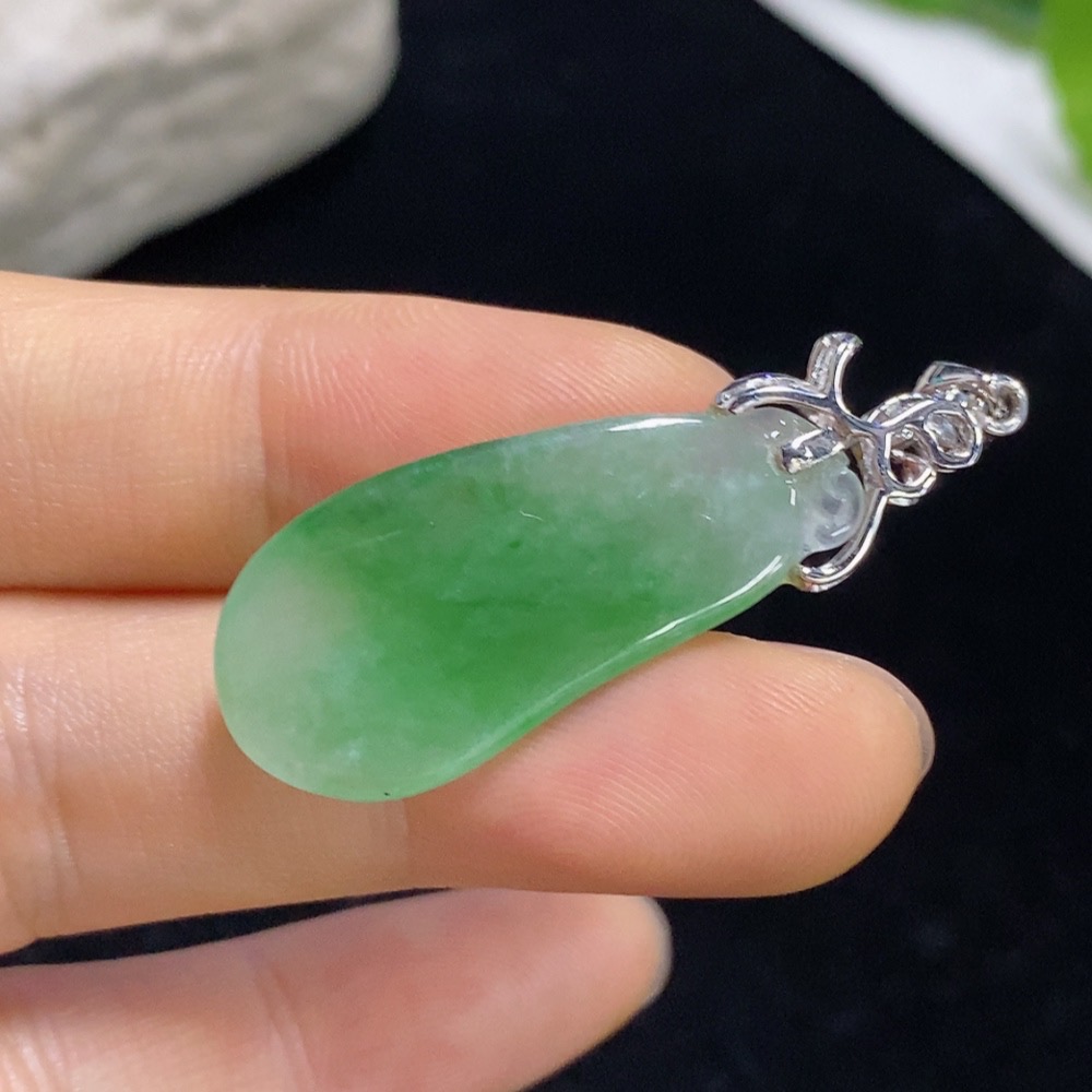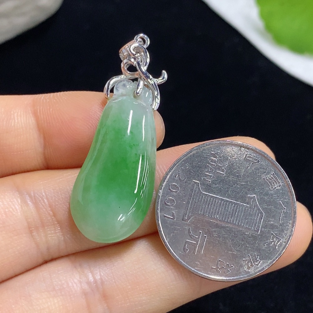 Jadeite Blessing Melon Pendant with 18K Gold and Diamond Accents, Total Weight Approximately 4.74g