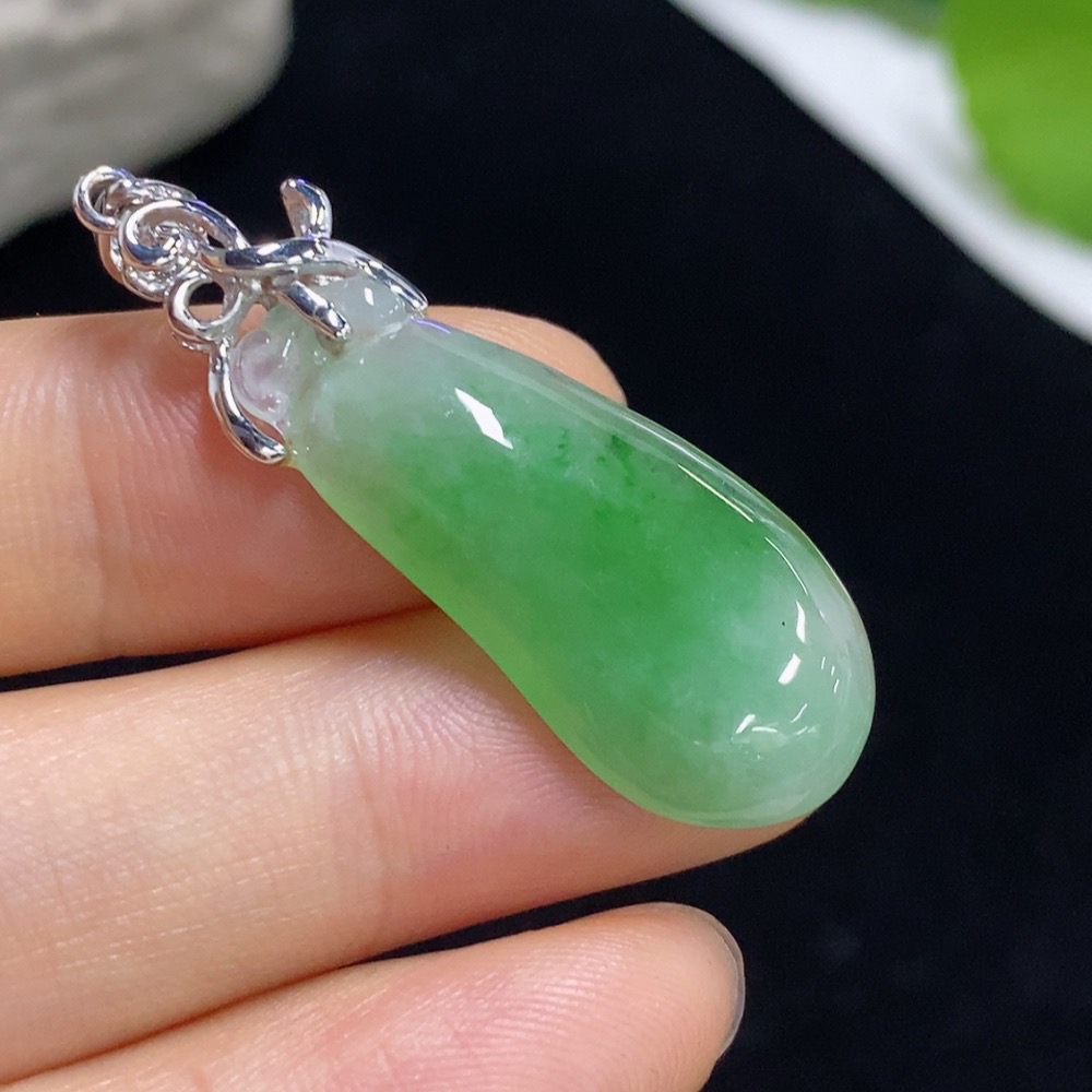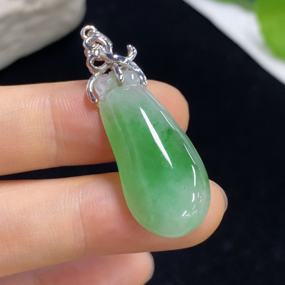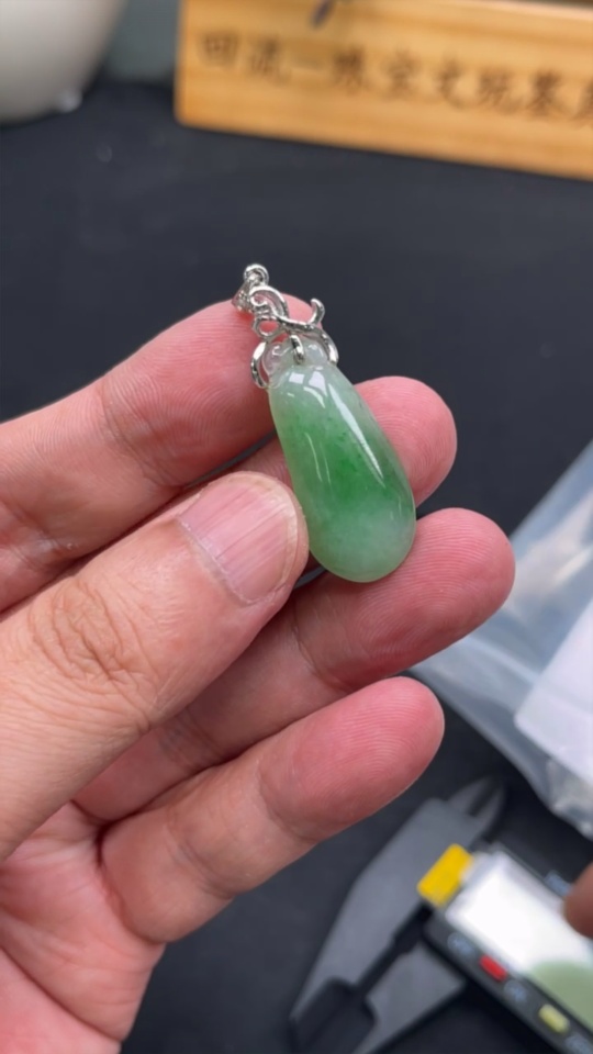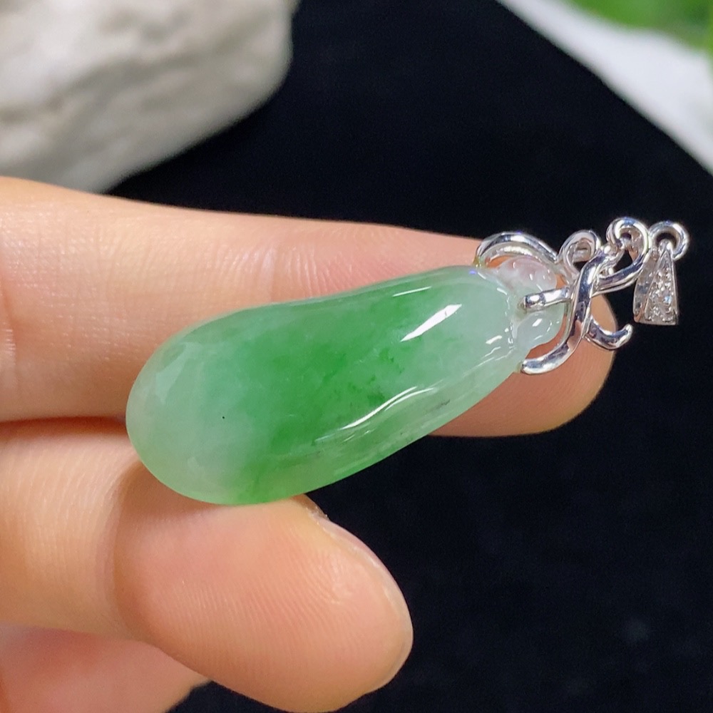 Jadeite Blessing Melon Pendant with 18K Gold and Diamond Accents, Total Weight Approximately 4.74g