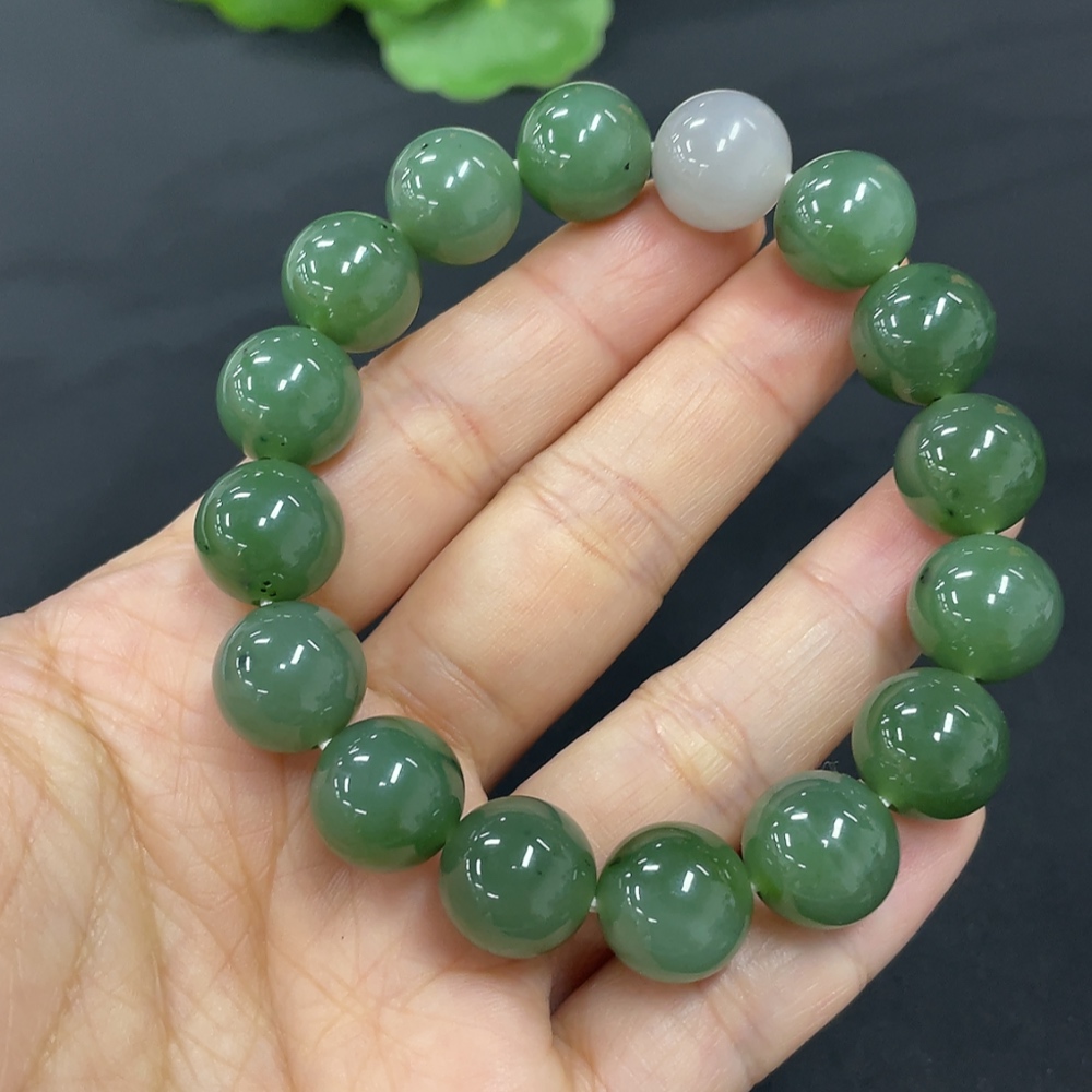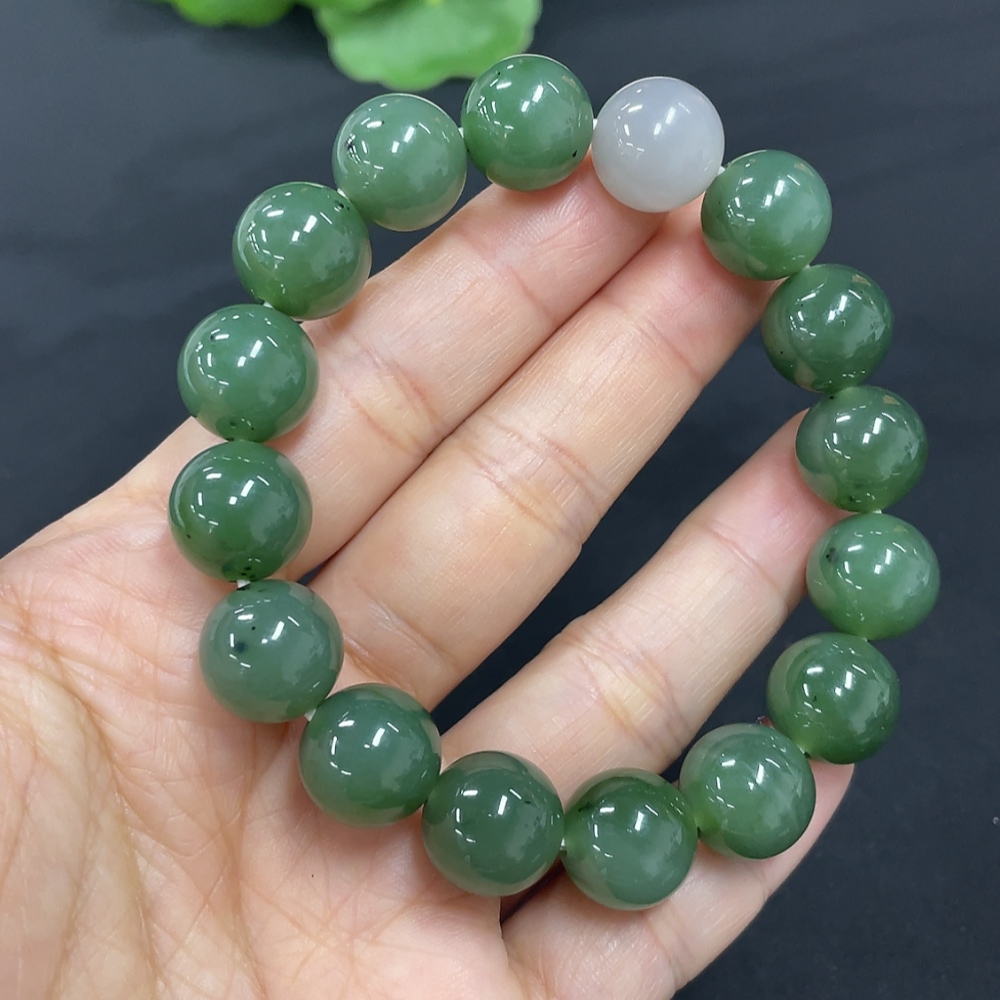 Hetian Jade Bead Bracelet, Approx. 11.8mm, Total Weight Approx. 42.3g