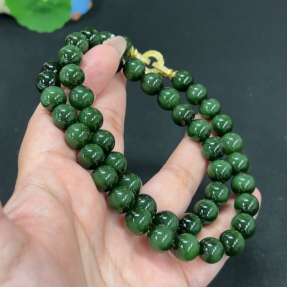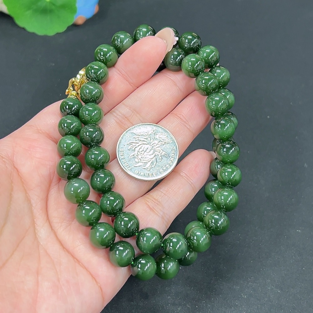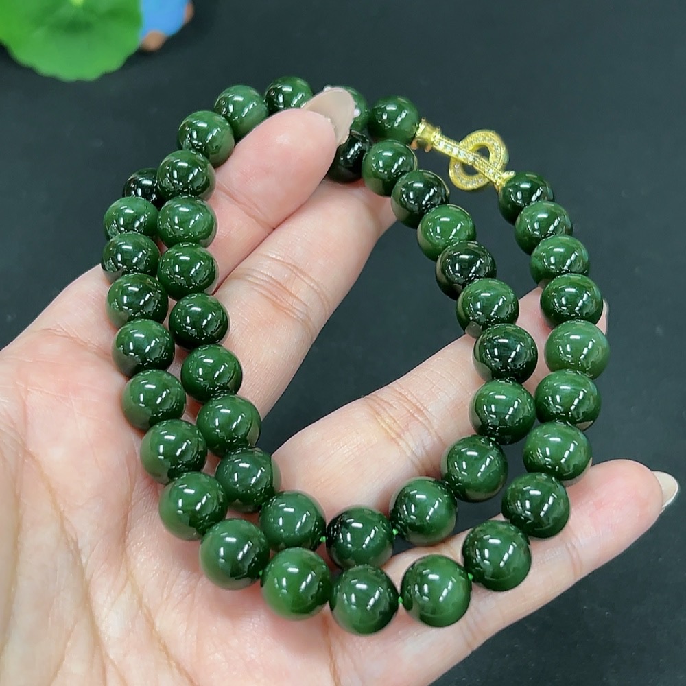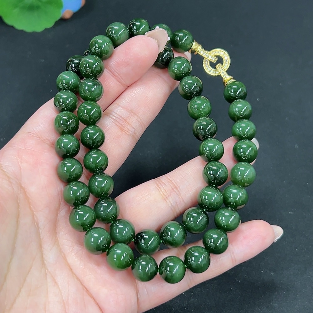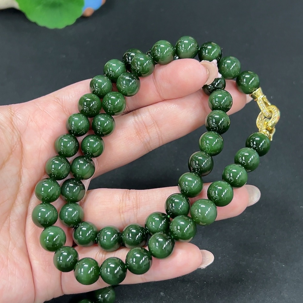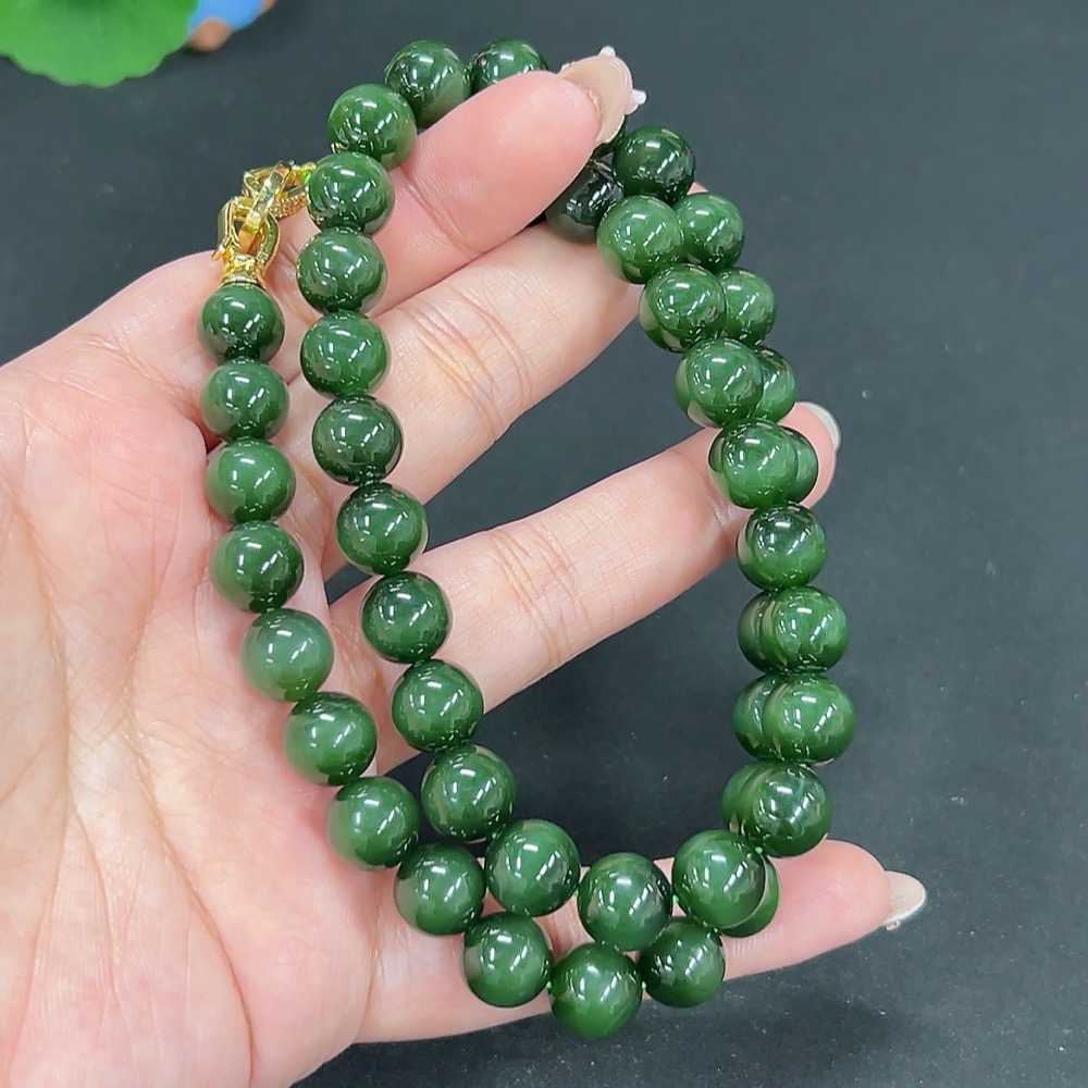 Hetian Jade Jasper Bead Necklace Approx. 9.5mm Total Weight About 77.3g Non-Gold Containing Other Mineral Components