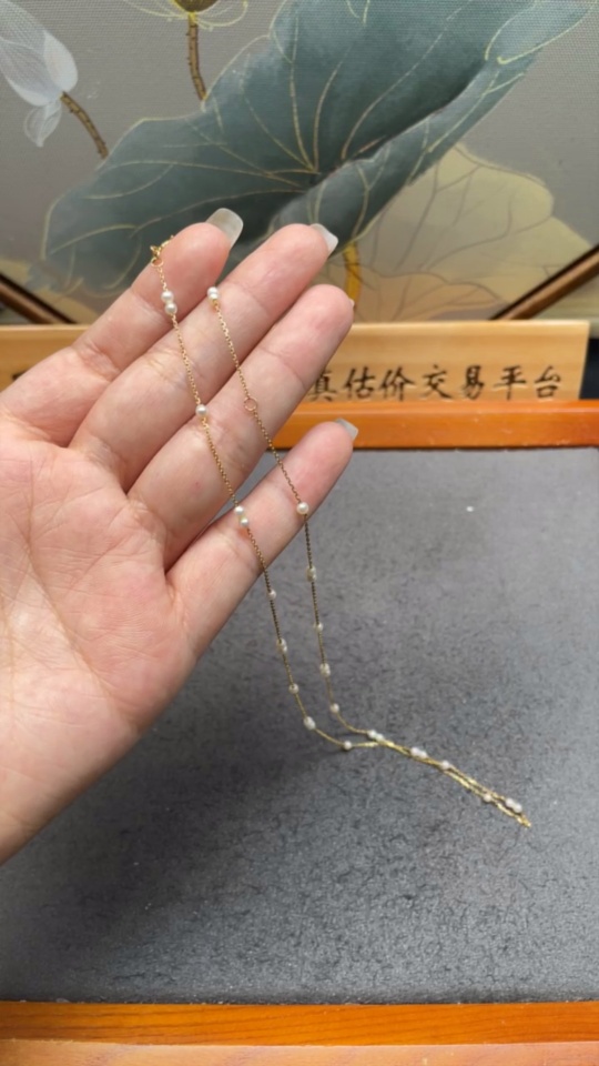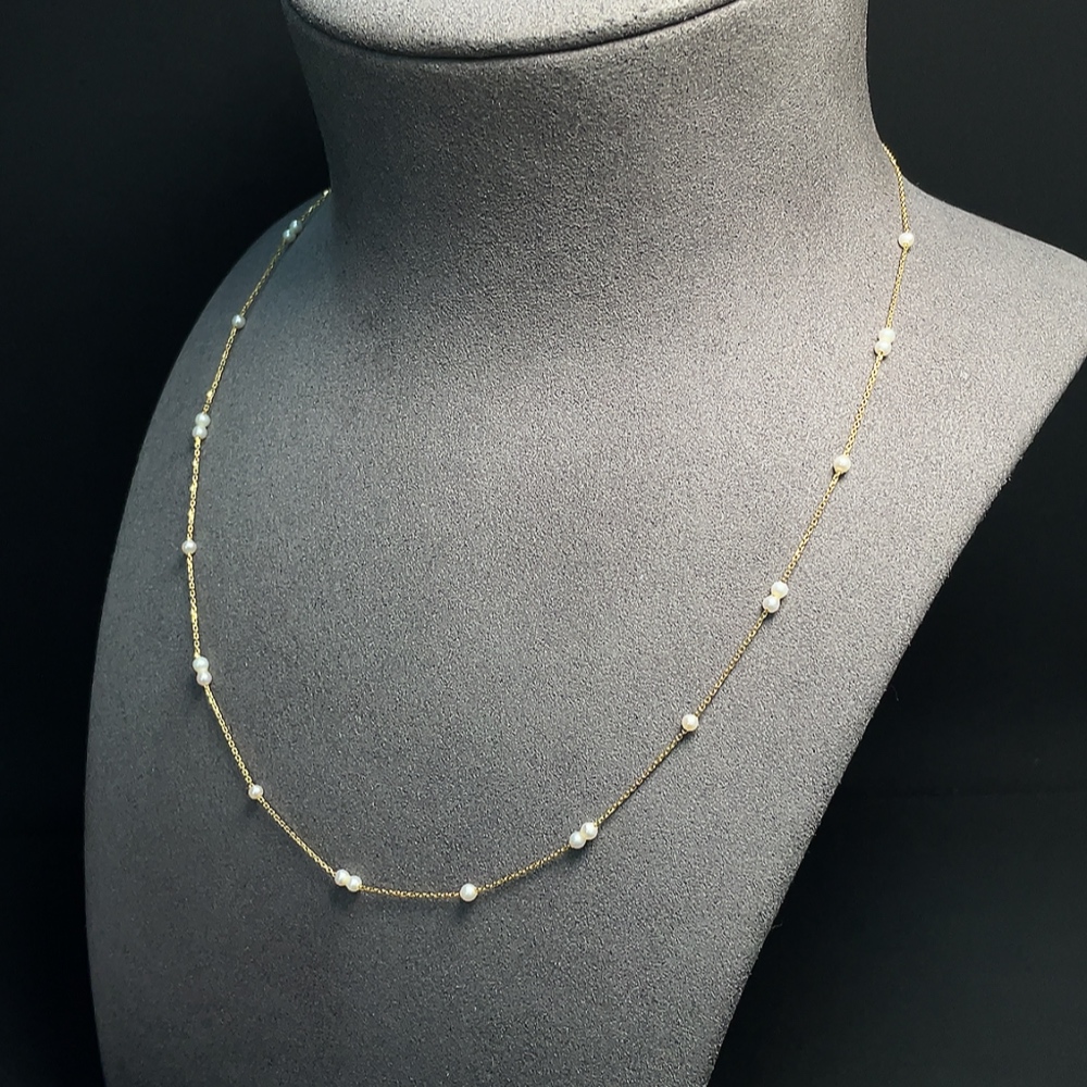 18k pearl bead chain, total weight approx. 1.82g, bead size about 2.5mm