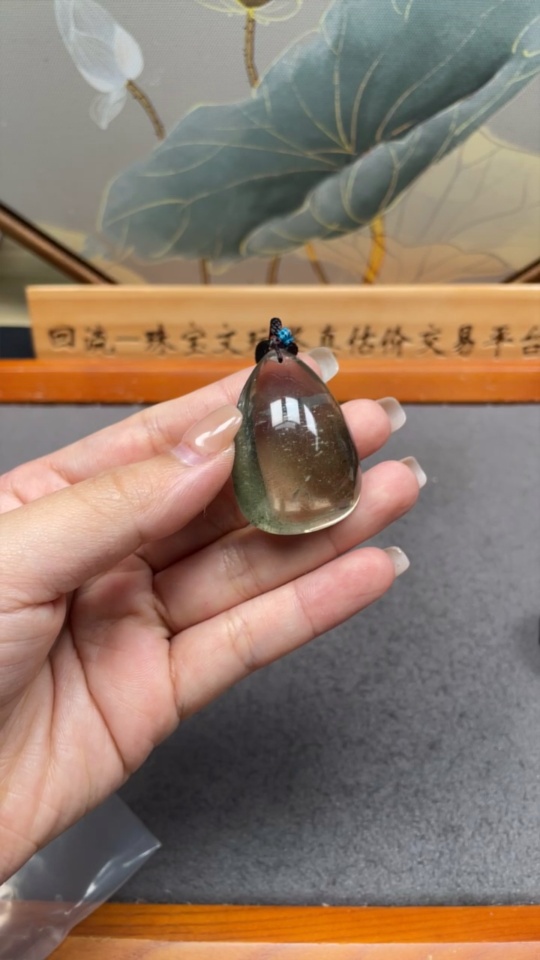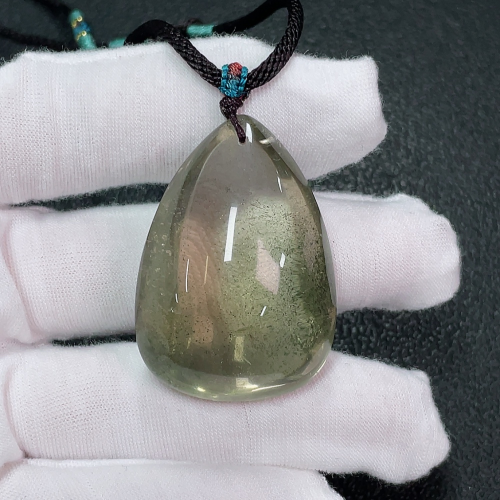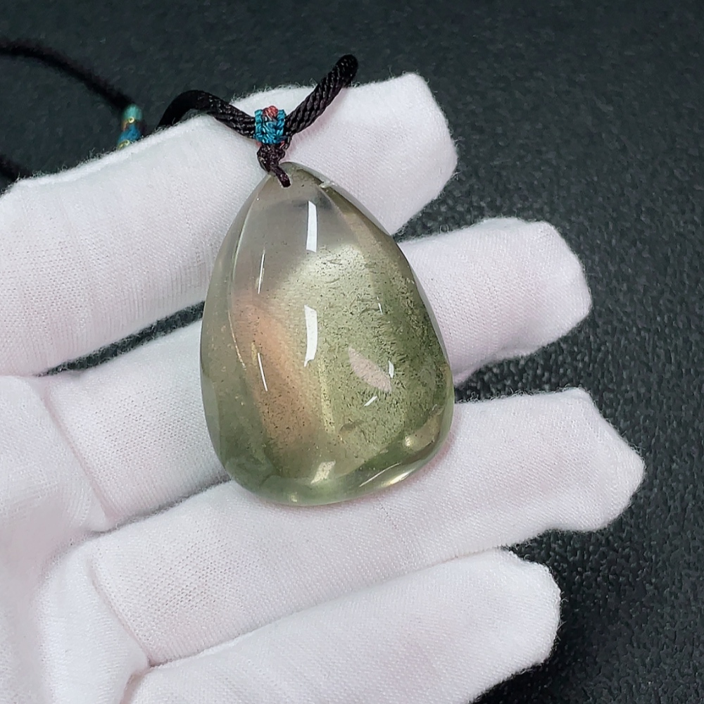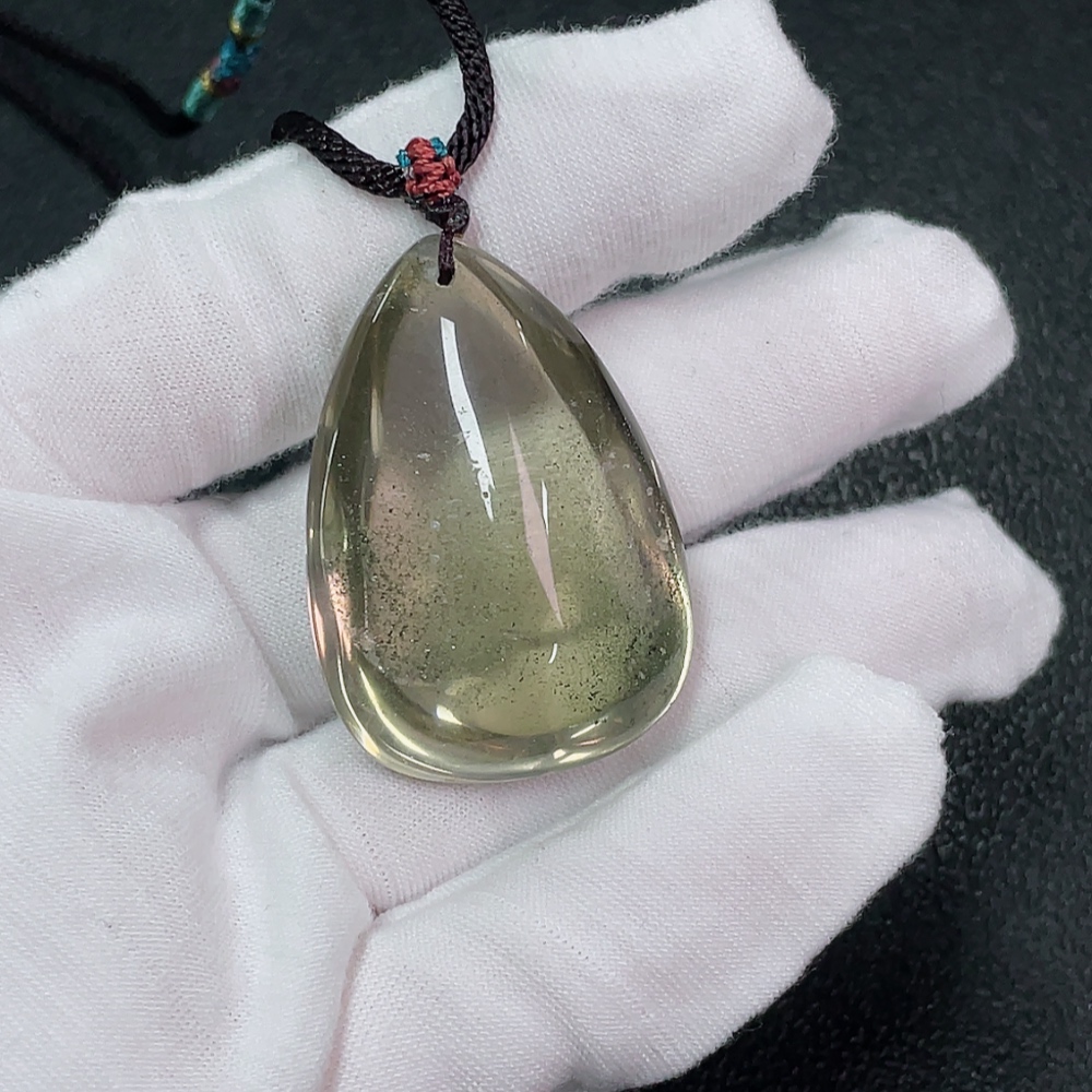 Crystal Pendant with Visible Organic Matter, Non-Metal, Total Weight Approx. 28.94g, Including Rope