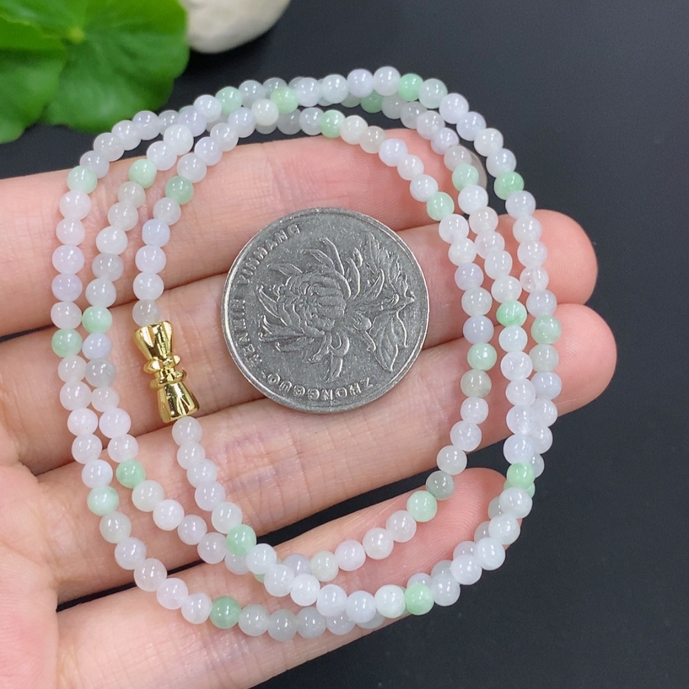 Jadeite Bead Necklace Non-Gold Total Weight Approx. 12.1g Size About 3.3mm