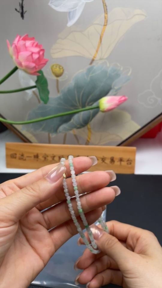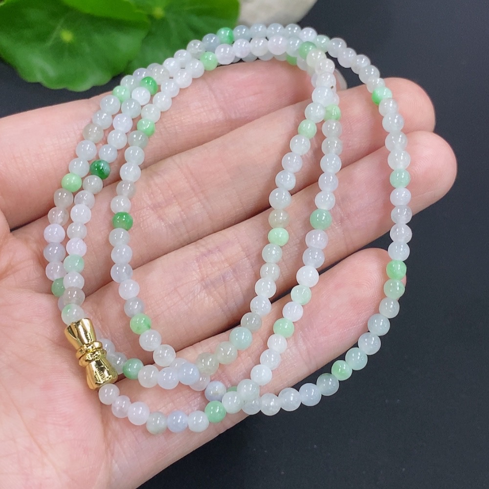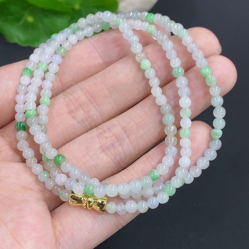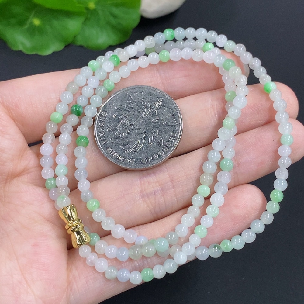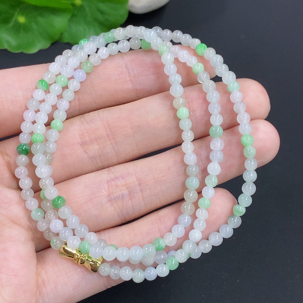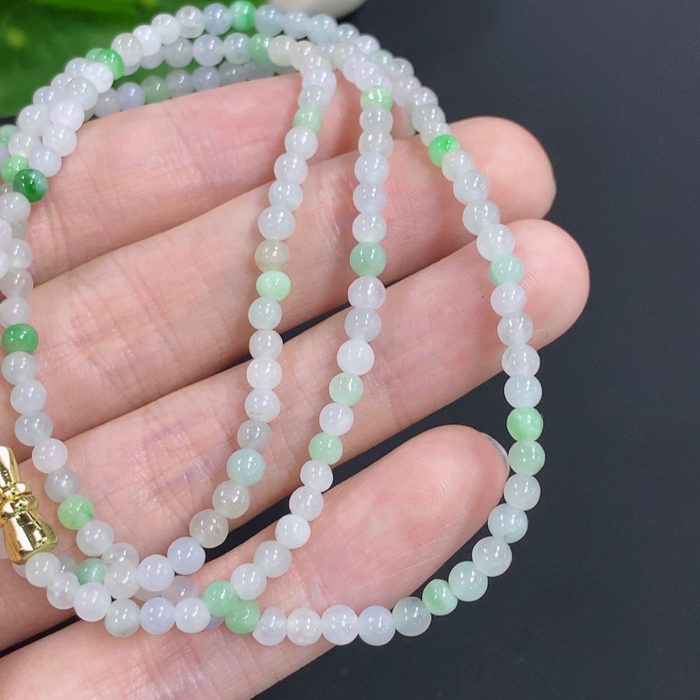 Jadeite Bead Necklace Non-Gold Total Weight Approx.12.4g Size Approx.3.4mm