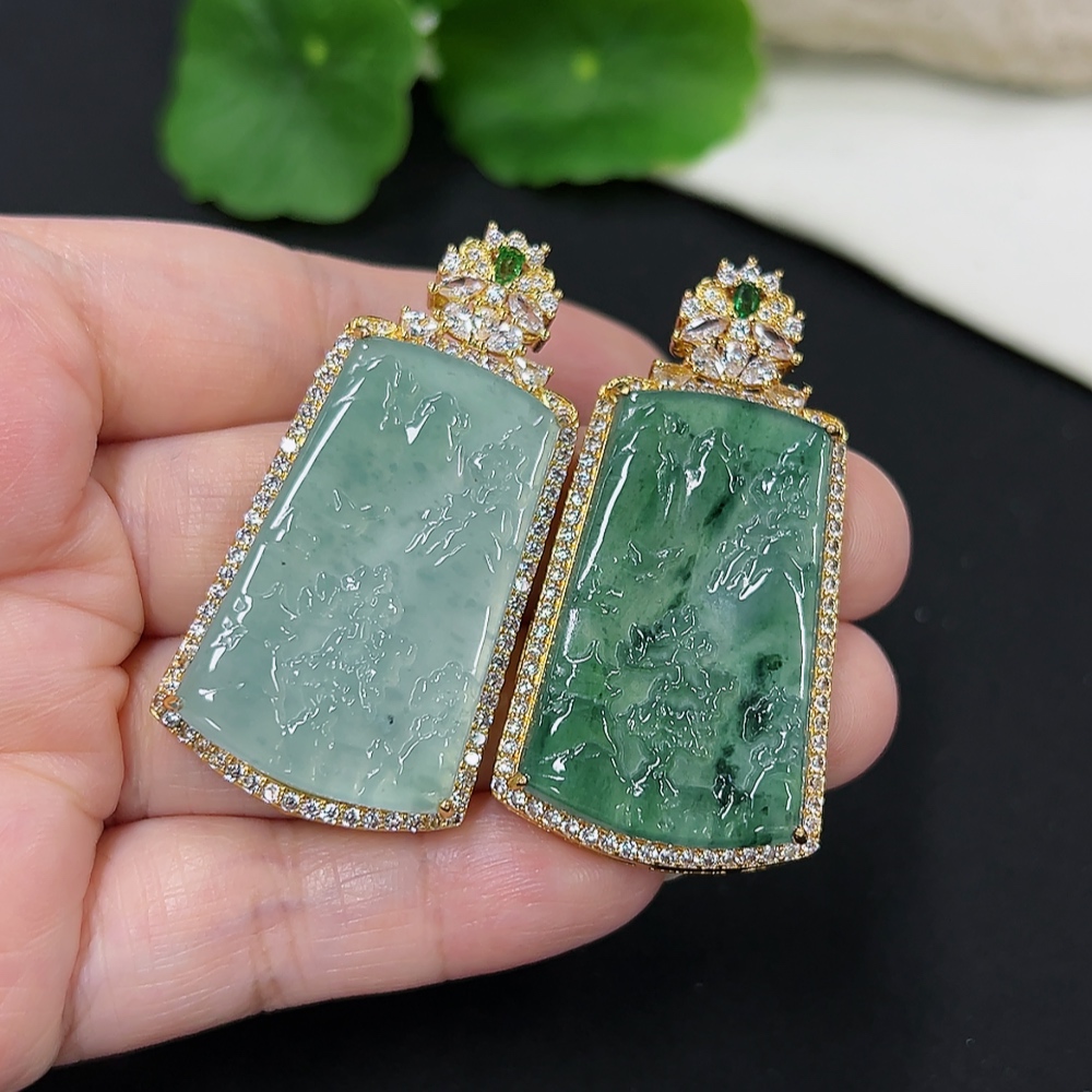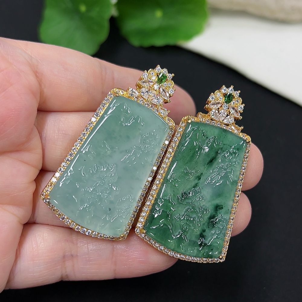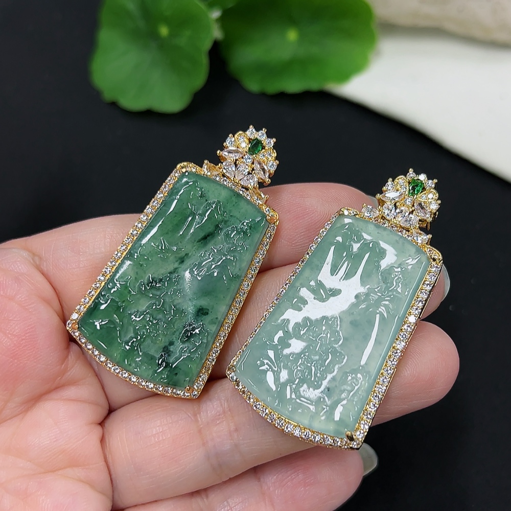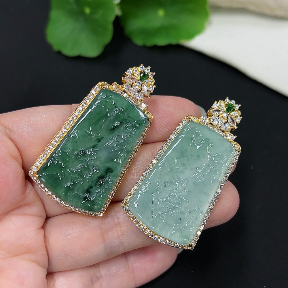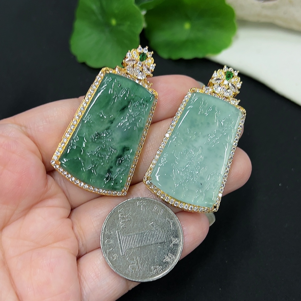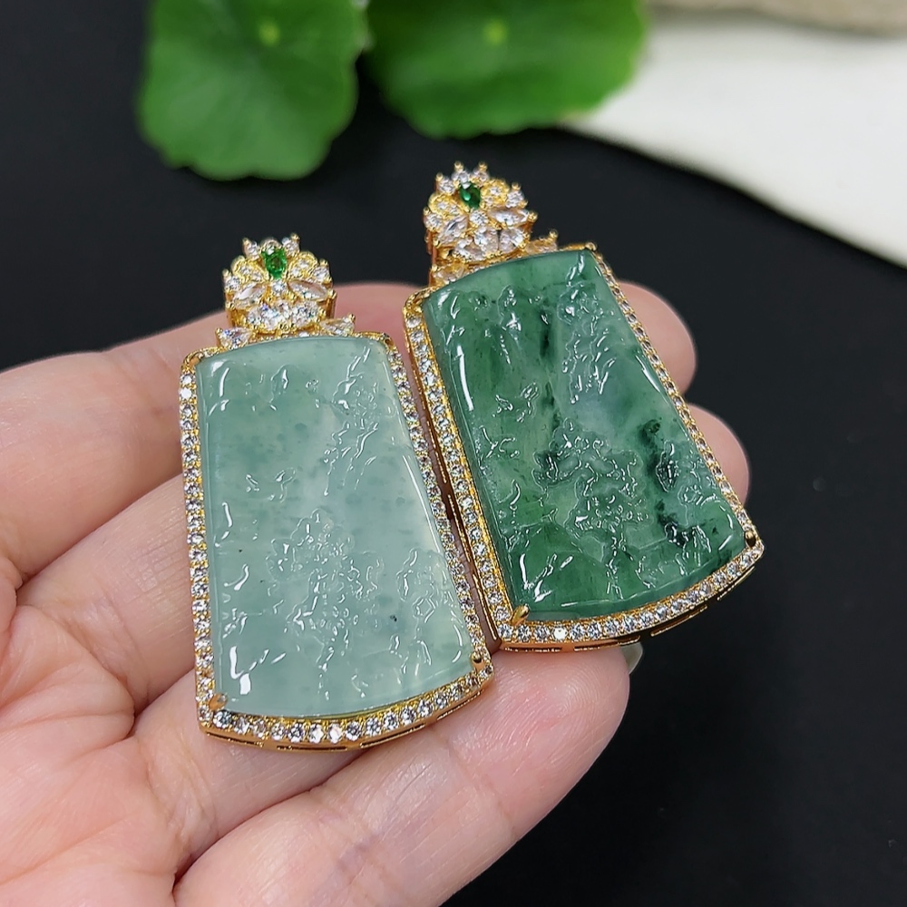 Jadeite Inlaid Pendants Sell as a Lot Total Weight Approx. 16.7g (Non-Gold Inlaid) (Chain Weight Excluded)