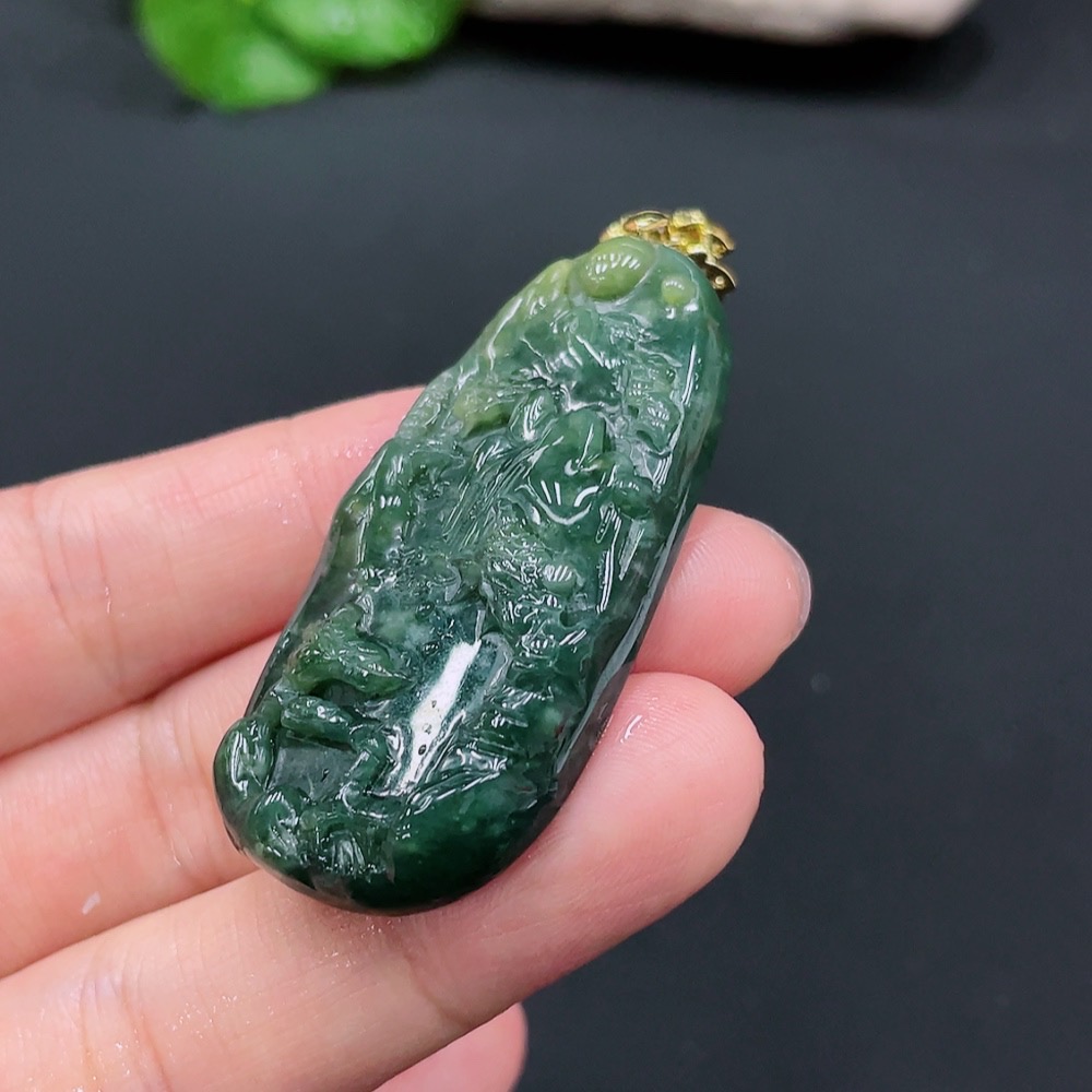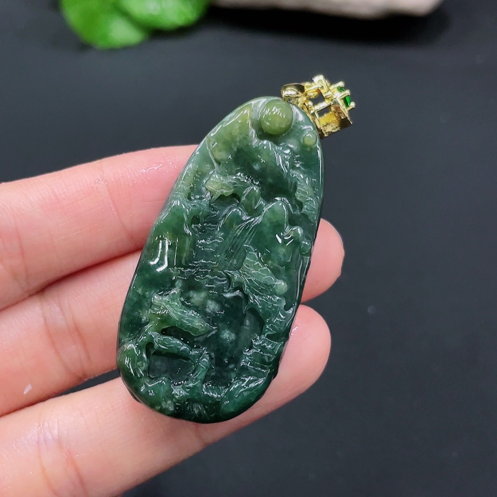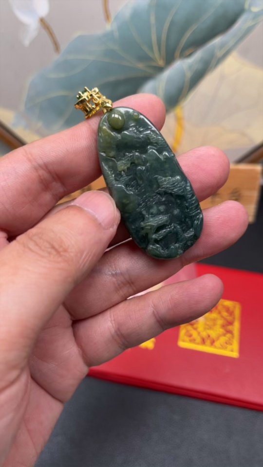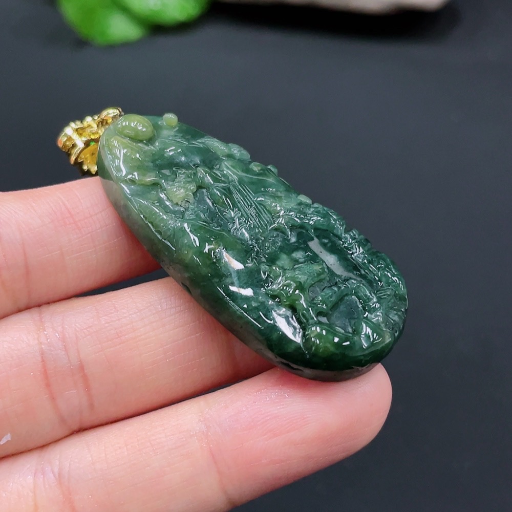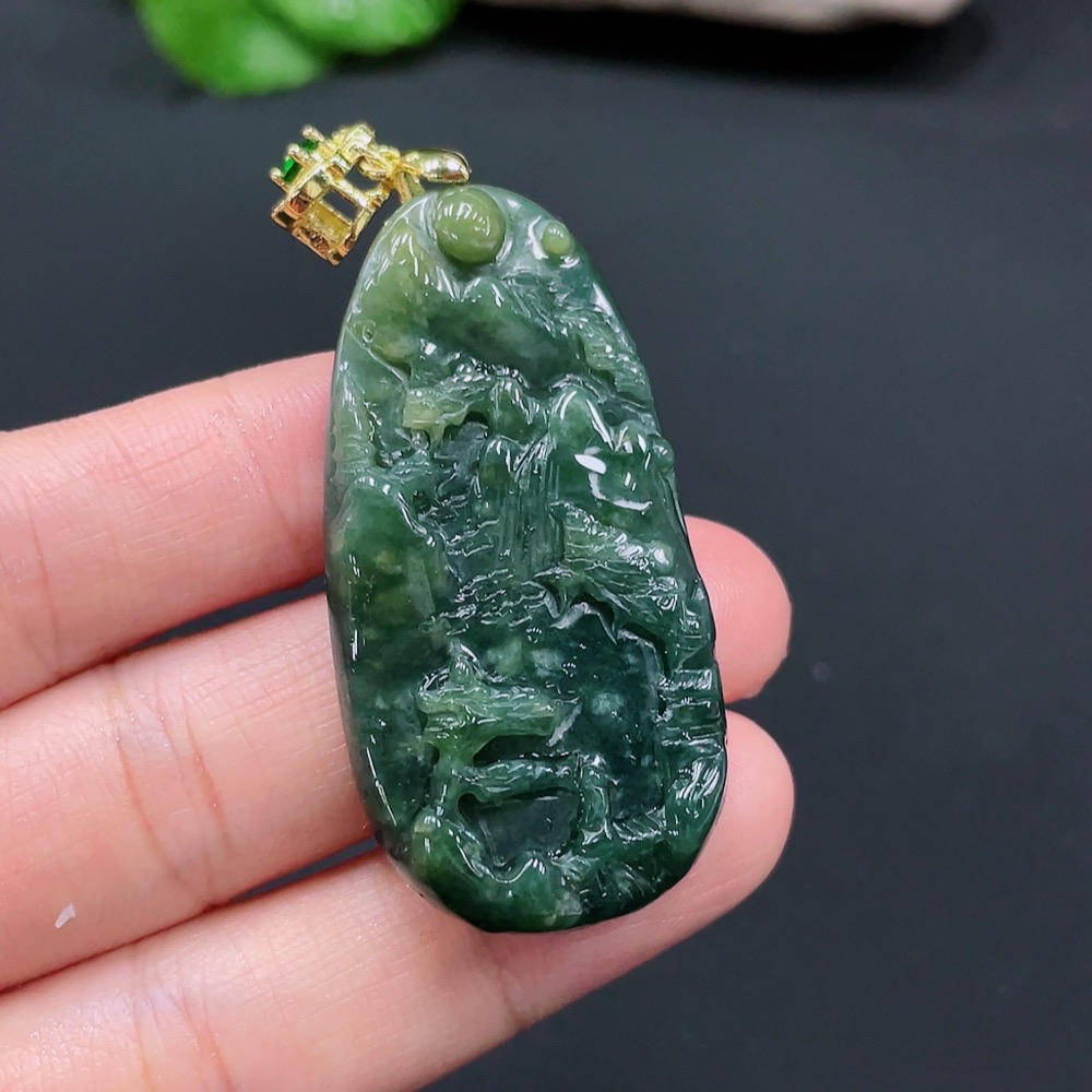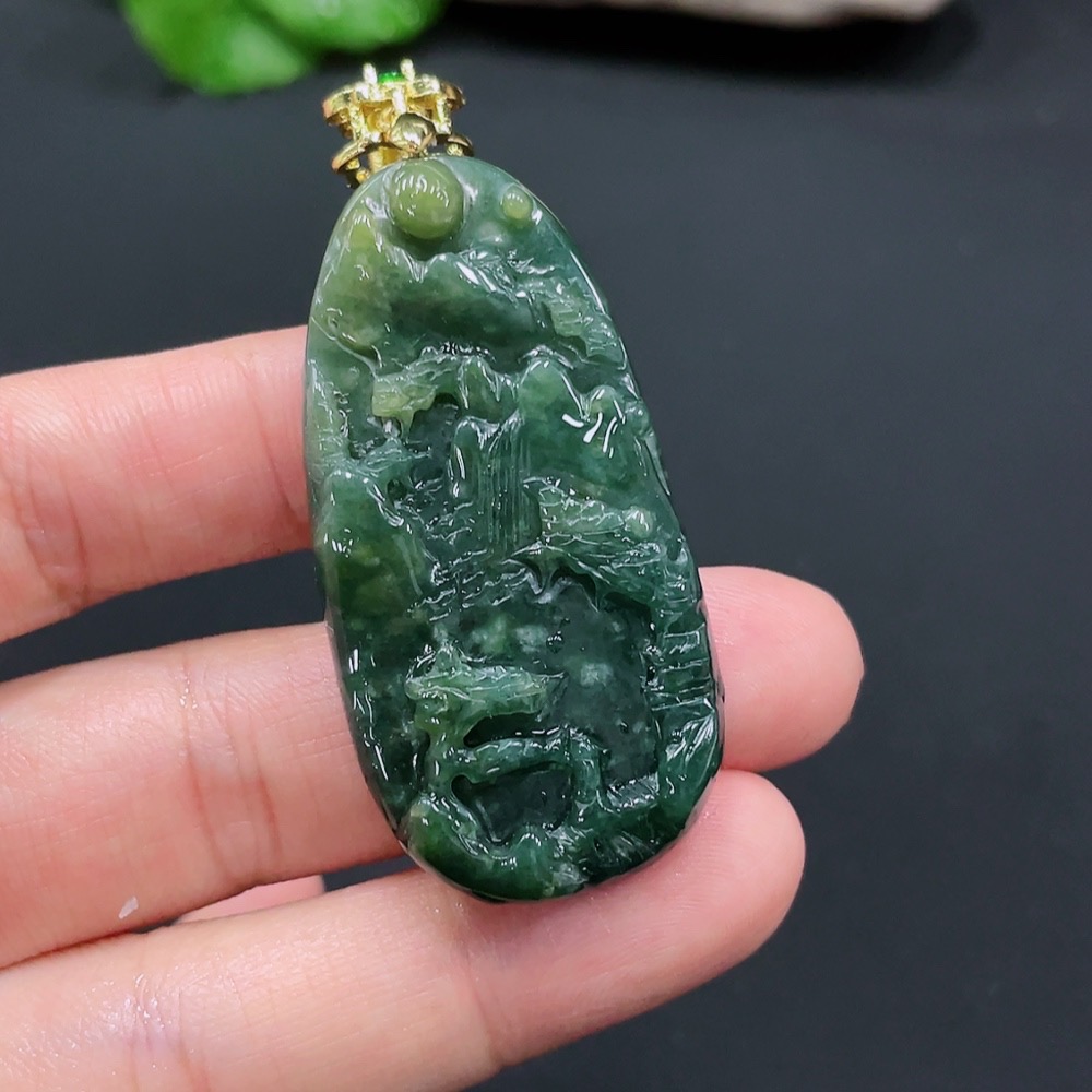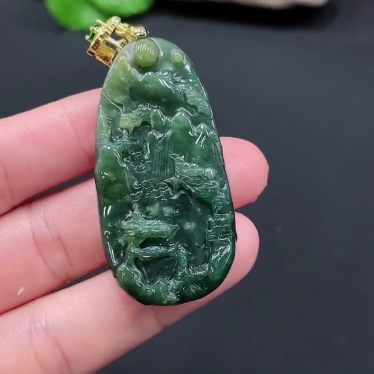 Jadeite Landscape Pendant Non-Gold Inlaid Total Weight Approx. 23.63g With Collection Certificate