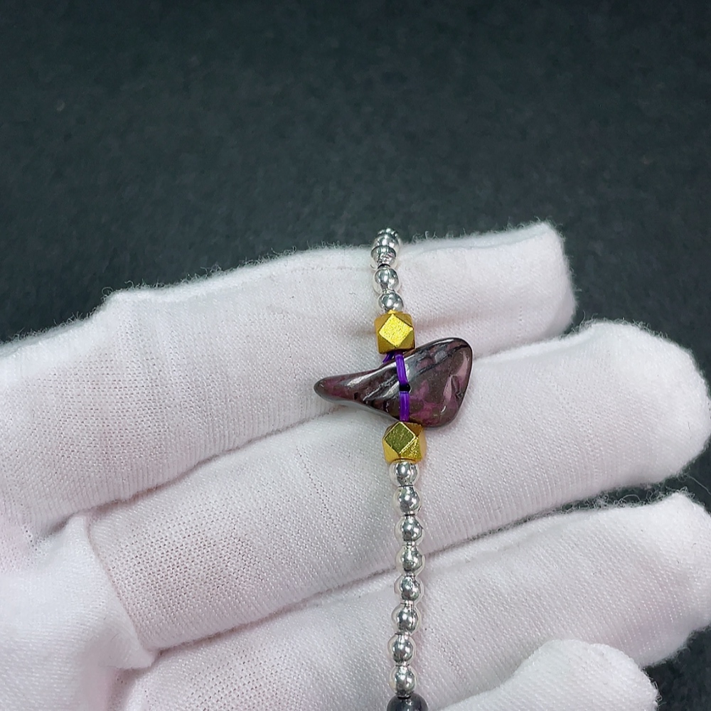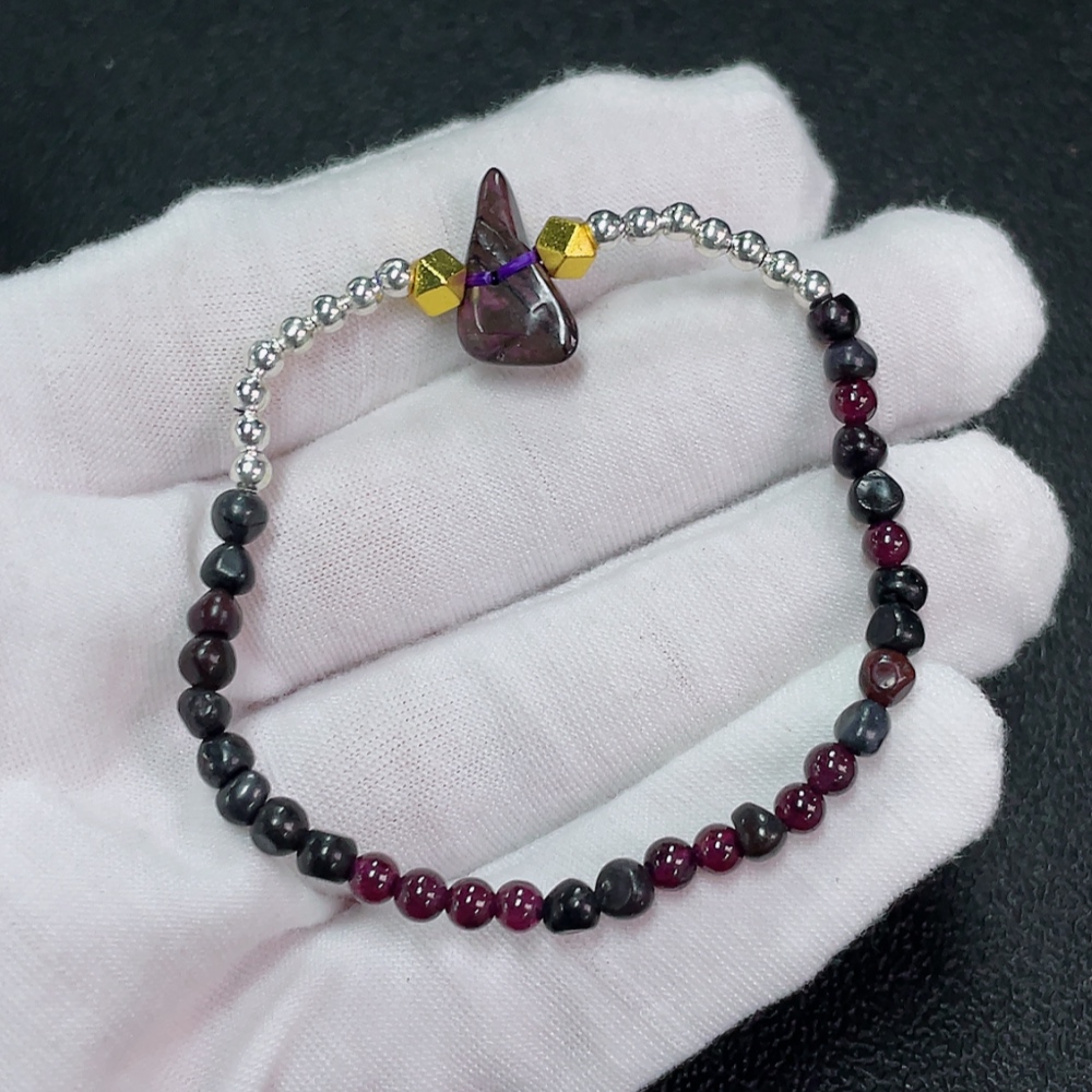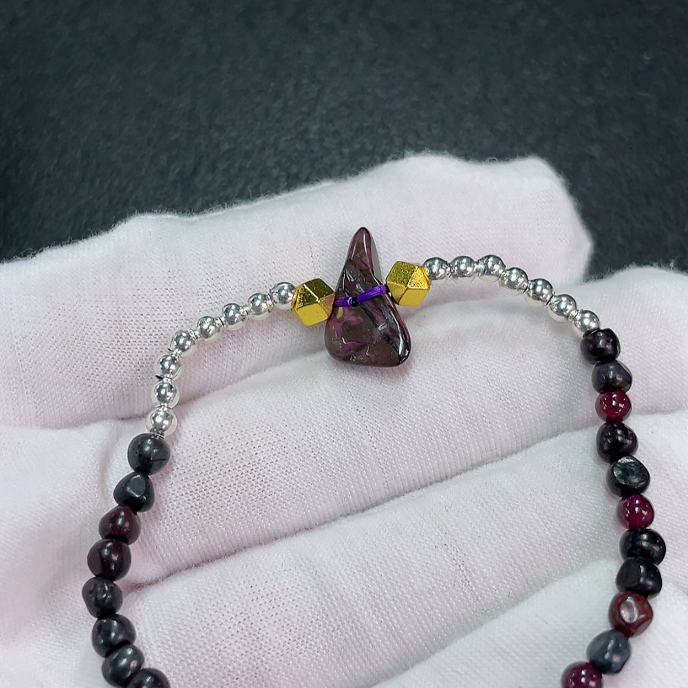 Sugilite Bracelet with Garnet, Purple Only, Contains Other Mineral Components, Visible Organic Matter, Non-Metallic, Total Weight Approximately 5.92g, Bead Size Around 4.1mm (Included Minerals)