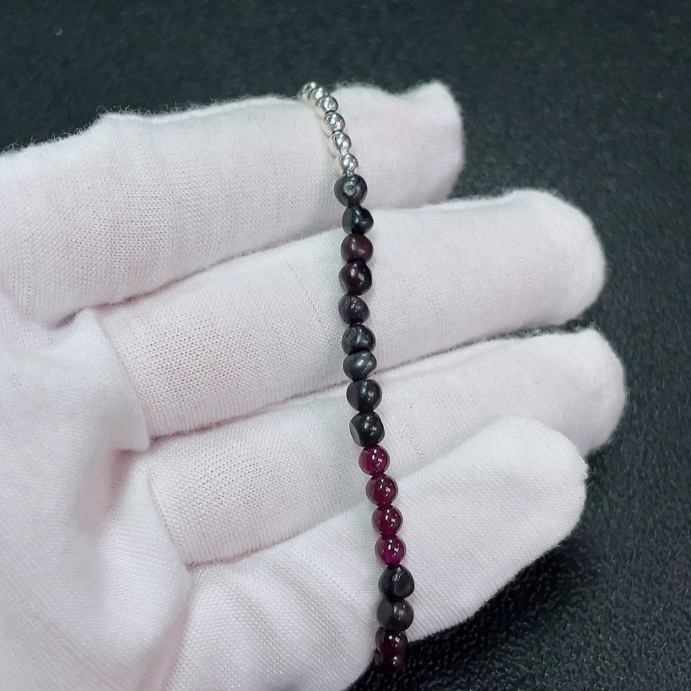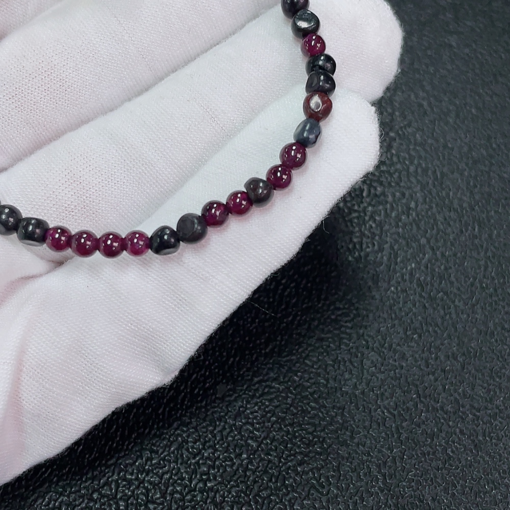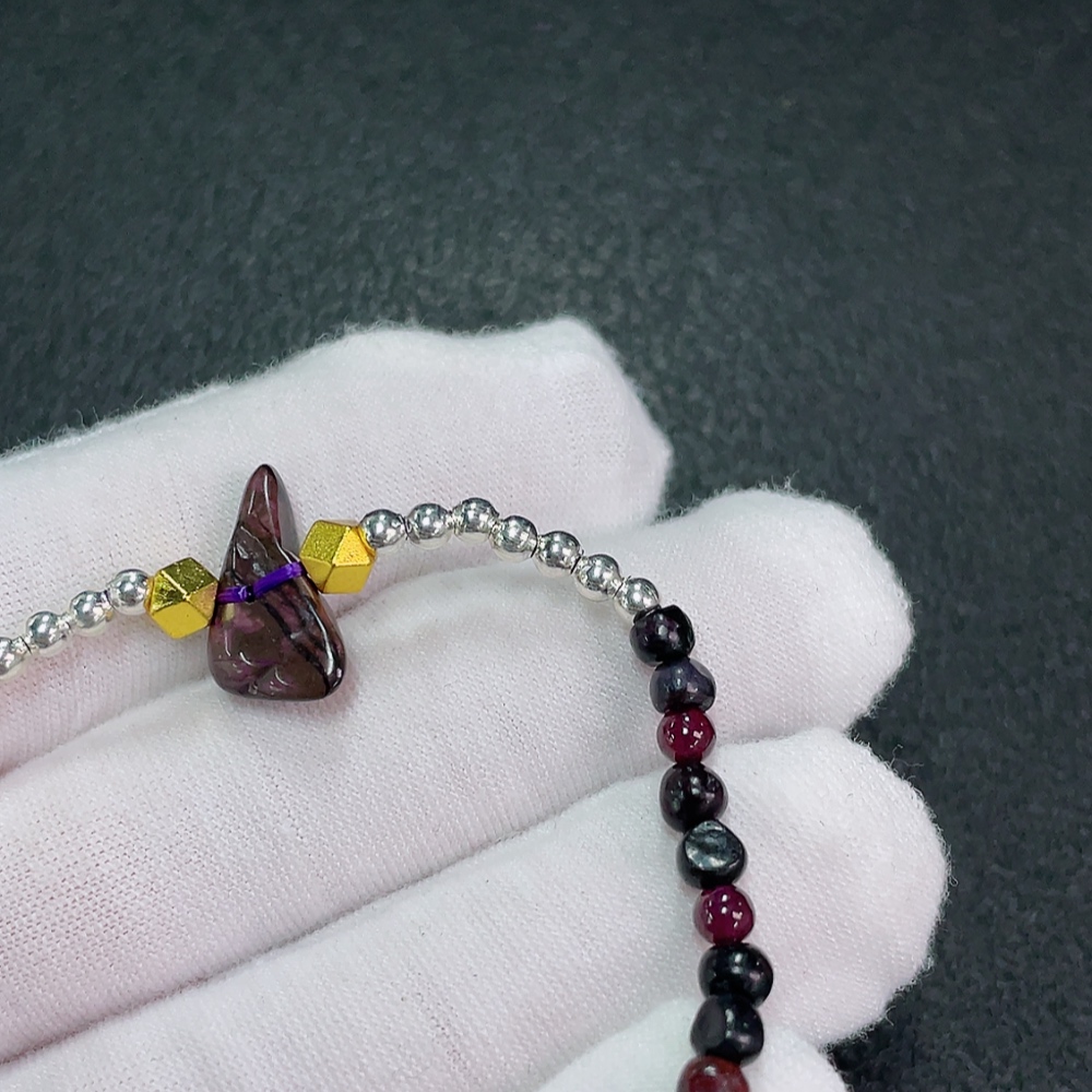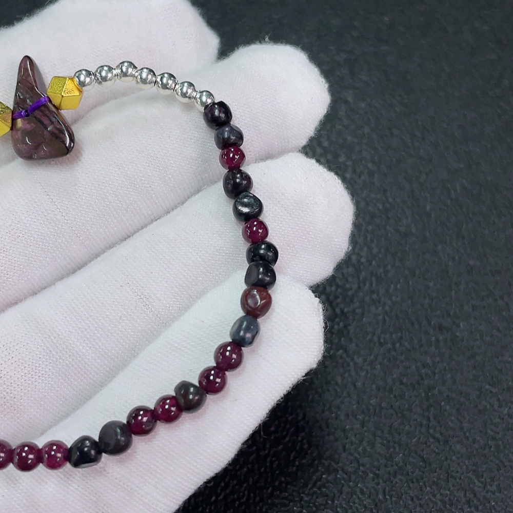 Sugilite Bracelet with Garnet, Purple Only, Contains Other Mineral Components, Visible Organic Matter, Non-Metallic, Total Weight Approximately 5.92g, Bead Size Around 4.1mm (Included Minerals)