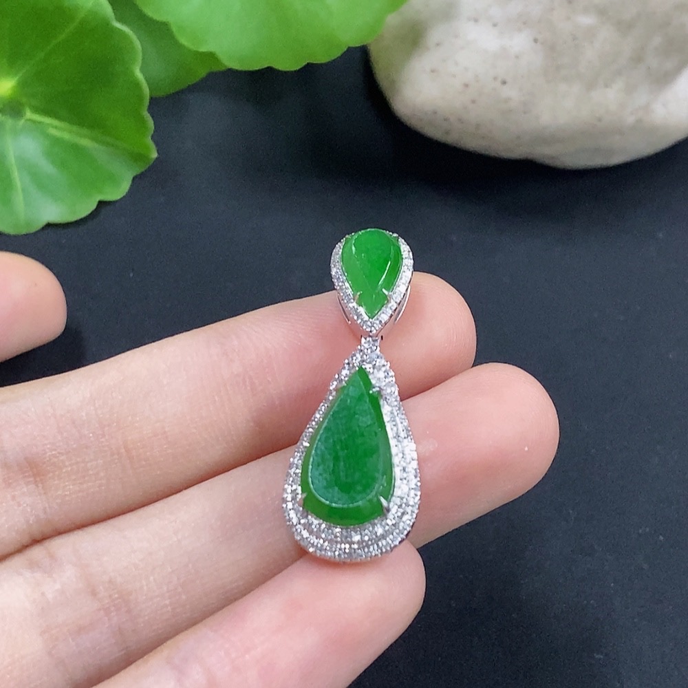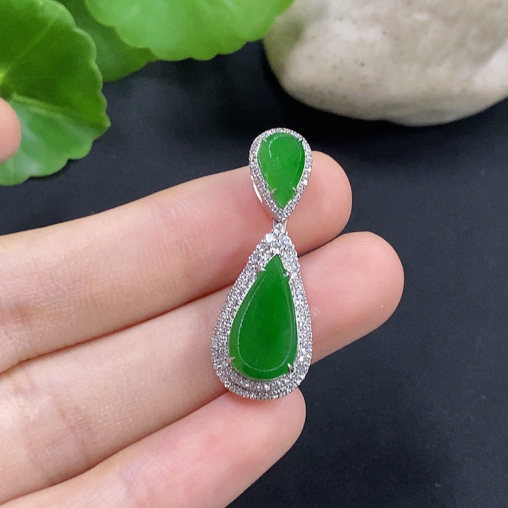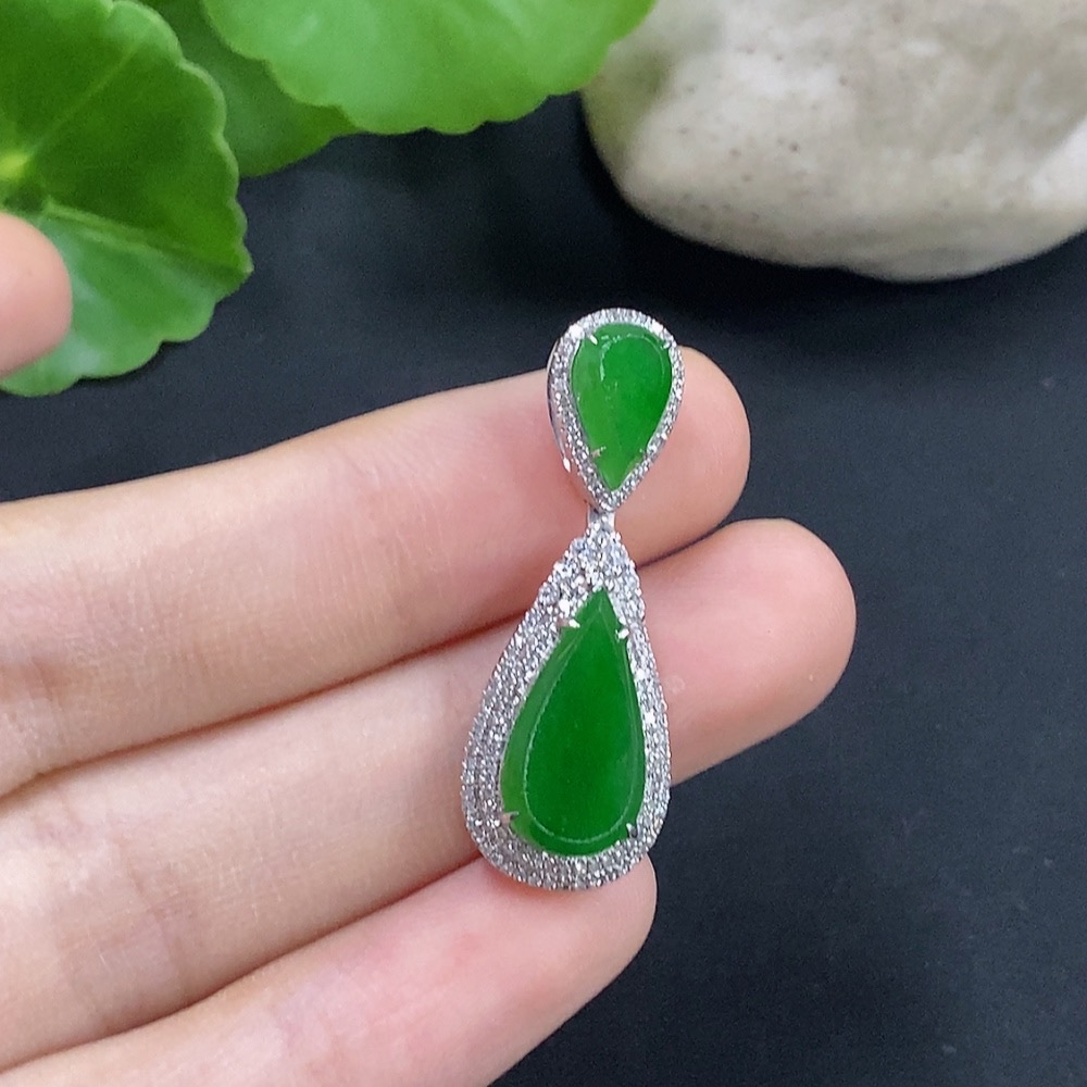 Jadeite Water Drop Pendant with 18K Gold and Diamond Accents, Total Weight Approximately 4.62g