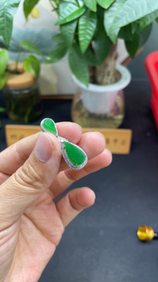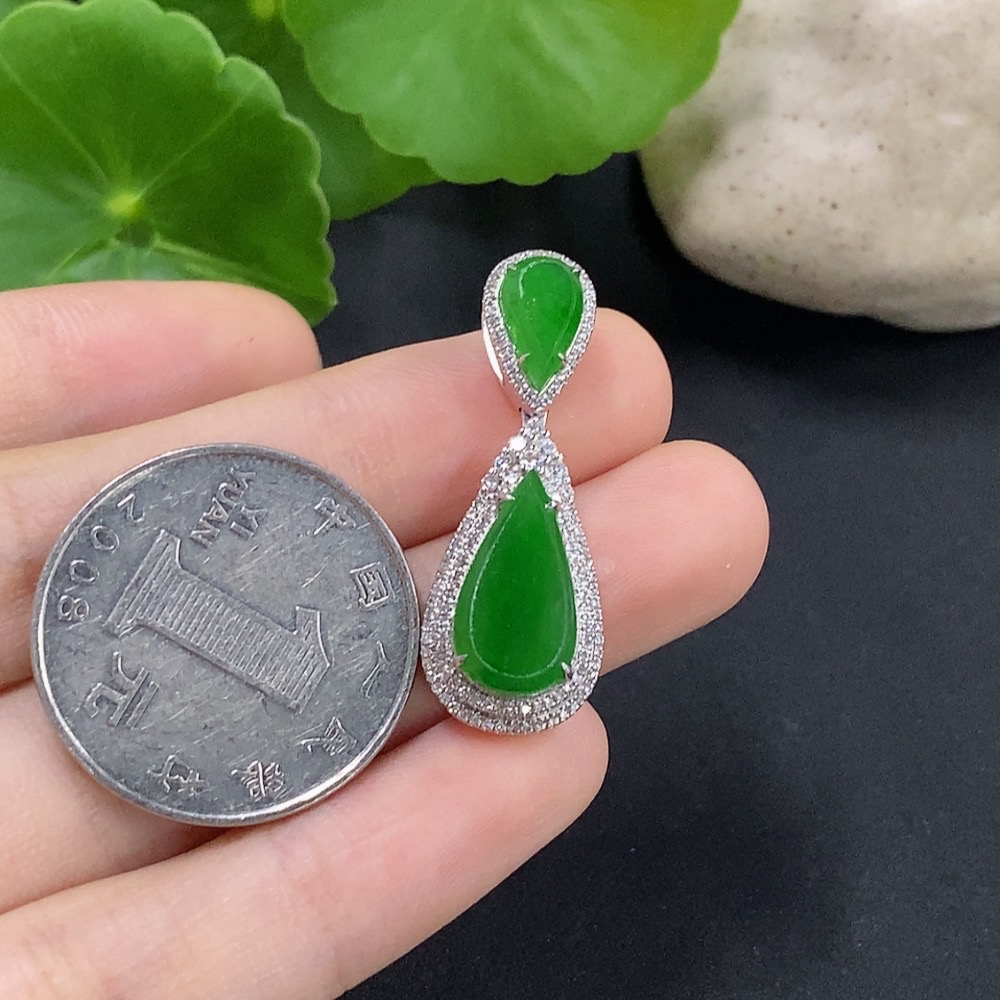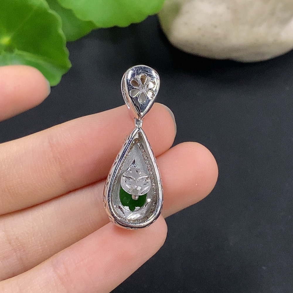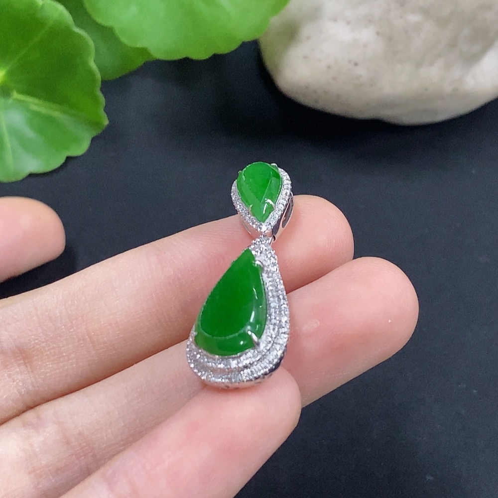 Jadeite Water Drop Pendant with 18K Gold and Diamond Accents, Total Weight Approximately 4.62g