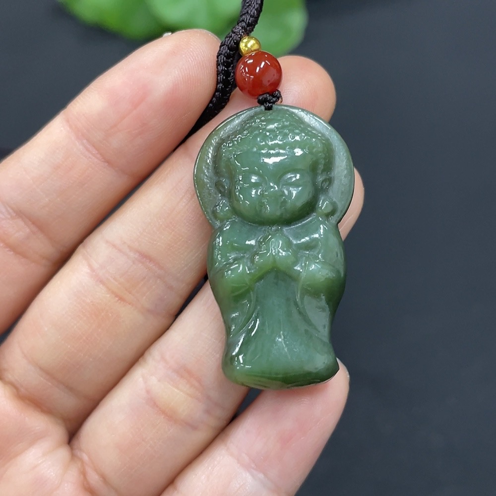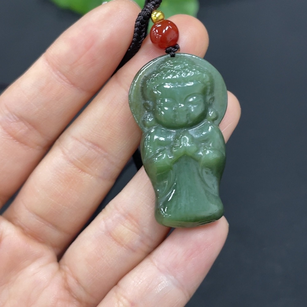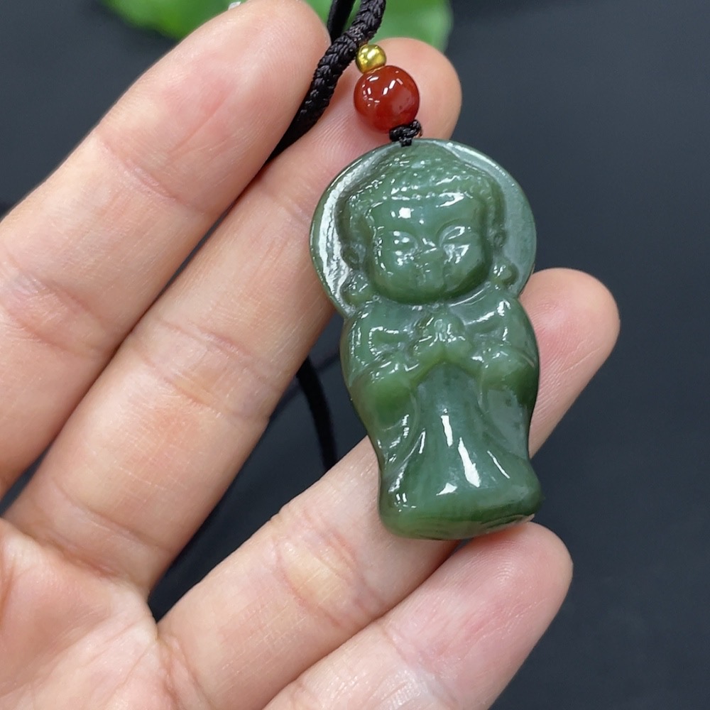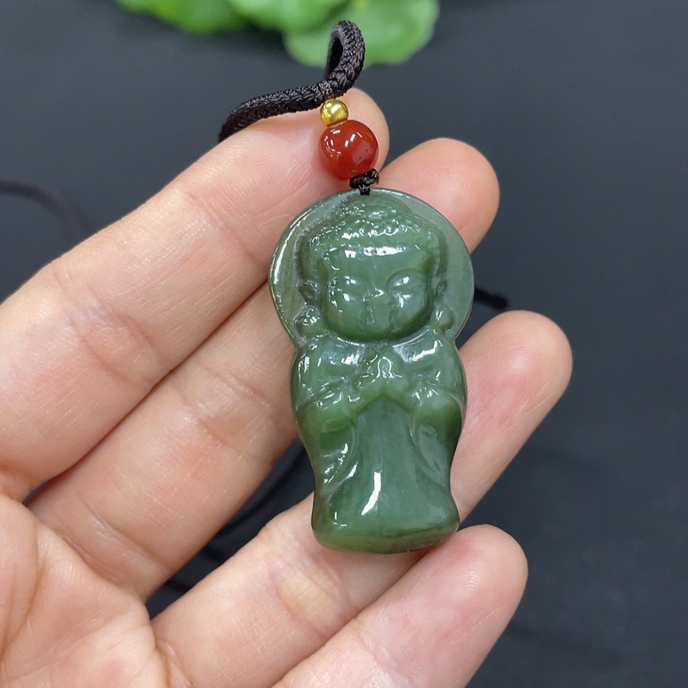 Hetian Jade Pendant Buddha with Non-Hetian Jade Beads Total Weight Approx. (Including Rope) 11.8g