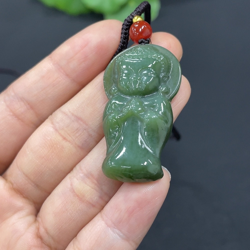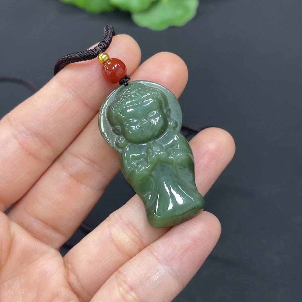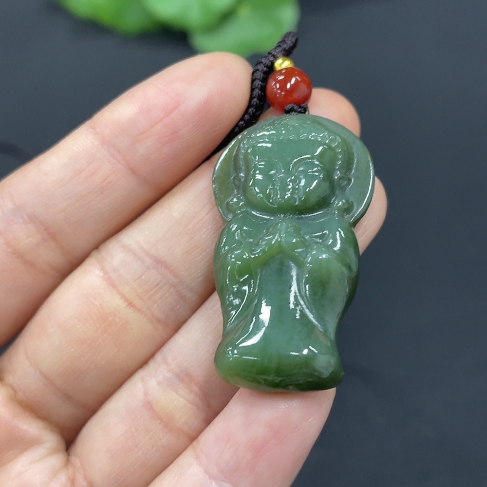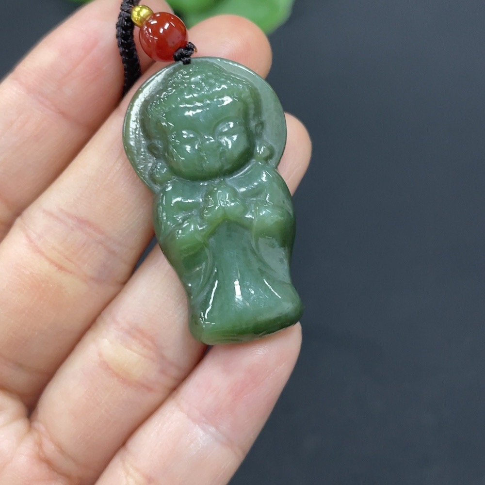 Hetian Jade Pendant Buddha with Non-Hetian Jade Beads Total Weight Approx. (Including Rope) 11.8g