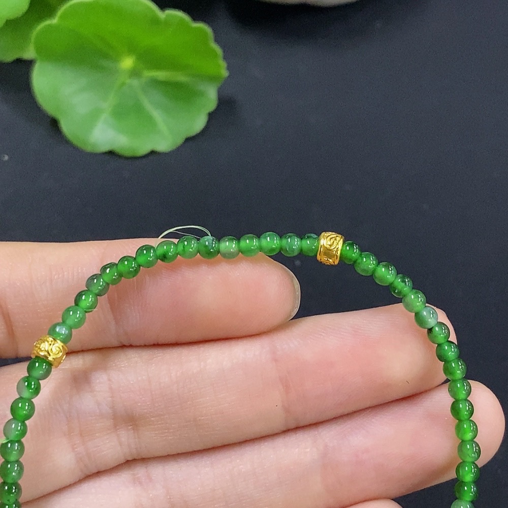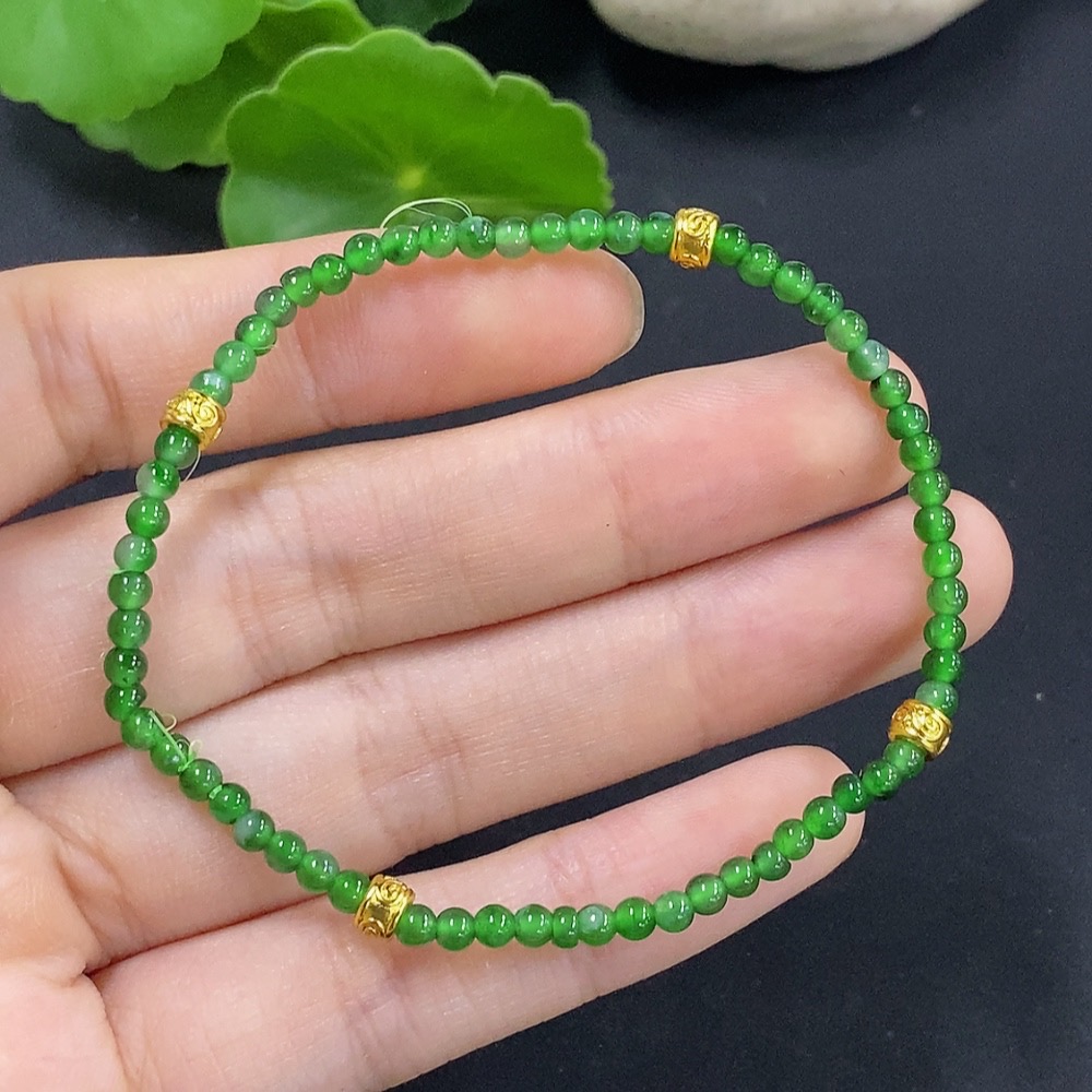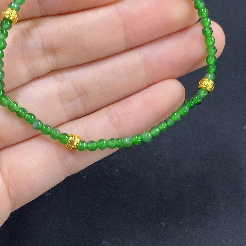 Trezaar - Jadeite Bracelet Approx. 2.9mm Beads Total Weight Approx. 3.4g (Non-Gold Inlaid)