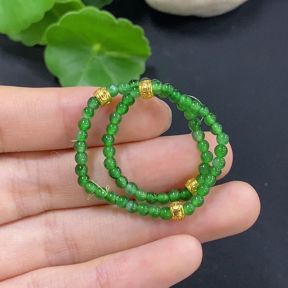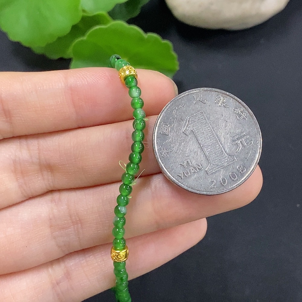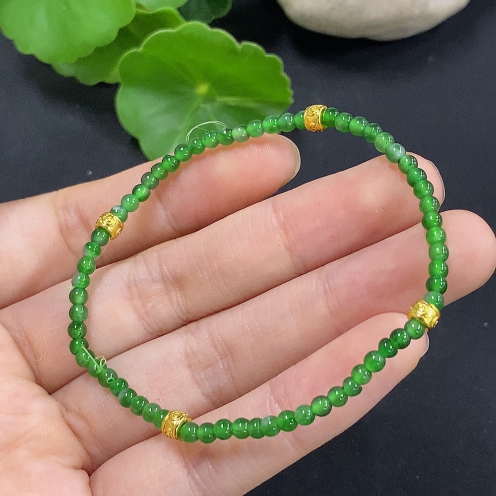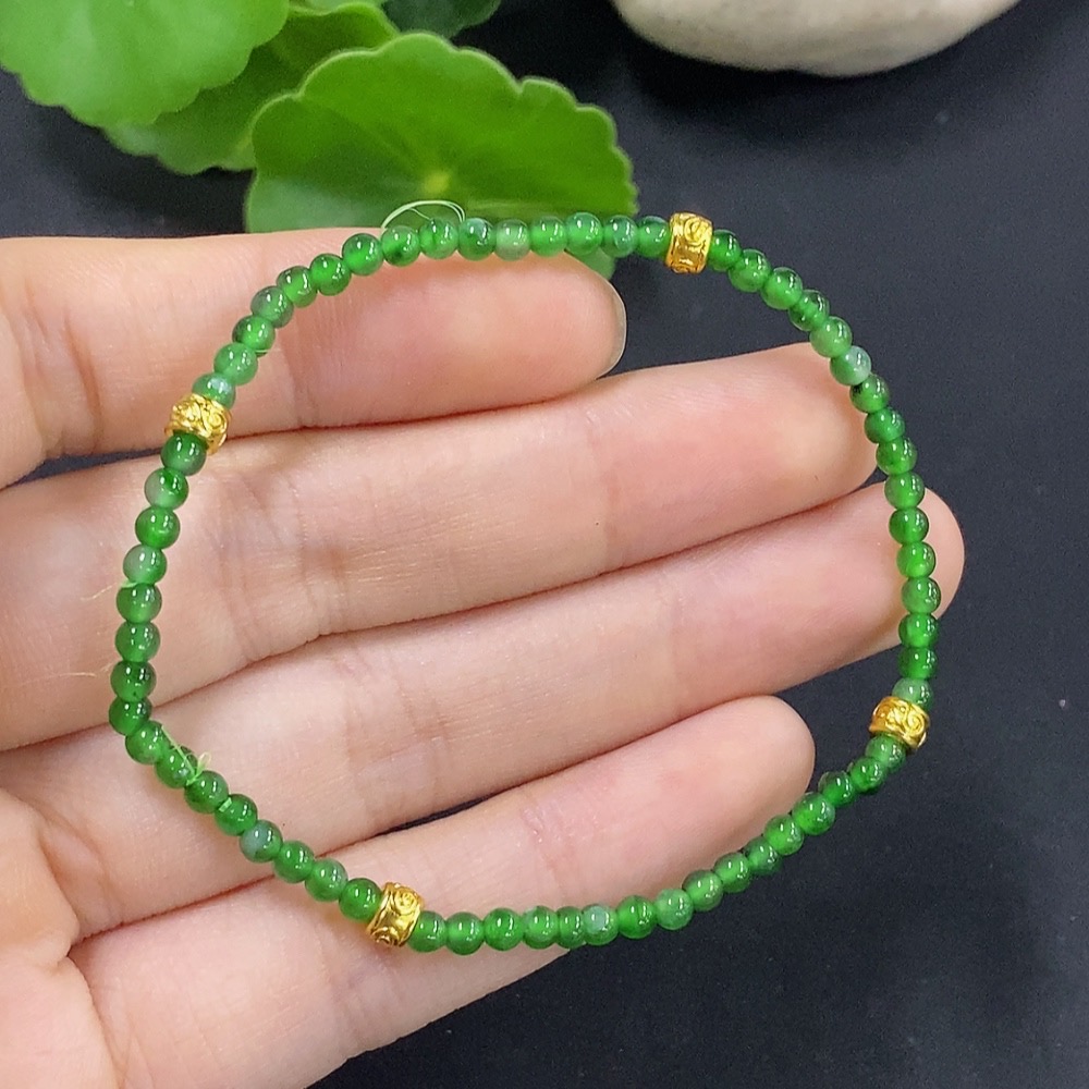 Trezaar - Jadeite Bracelet Approx. 2.9mm Beads Total Weight Approx. 3.4g (Non-Gold Inlaid)