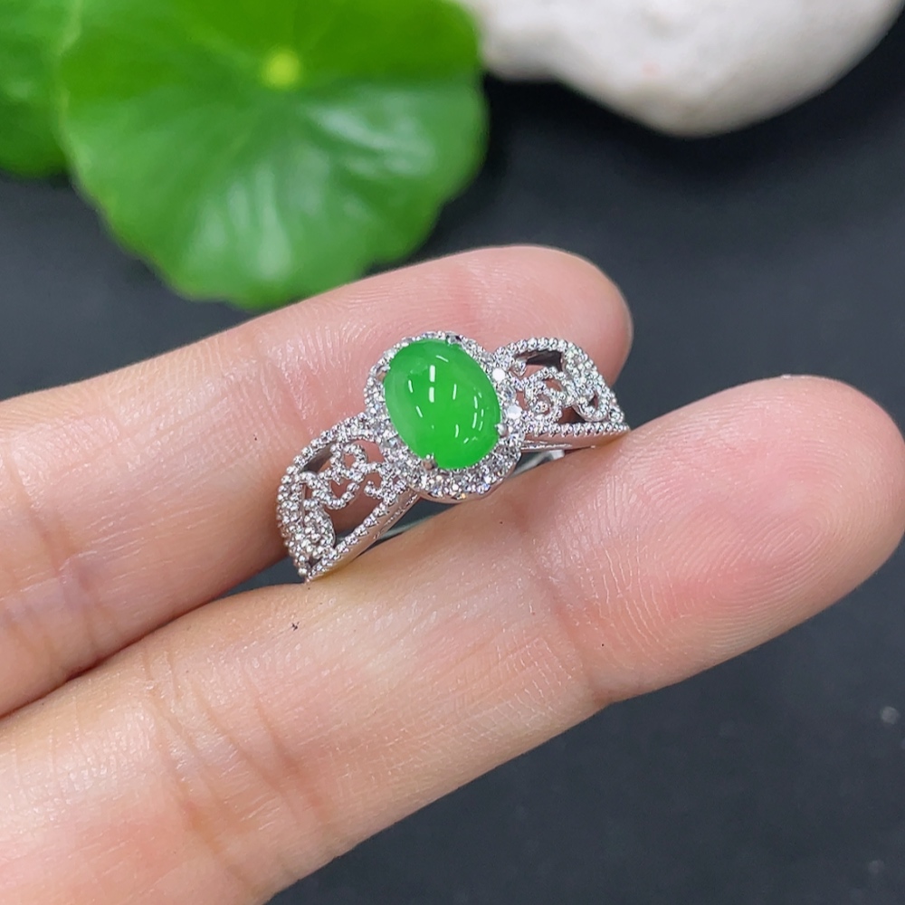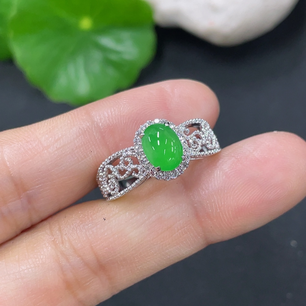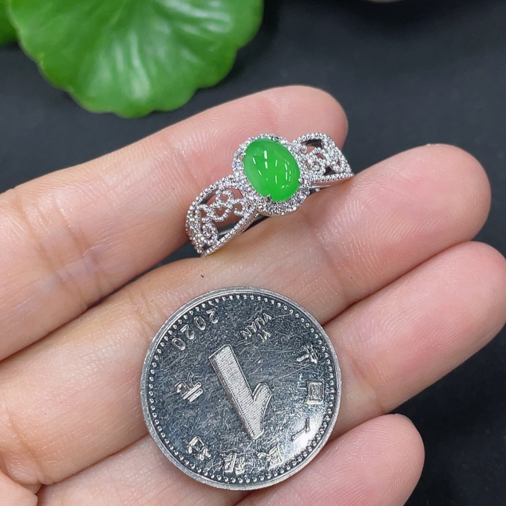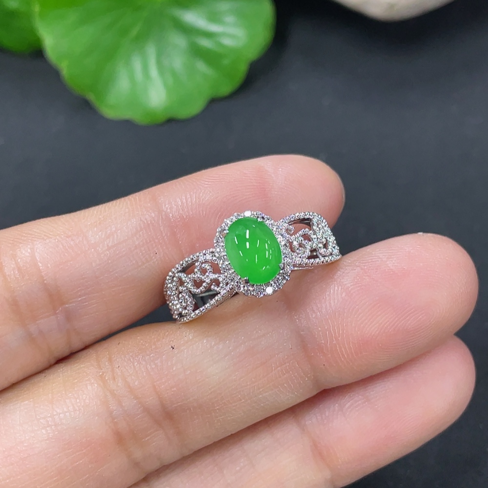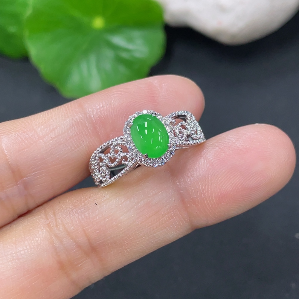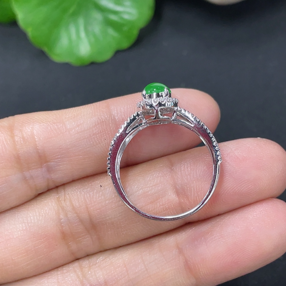 Jadeite Cabochon Inlaid Ring 18k Gold Setting Size 14 Total Weight Approx. 3.27g with Diamond Accents