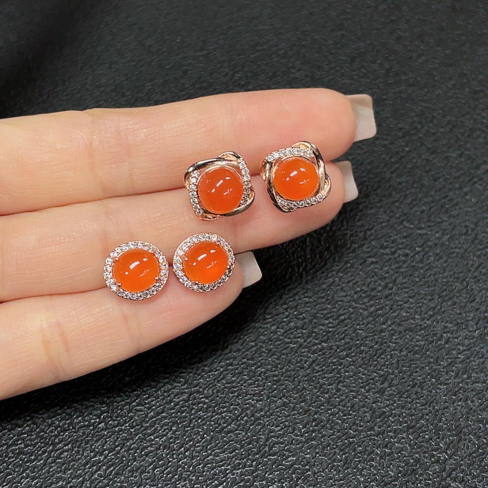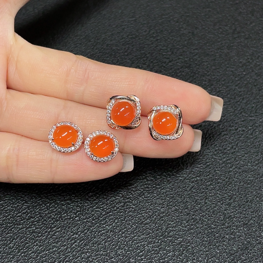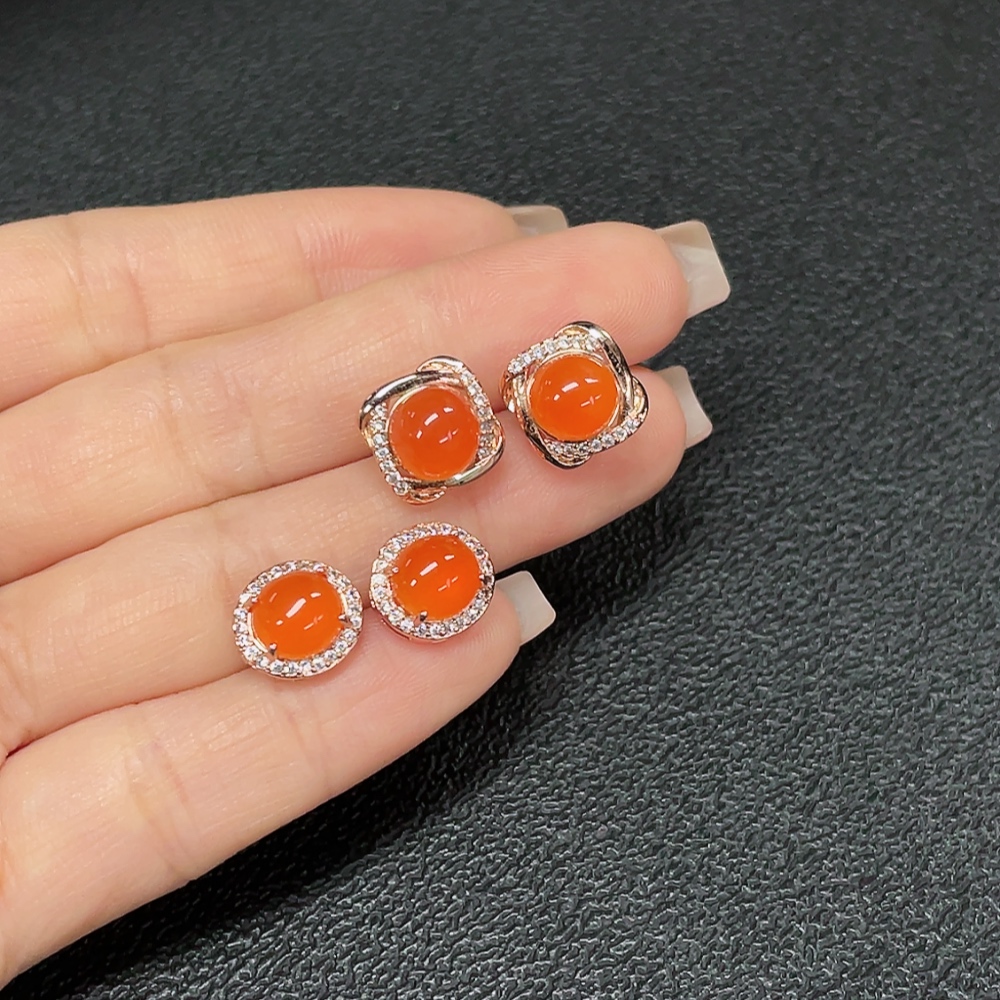 Red Agate Earrings (Non-Gold), Total Weight Approx. 5.32g, Sell as a Lot