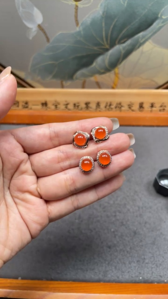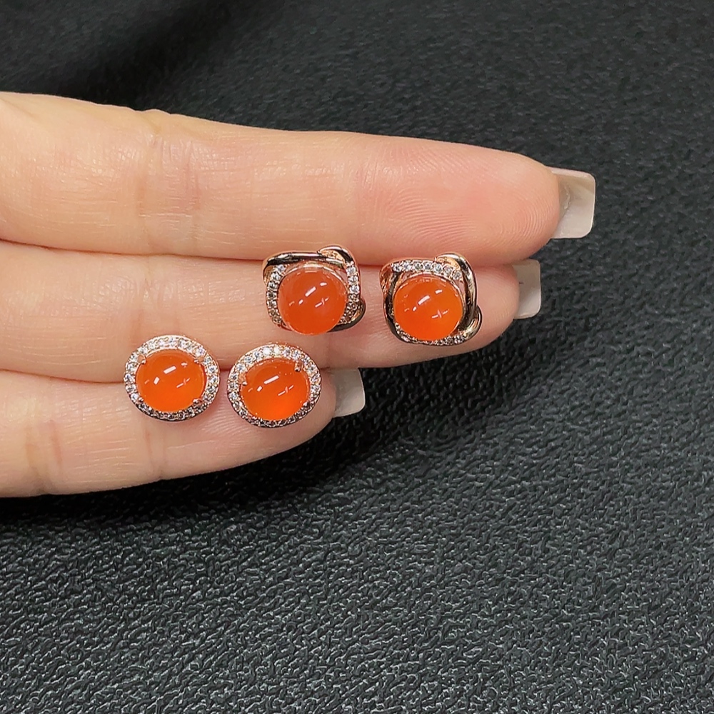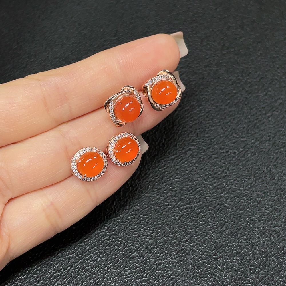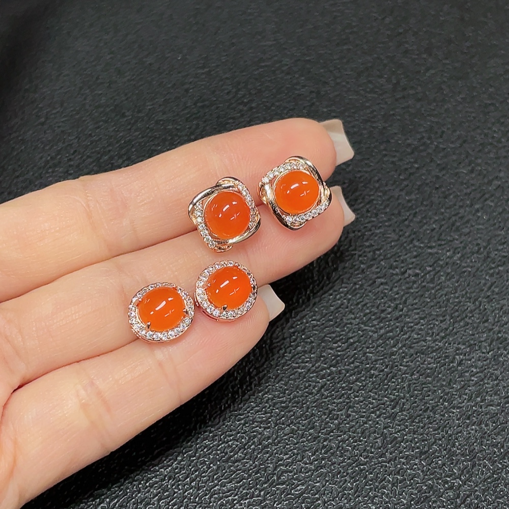 Red Agate Earrings (Non-Gold), Total Weight Approx. 5.32g, Sell as a Lot