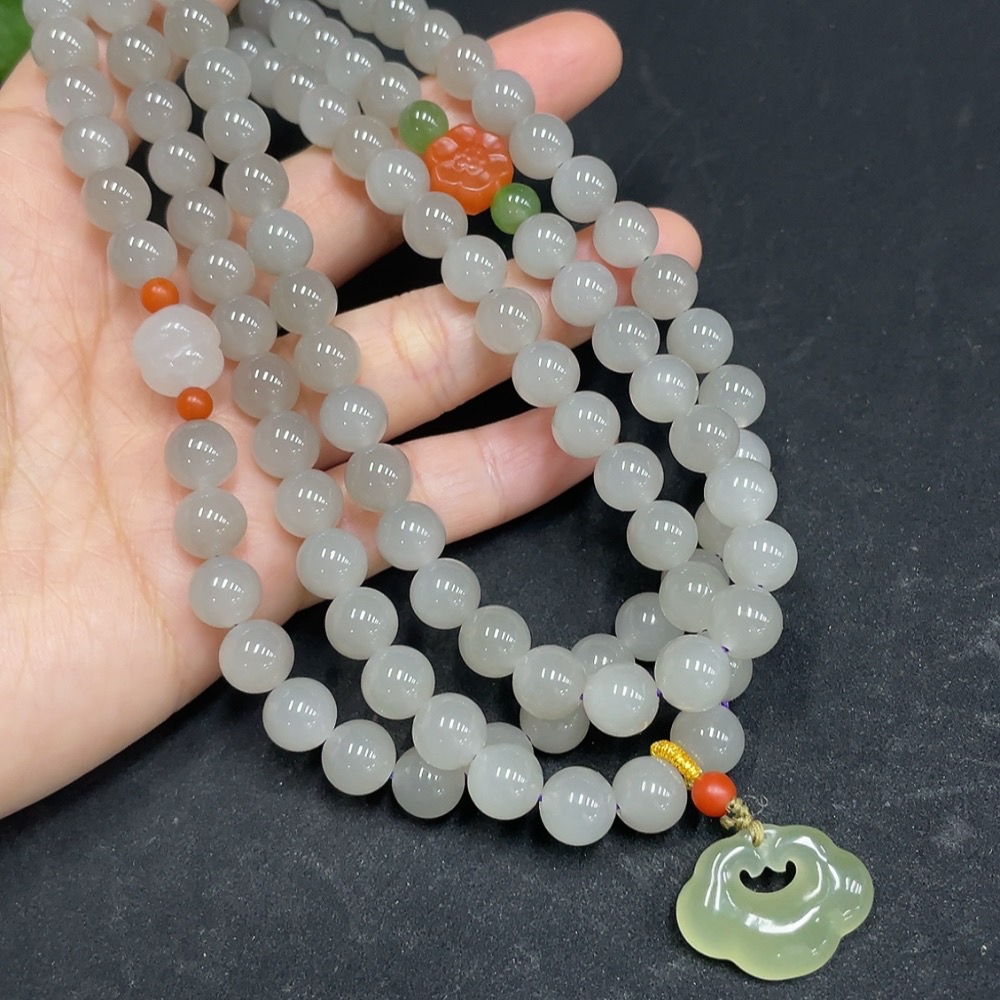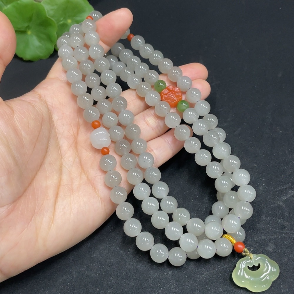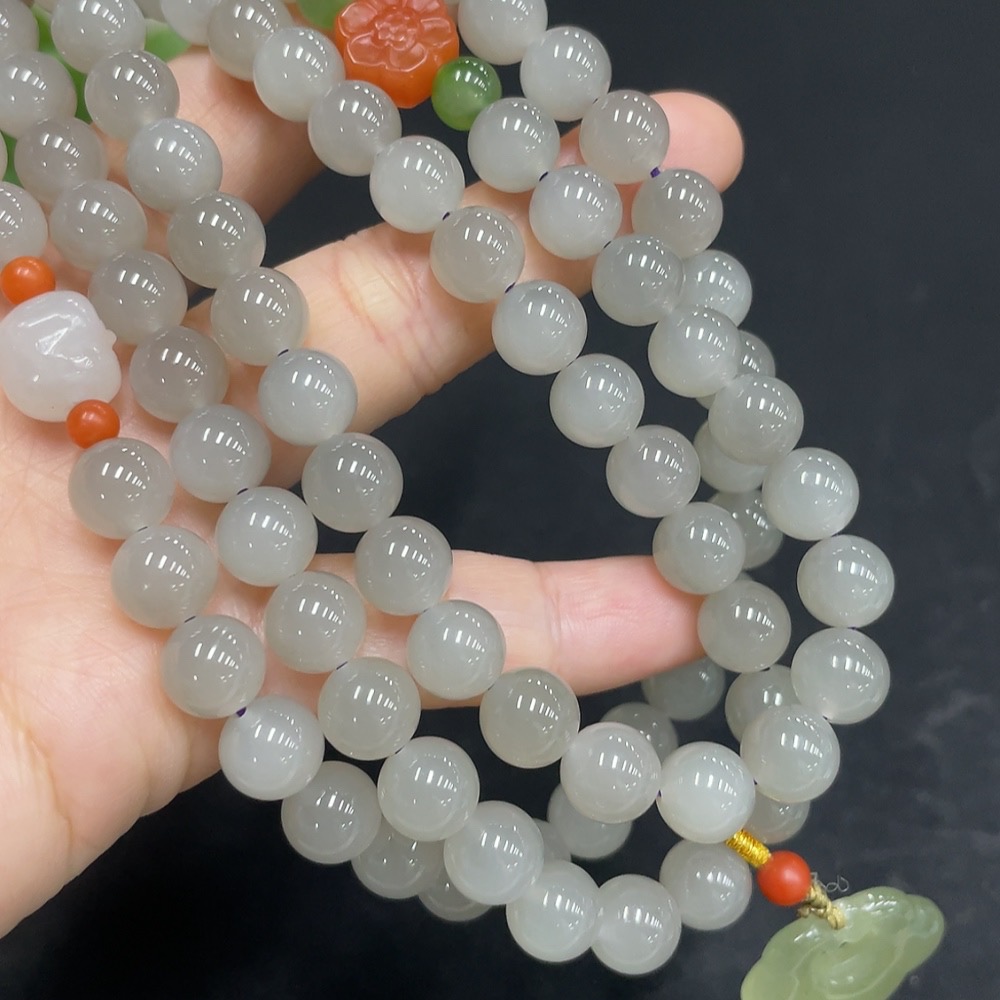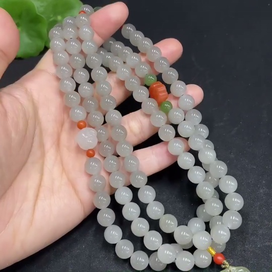 Hetian Jade Bead Necklace, Approx. 7.8mm, Total Weight Approx. 90.7g