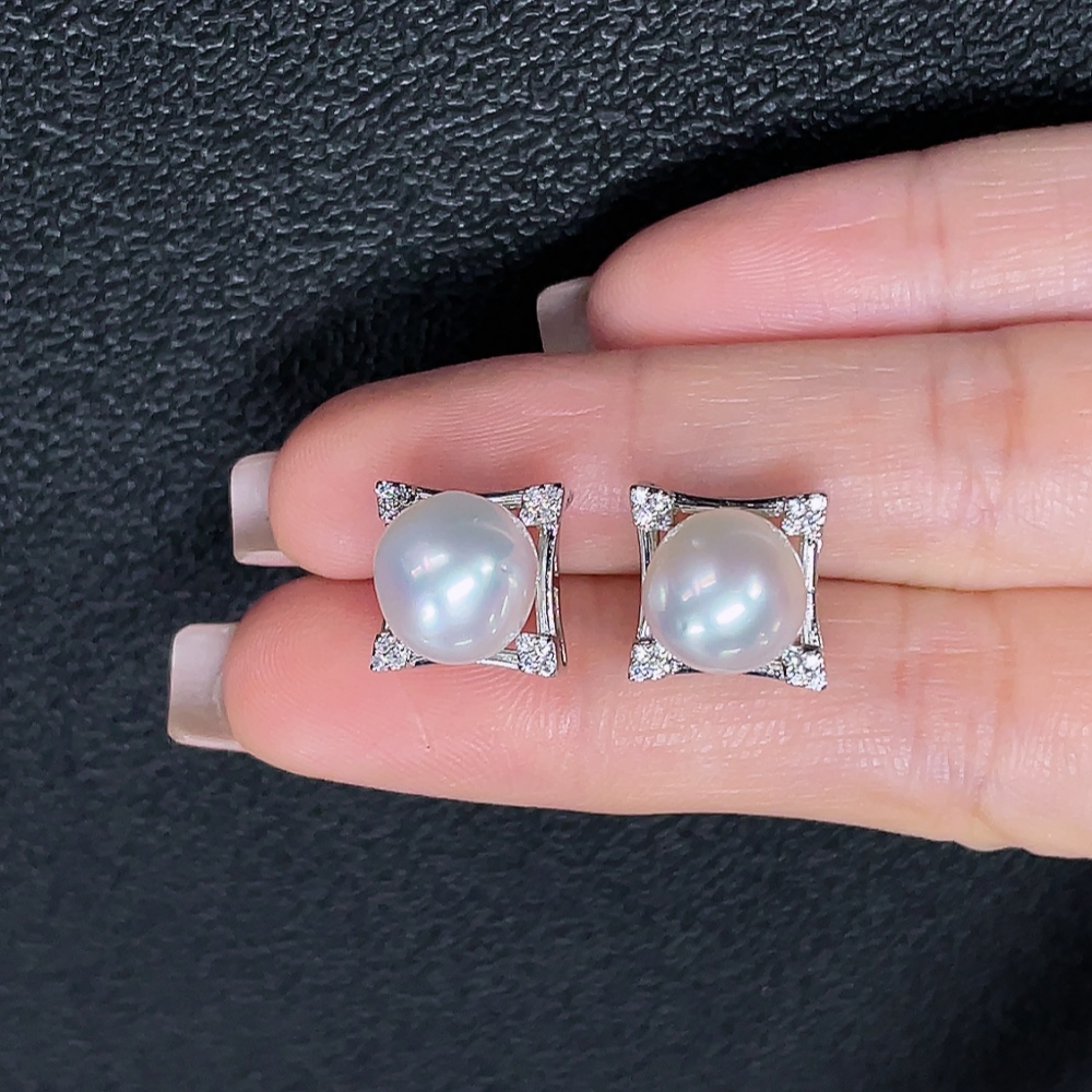 Seawater pearl earrings non-gold total weight approx. 4g size approx. 9.5mm