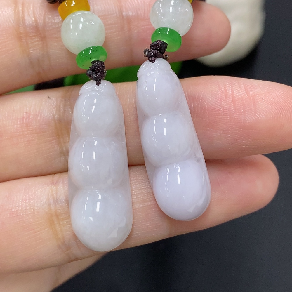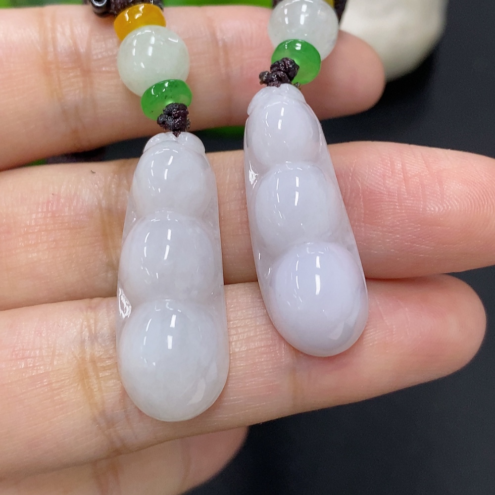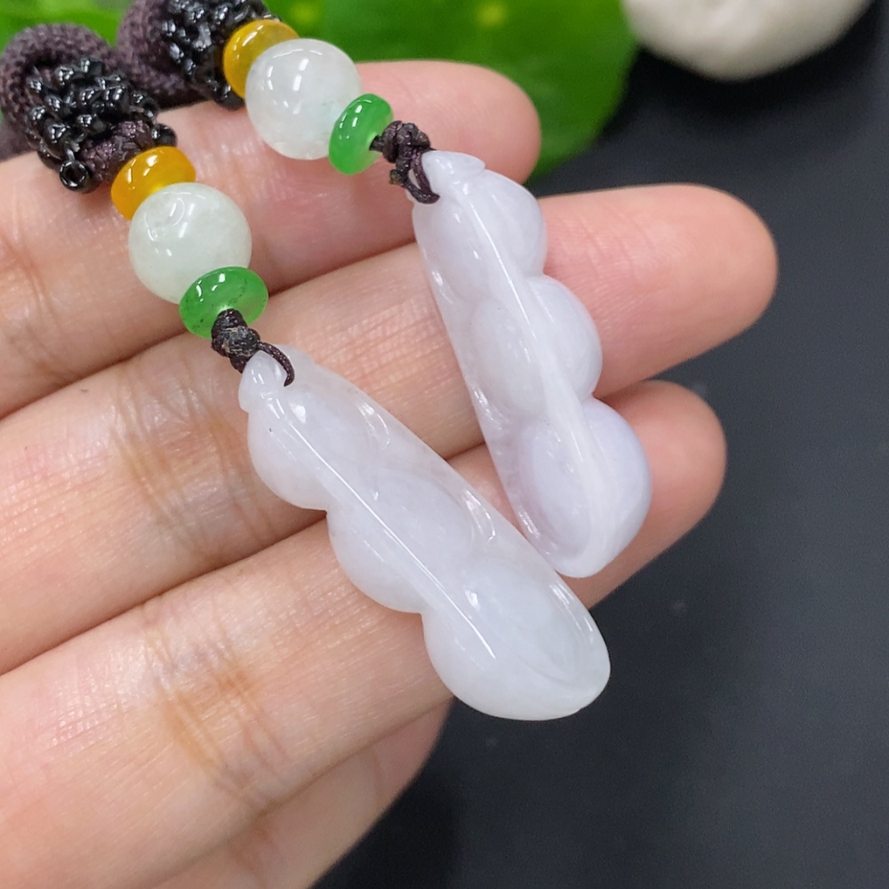 Jadeite Lucky Bean Pendant Sell as a Lot Total Weight Including Rope Approx. 17.5g