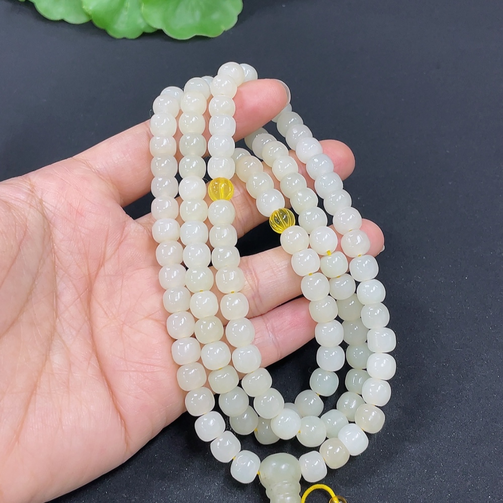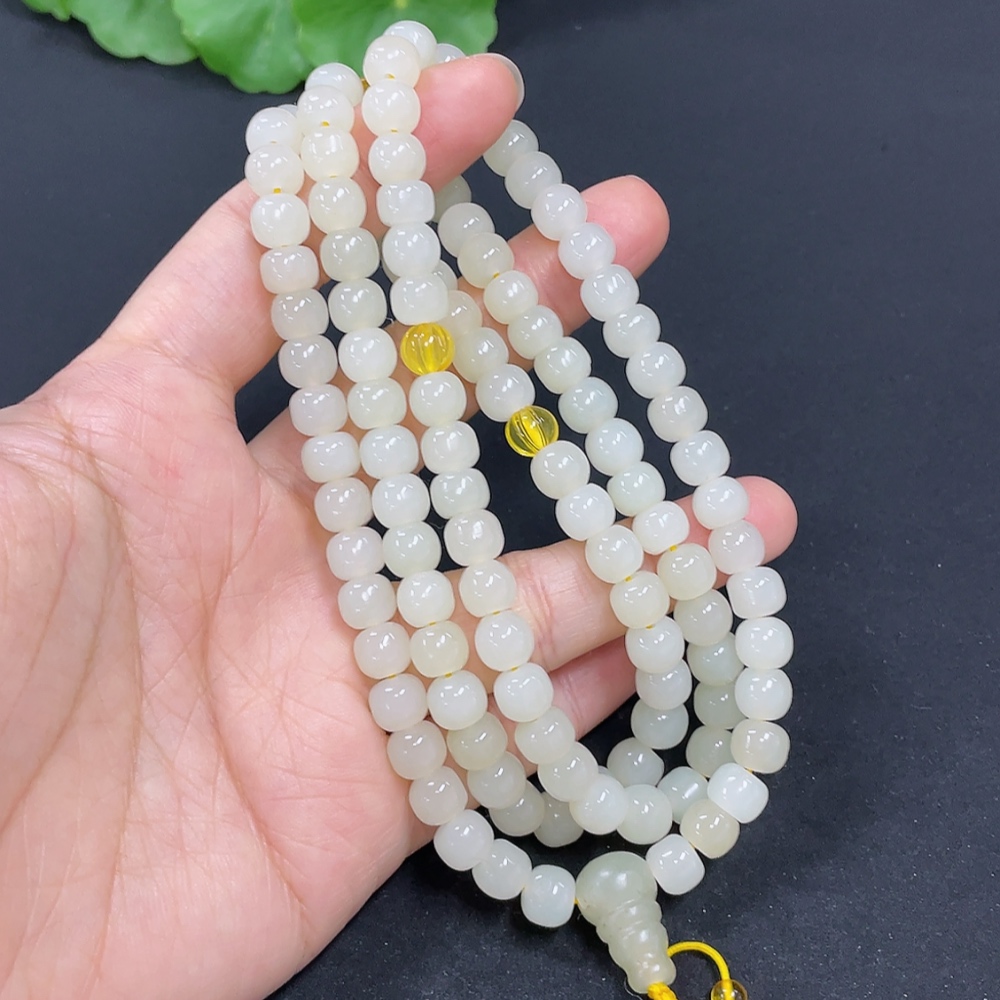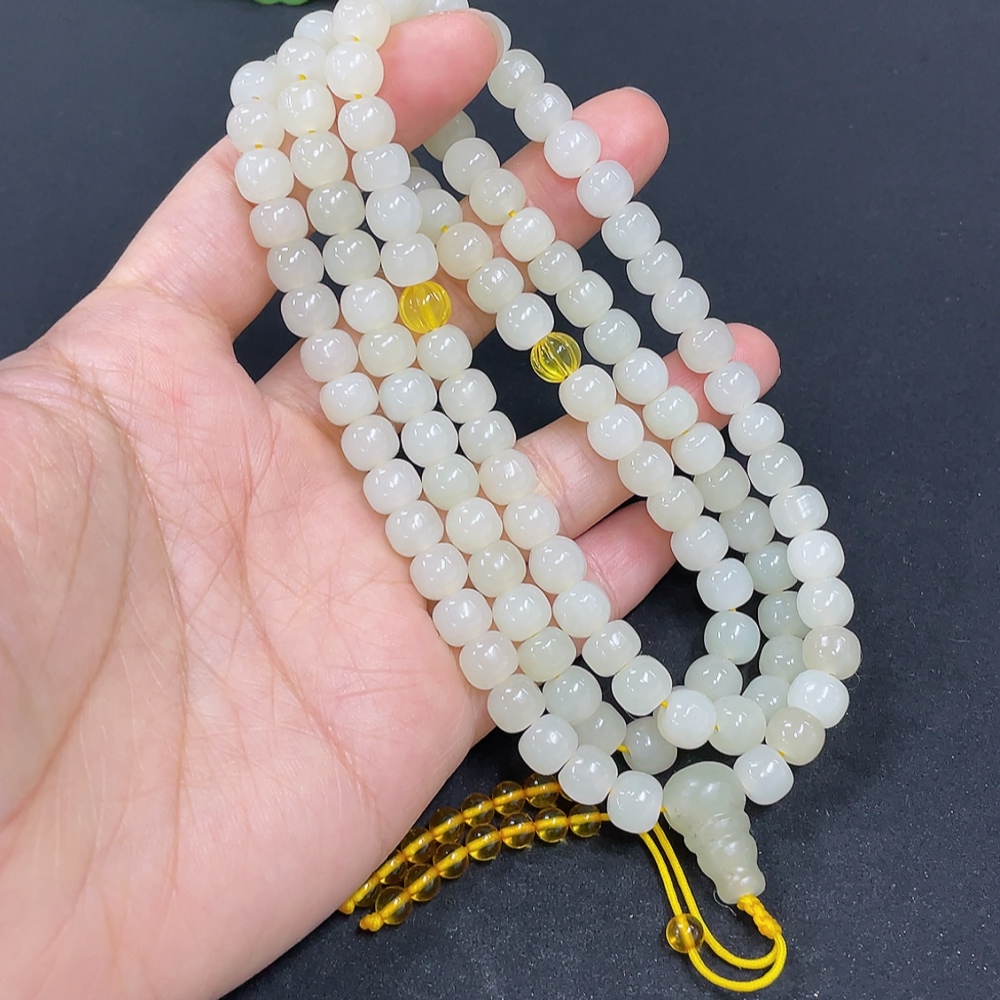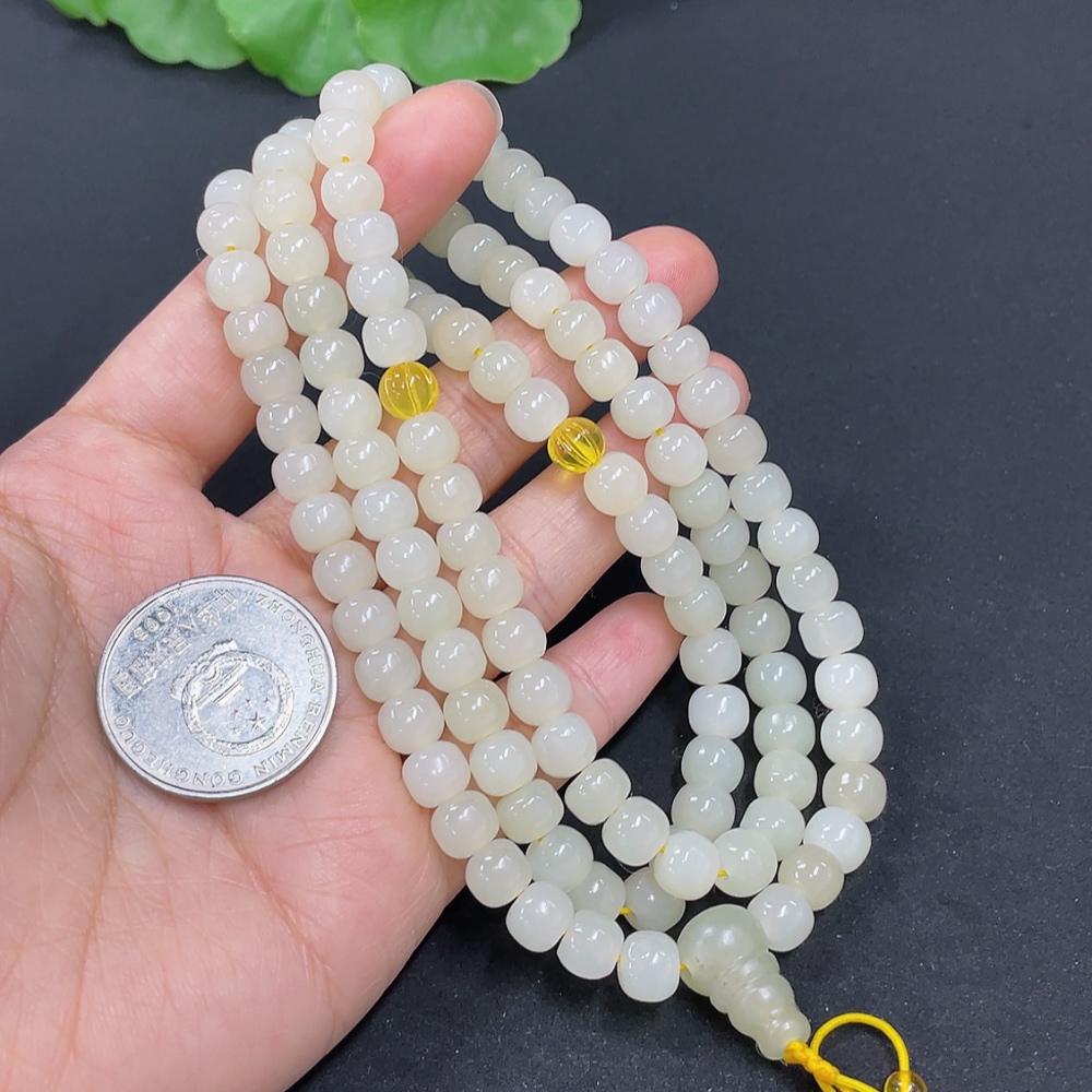 Hetian Jade Bead Necklace, Approx. 6.8mm, Total Weight Approx. 59.7g, Non-Hetian Jade Beads Included