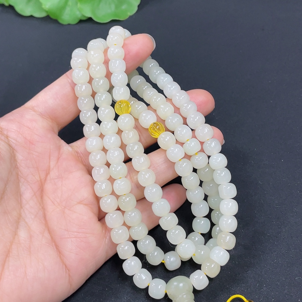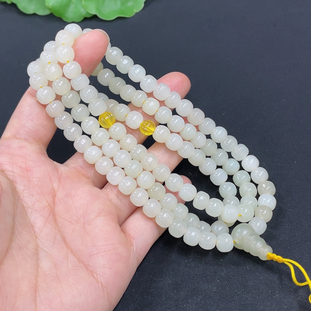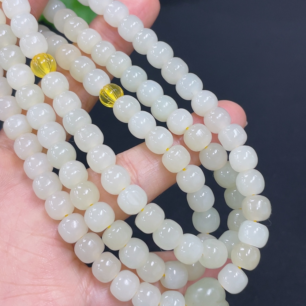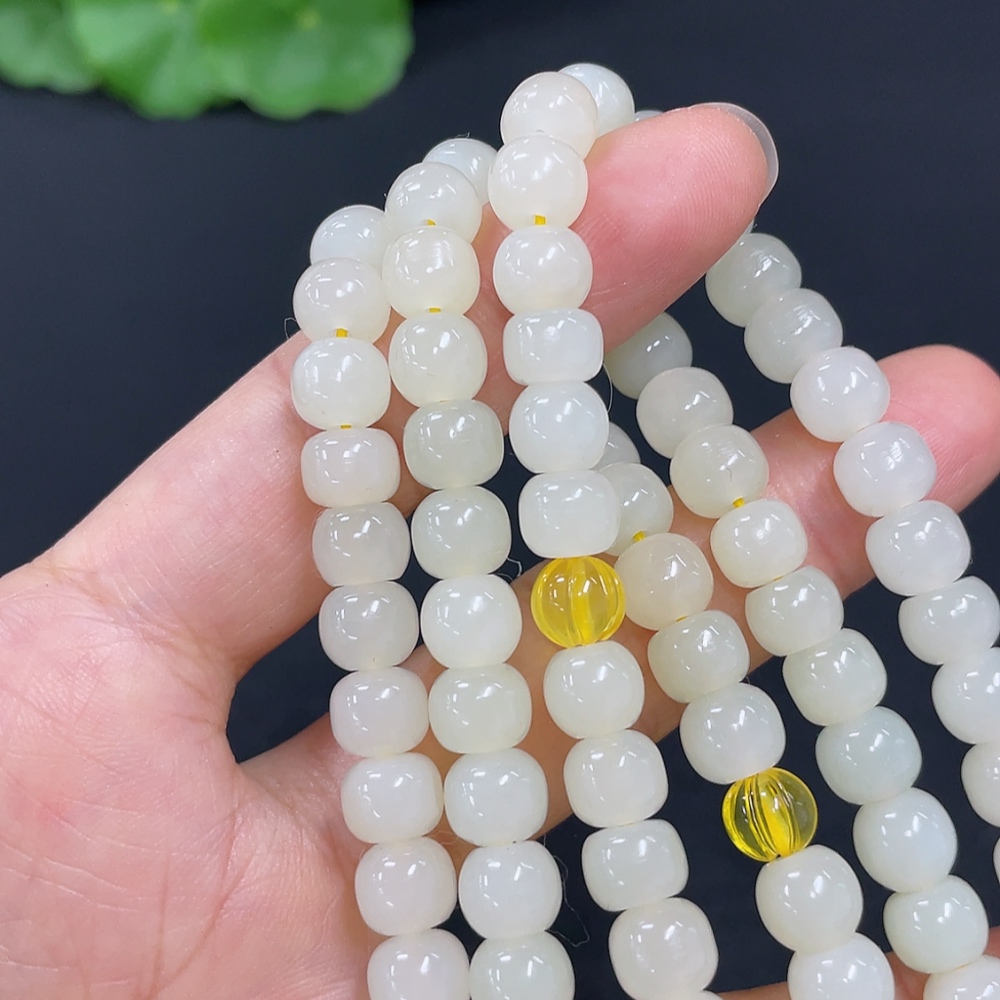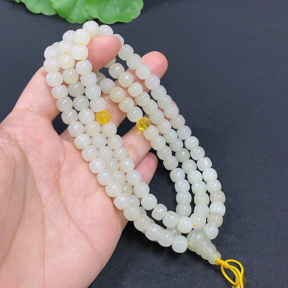 Hetian Jade Bead Necklace, Approx. 6.8mm, Total Weight Approx. 59.7g, Non-Hetian Jade Beads Included