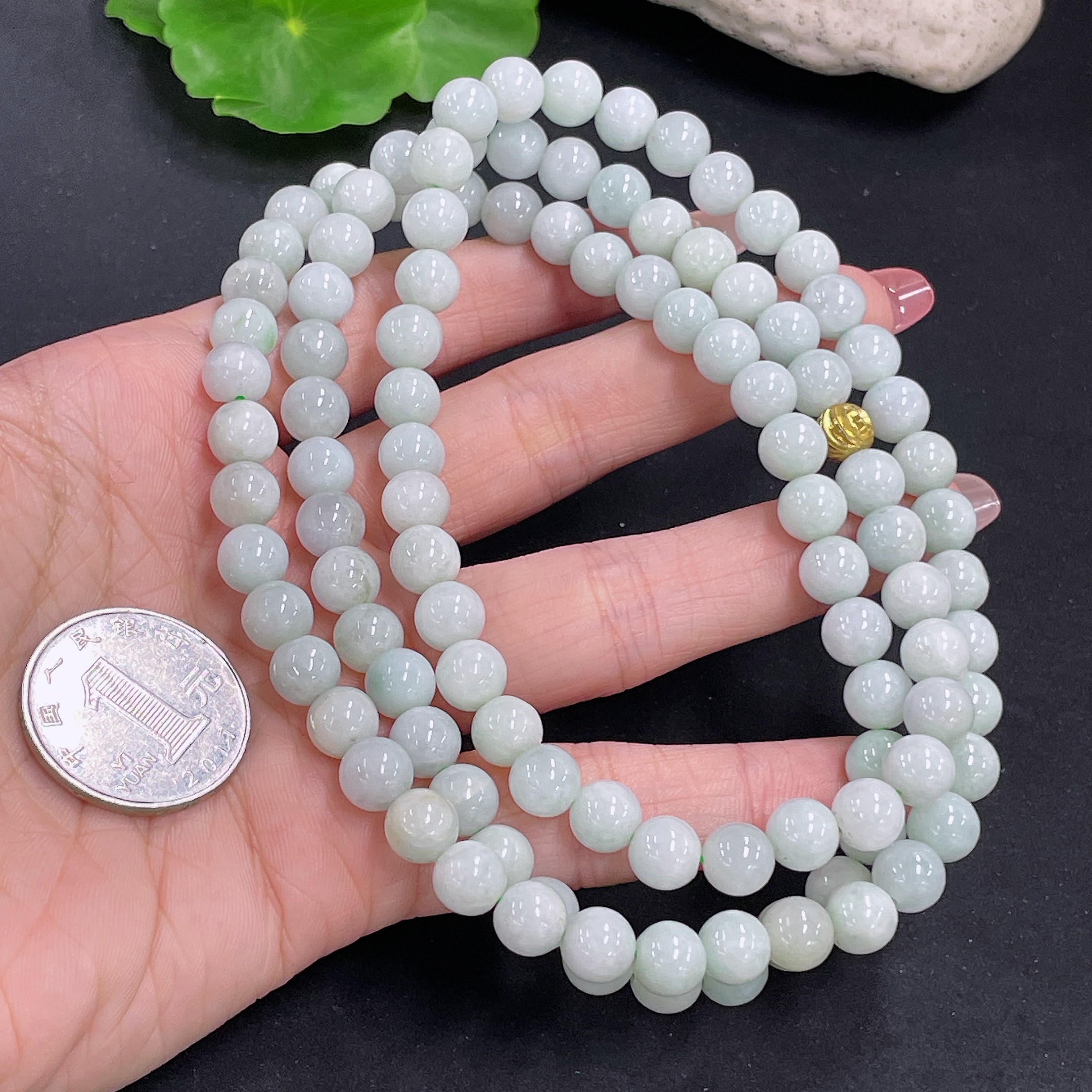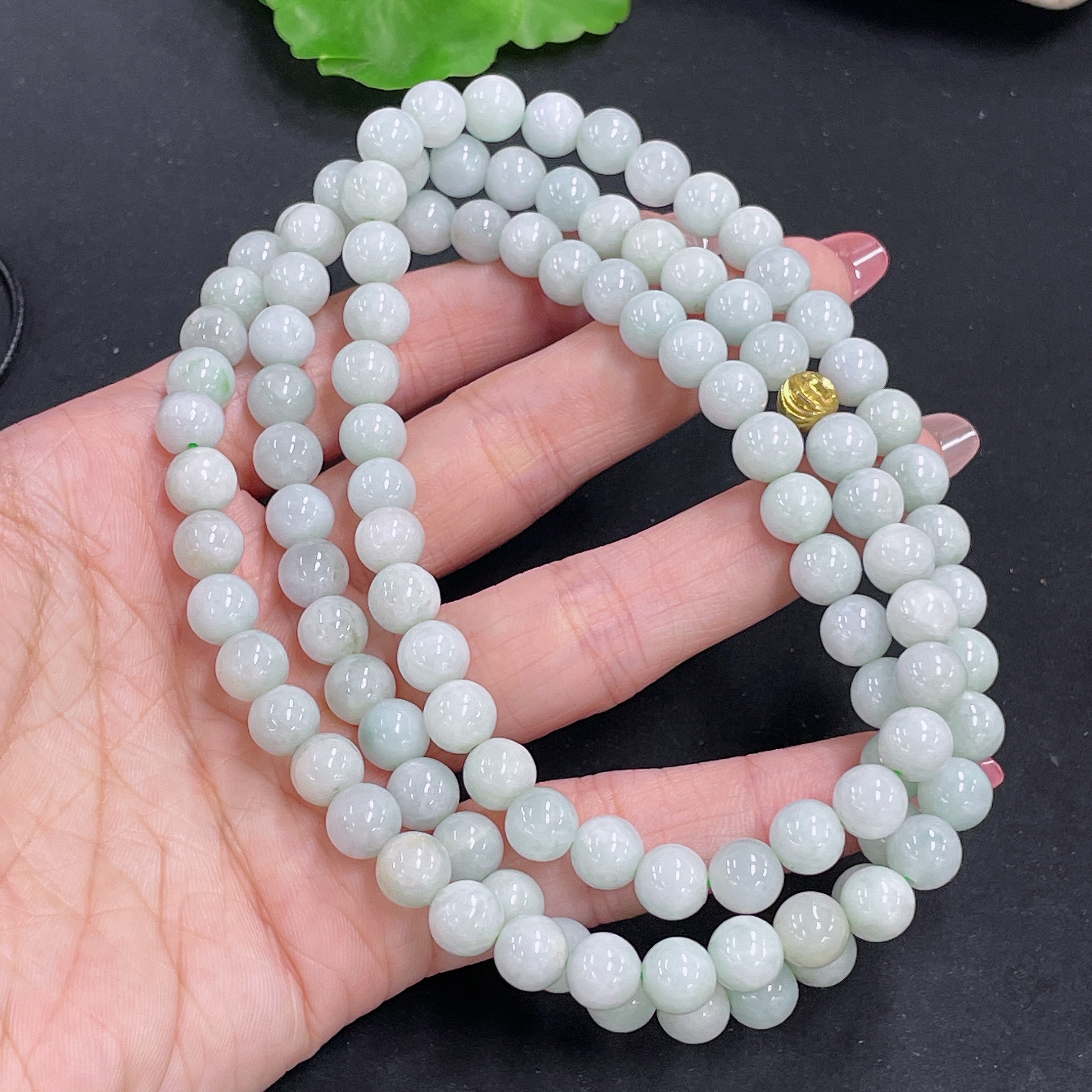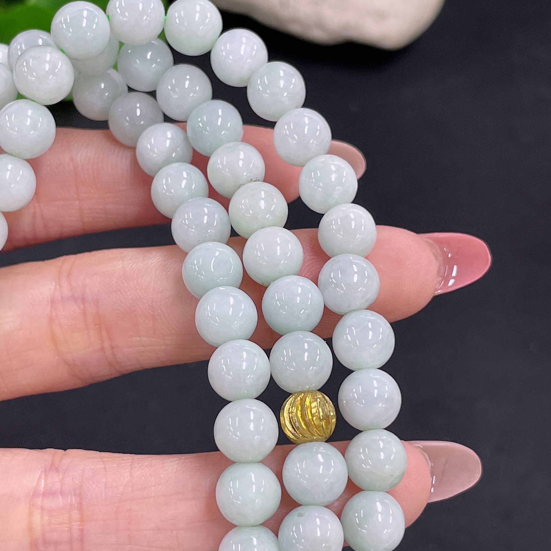 Jadeite Bead Necklace Non-Gold Total Weight Approx. 88.3g Size About 7.8mm