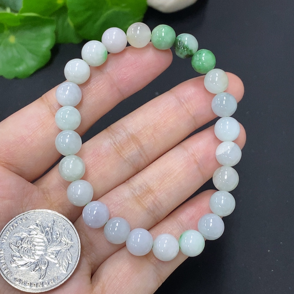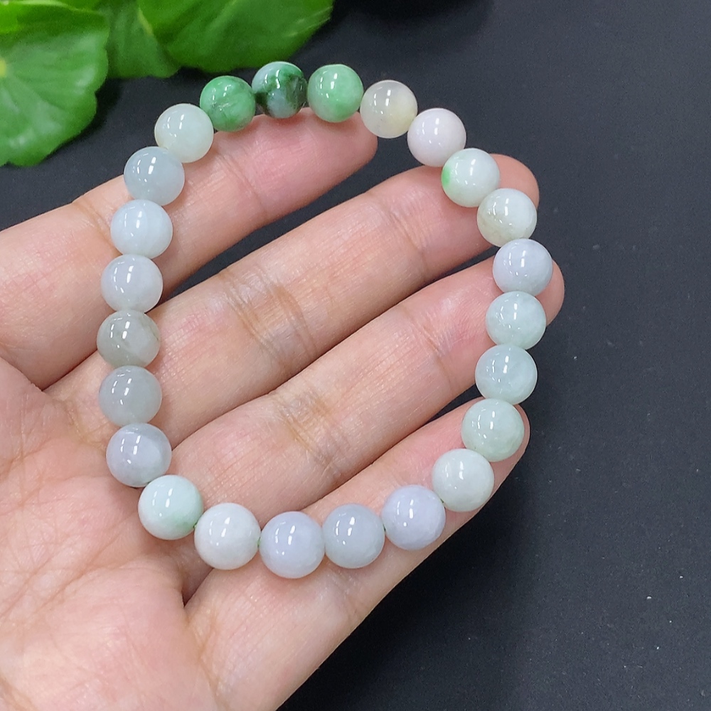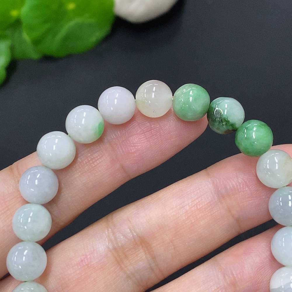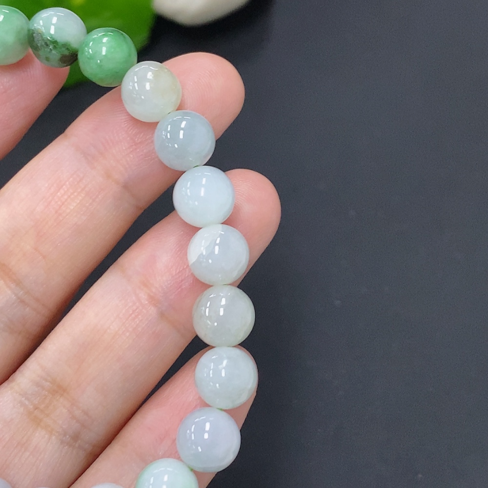 Jadeite Bead Necklace Approx. 7.7mm Total Weight Approx. 20.9g (Marked Beads Non-A)