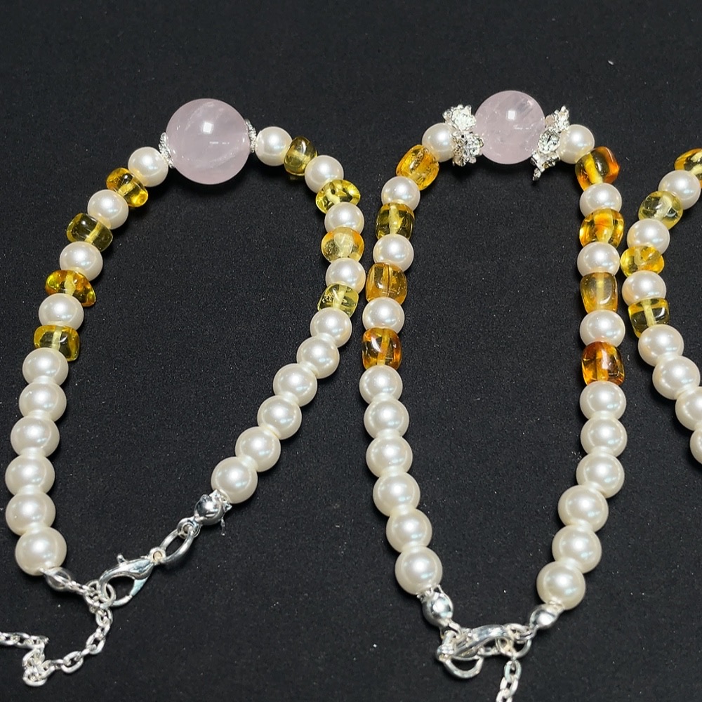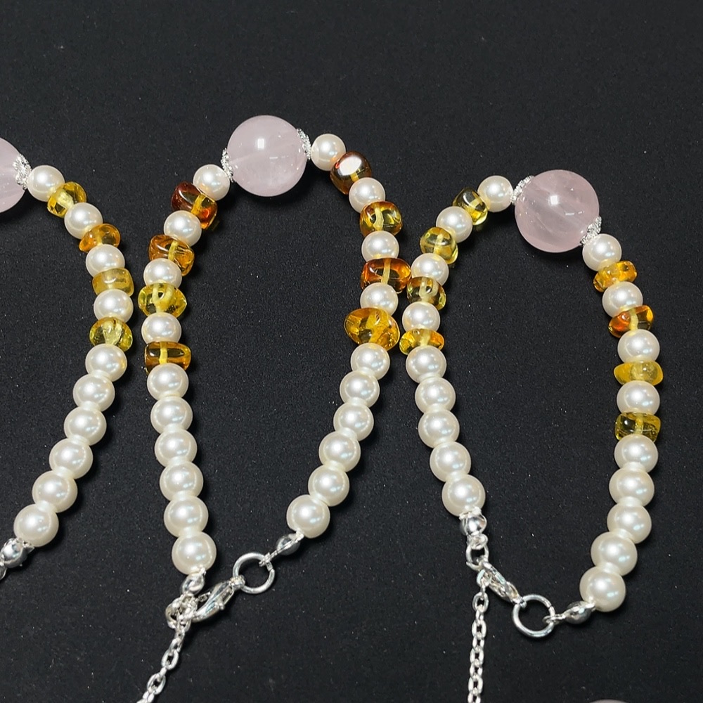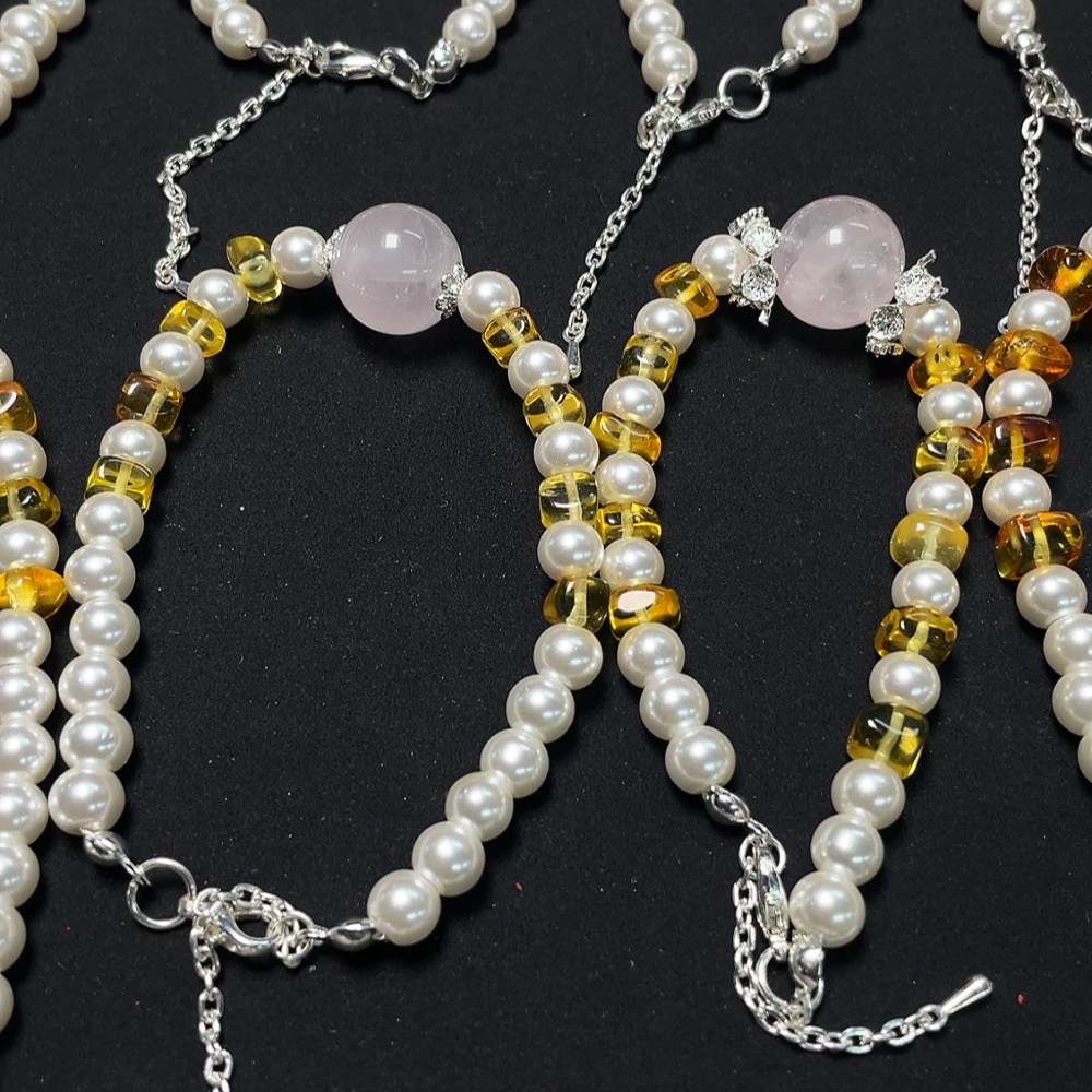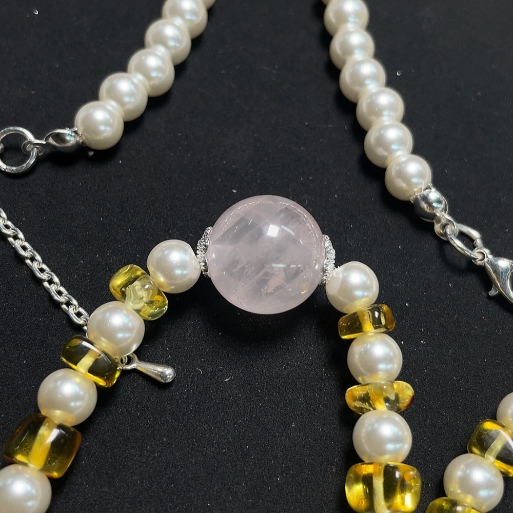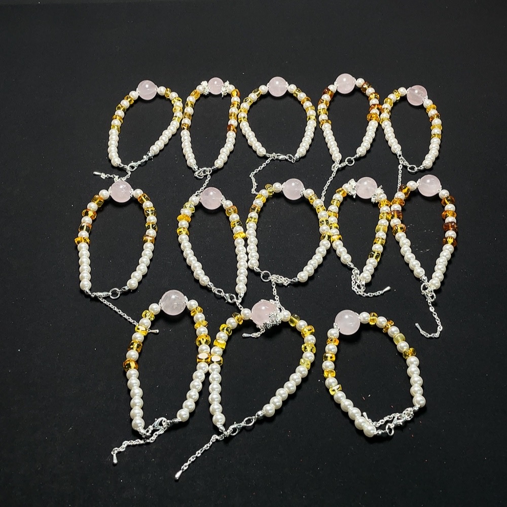 Crystal Bracelet with Amber, Visible Organic Matter, Non-Natural Accent Stones, Non-Metal, Total Weight Approx. 147.5g, Sell as a Lot