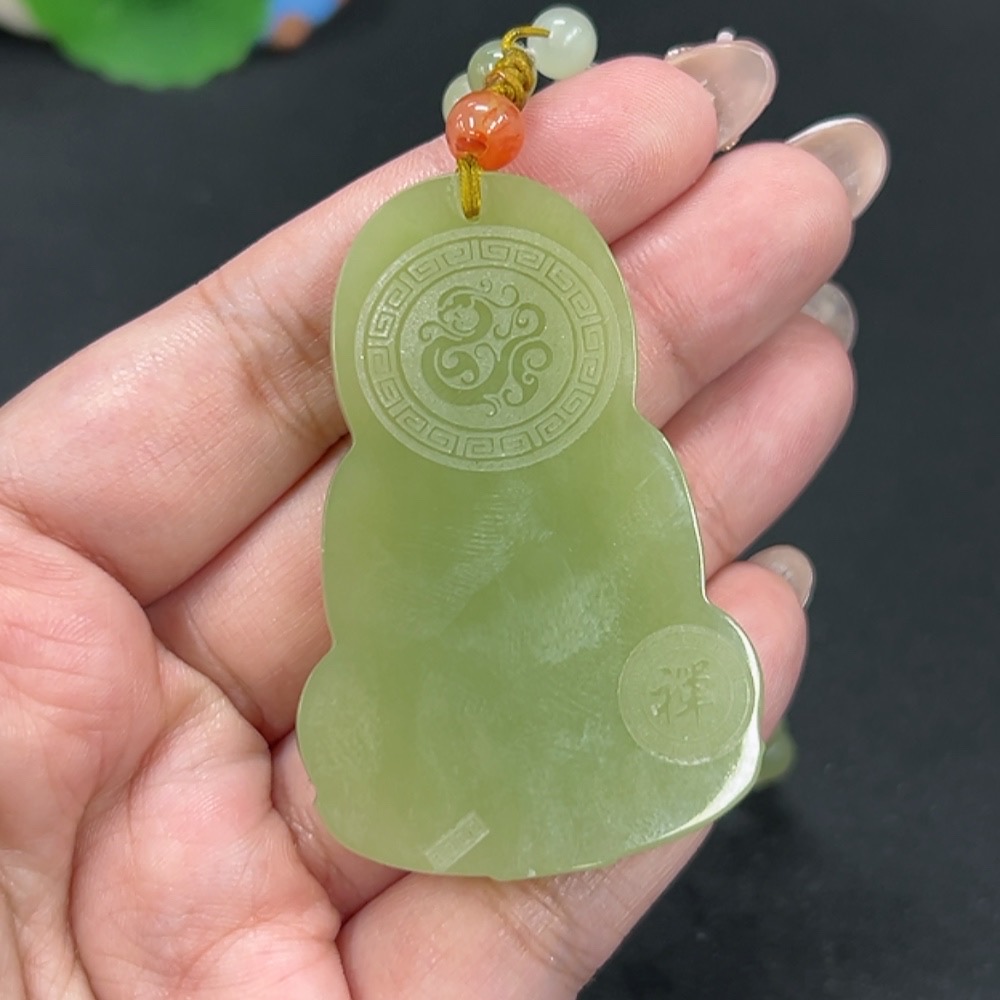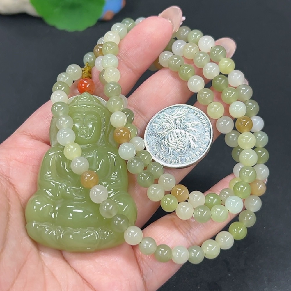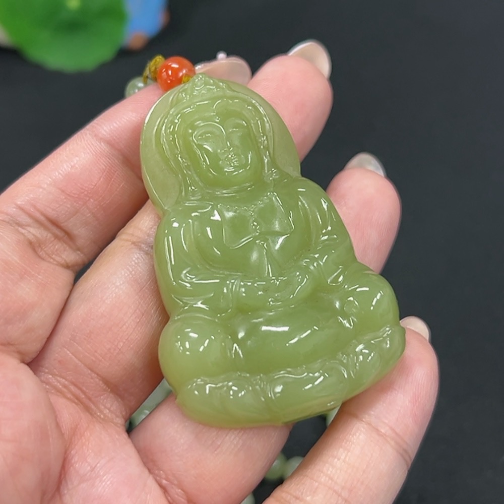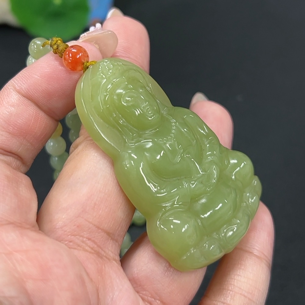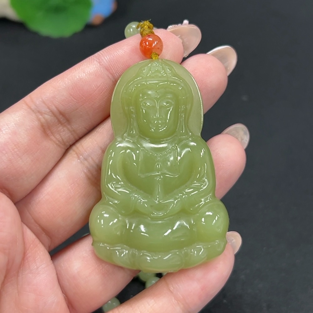 Hetian Jade Pendant Guanyin with Red Beads (Non-Hetian Jade), Total Weight Approx. 74.6g