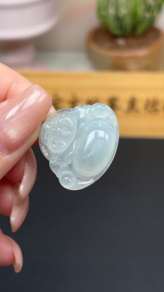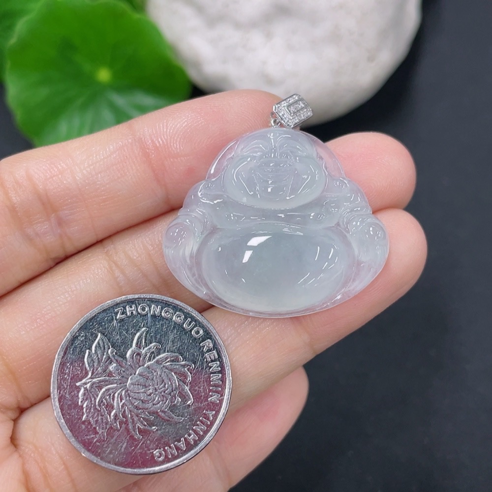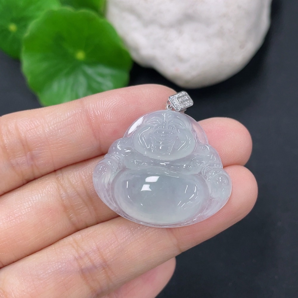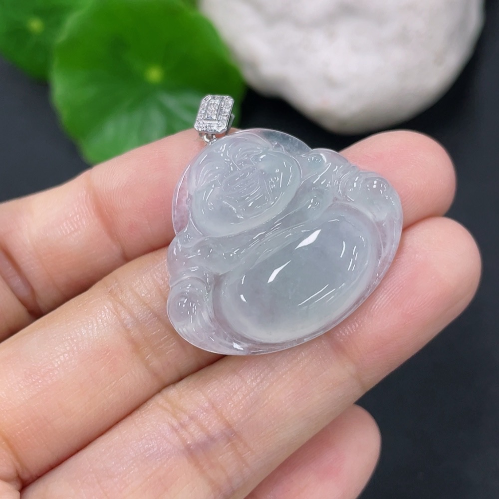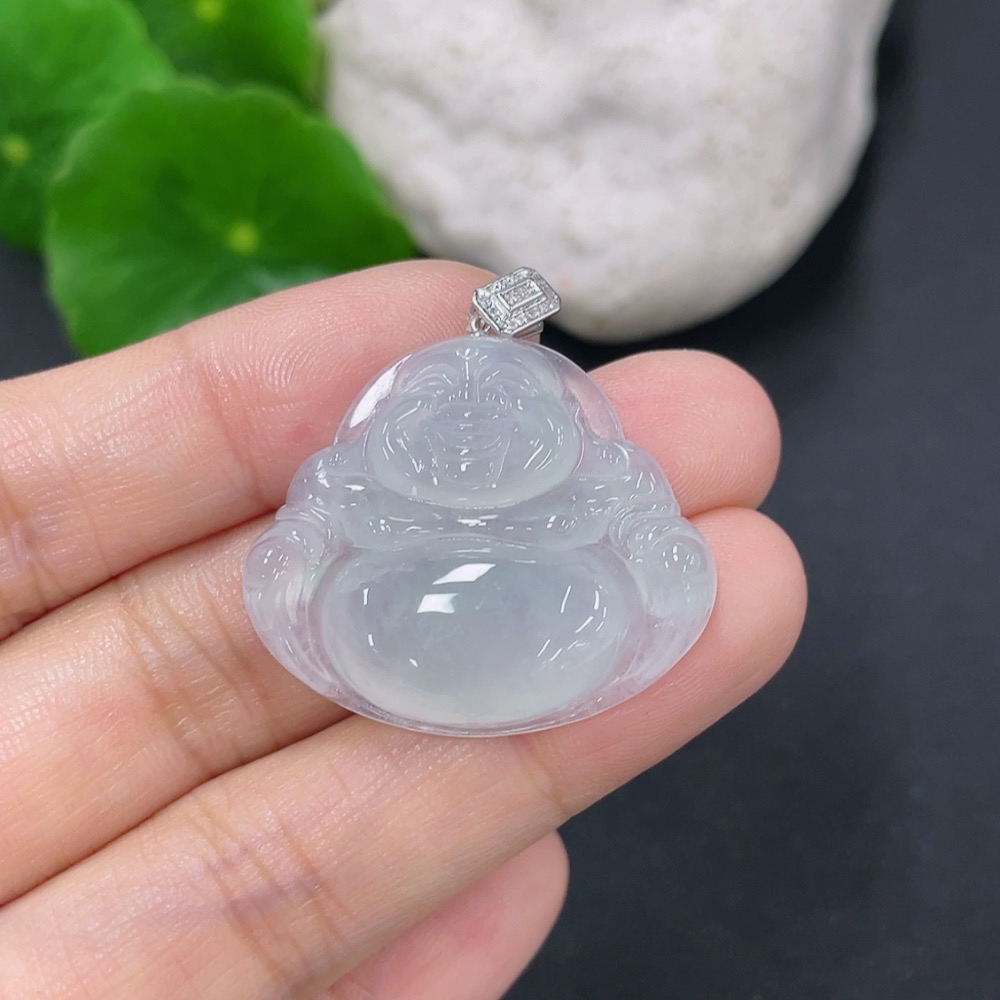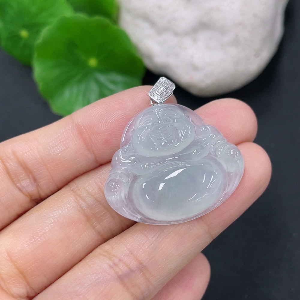 Jadeite Buddha Pendant with 18K Gold Clasp and Diamond Accents, Total Weight Approximately 6.5g